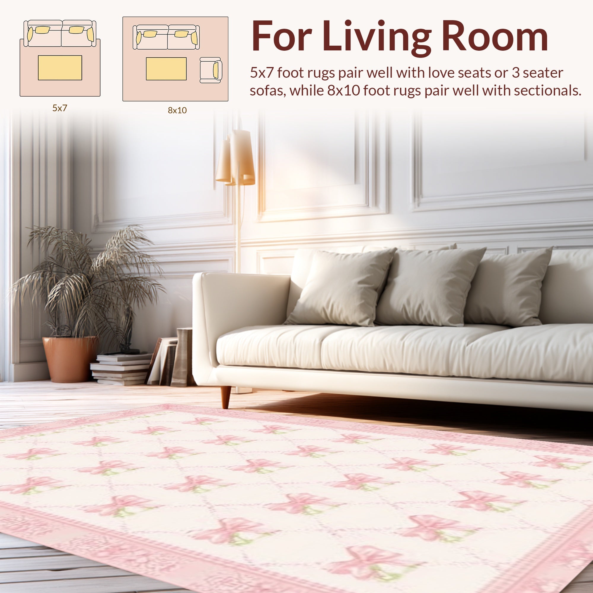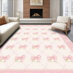 Ultra Soft Area Rug, Non Slip, Stain Resistant, Washable Area Rugs for Living Room, Bedroom, Coquette Bow Accent Area Rug Scalloped Edges(White) Overview: