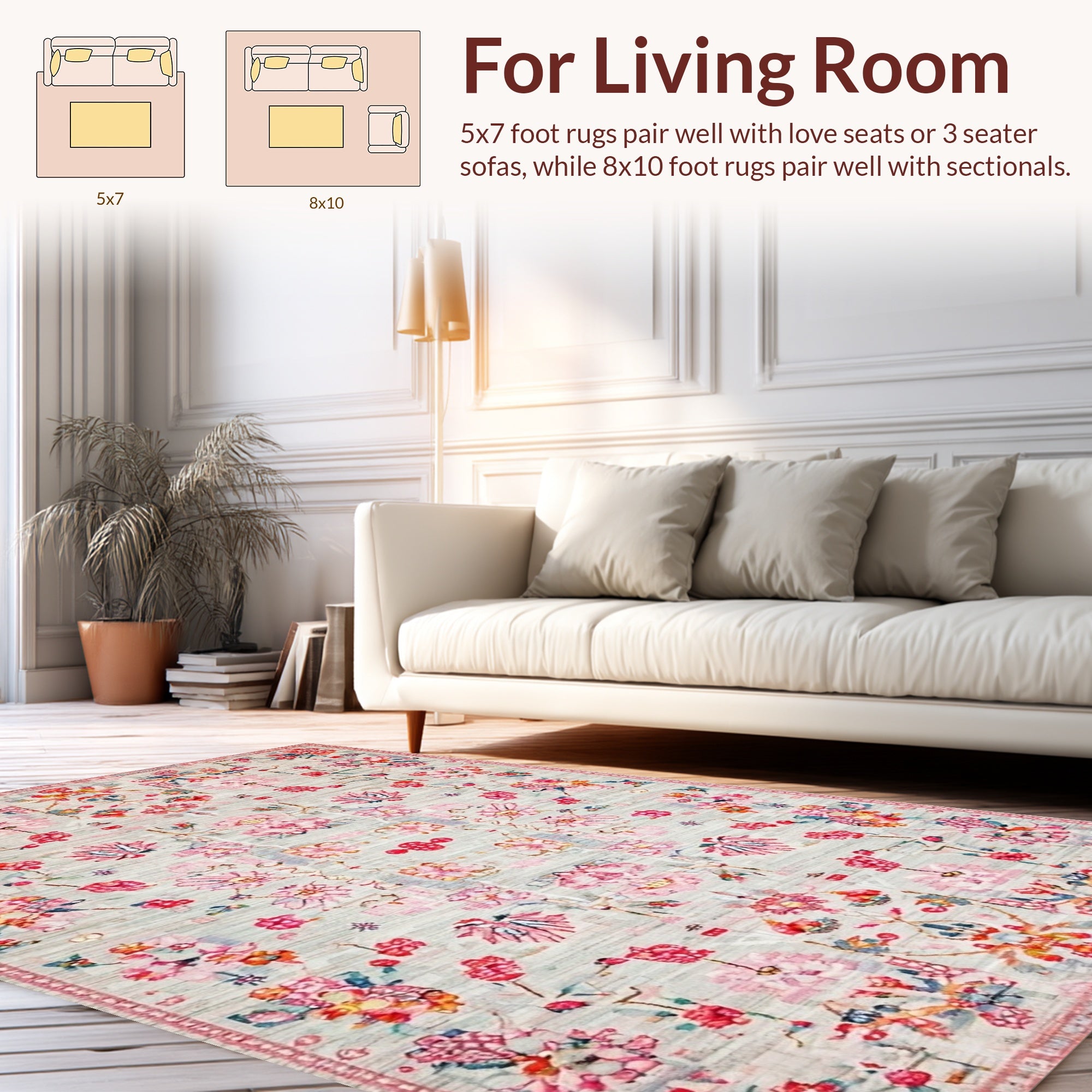 Ultra Soft Area Rug, Non Slip, Stain Resistant, Washable Area Rugs for Living Room, Bedroom, Coquette Pink Bow with Scarlet Berry Boho Area Rug(Gray) Overview: