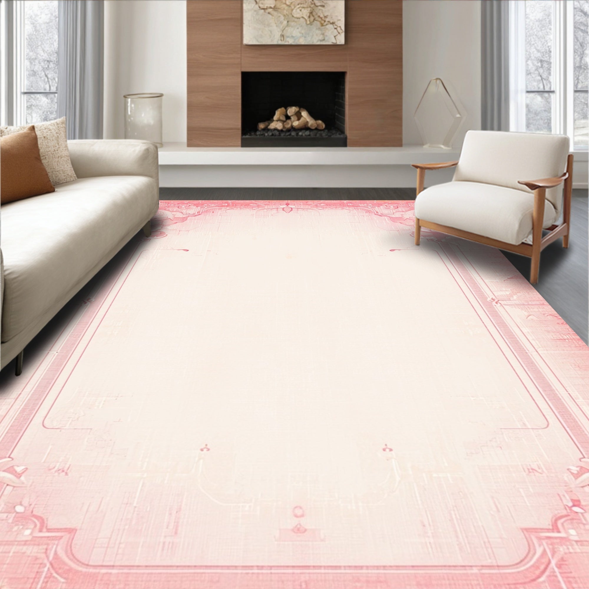 Ultra Soft Area Rug, Non Slip, Stain Resistant, Washable Area Rugs for Living Room, Bedroom, Coquette Scalloped Bow Rug with Curved Edges and Knot Motif(Pink) Overview: