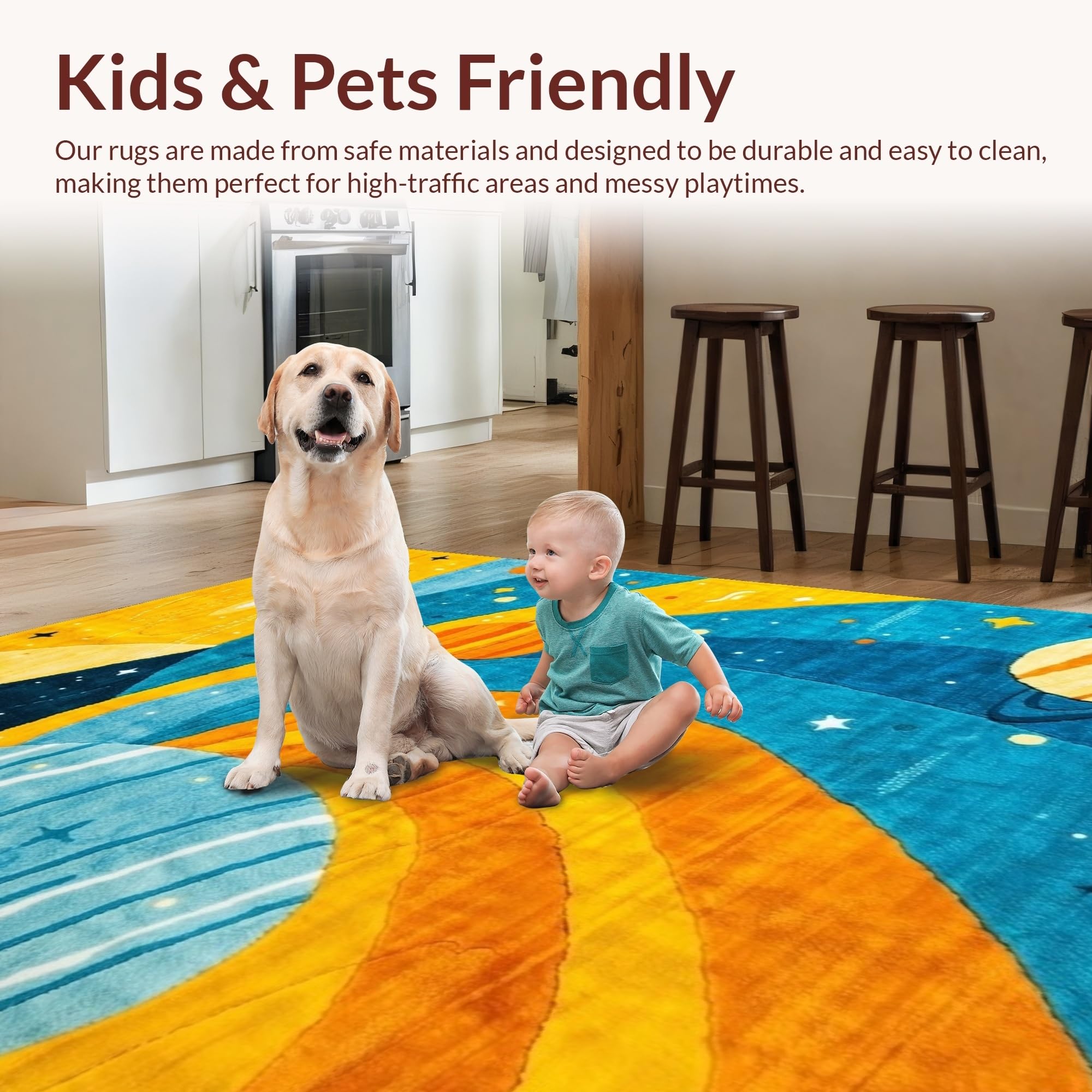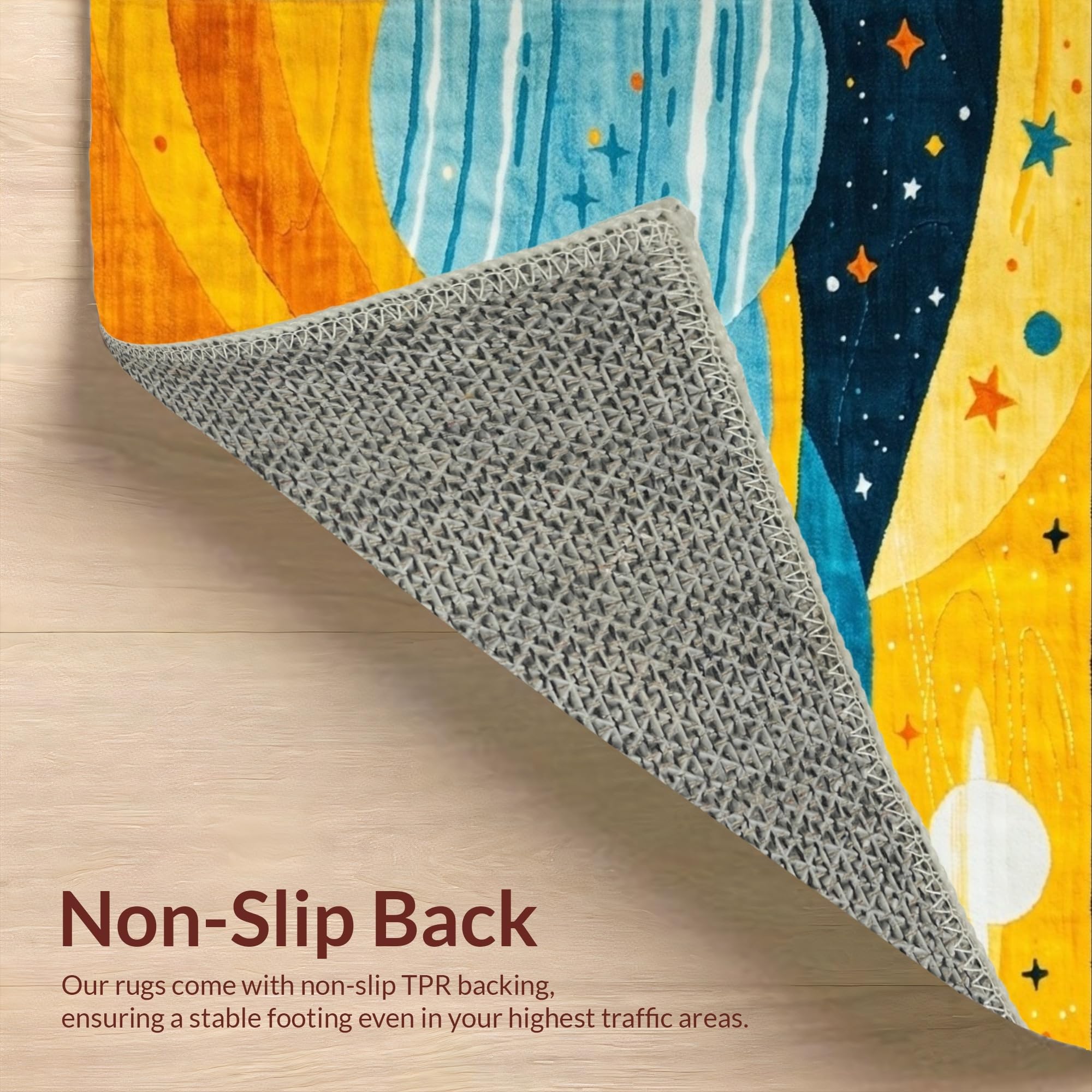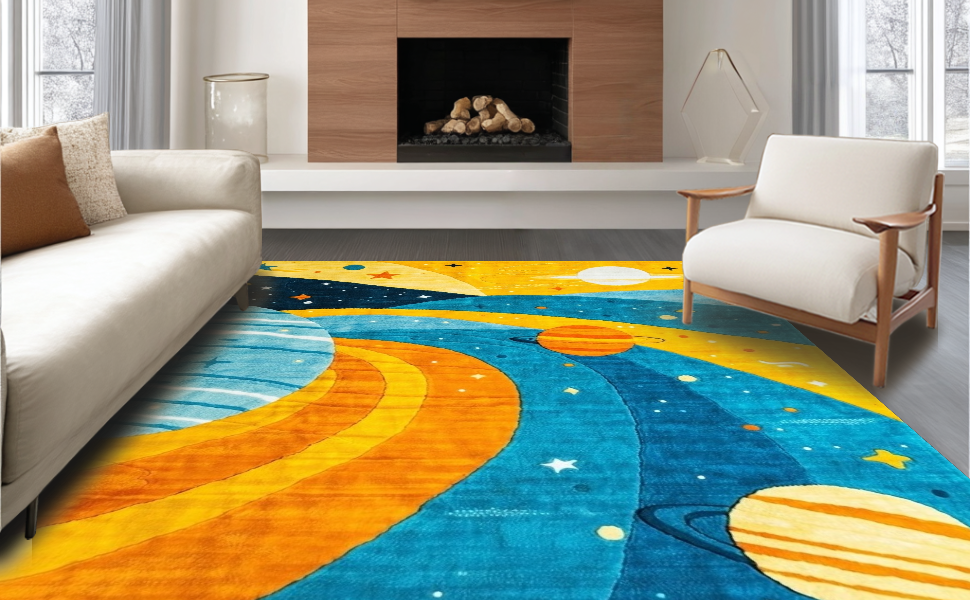 Ultra Soft Area Rug, Non Slip, Stain Resistant, Washable Area Rugs for Living Room, Bedroom, Cosmic Alphabetical Playful Circle(Yellow) Overview: