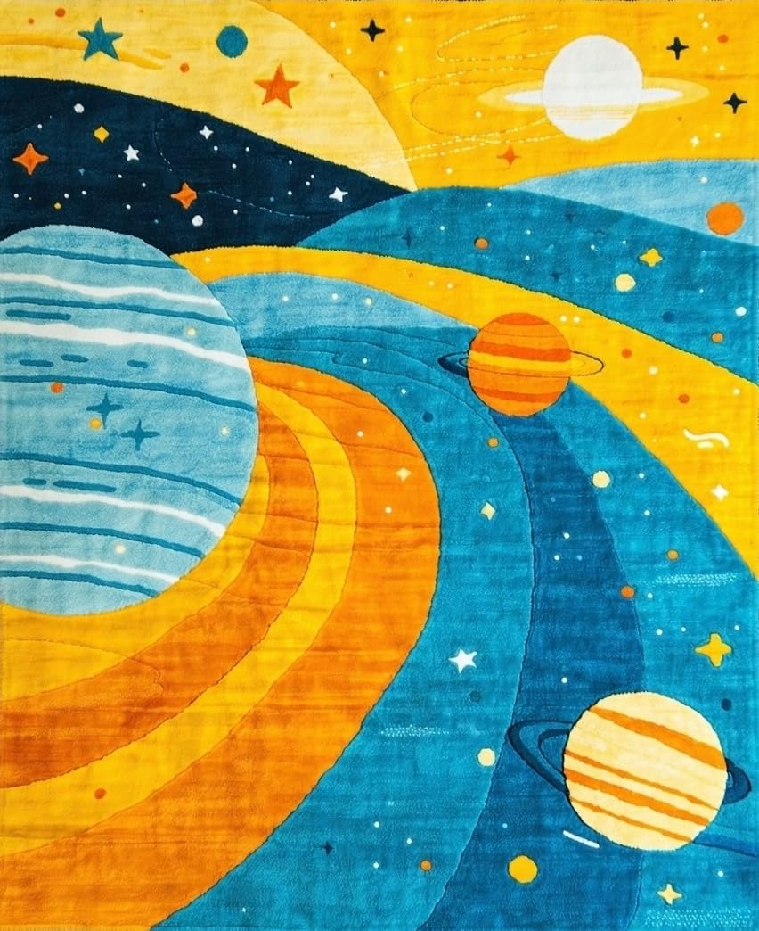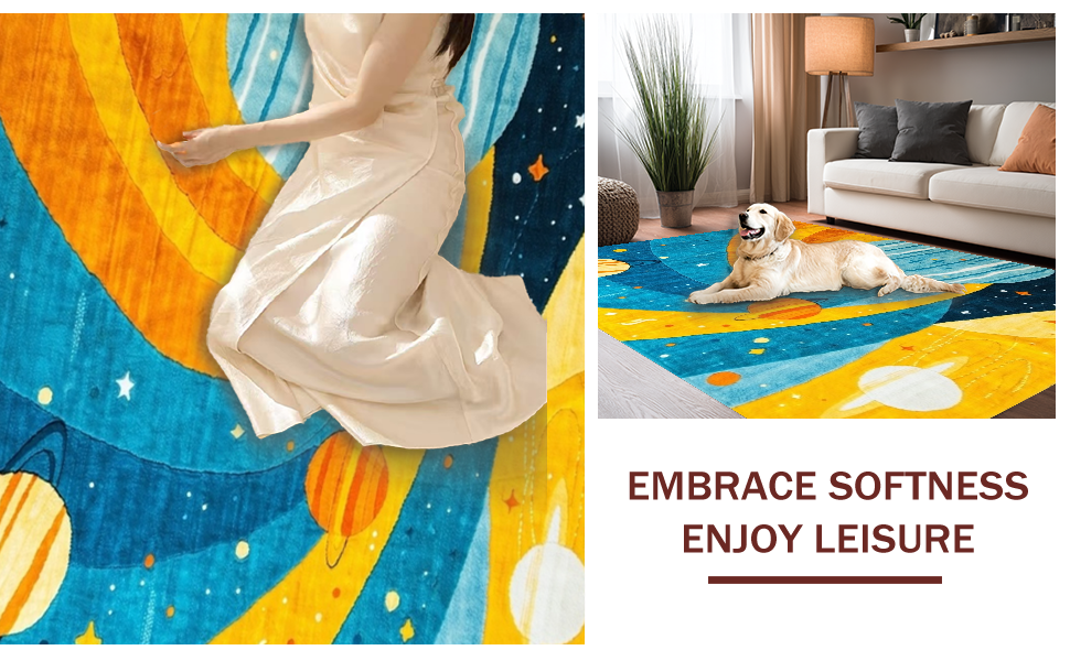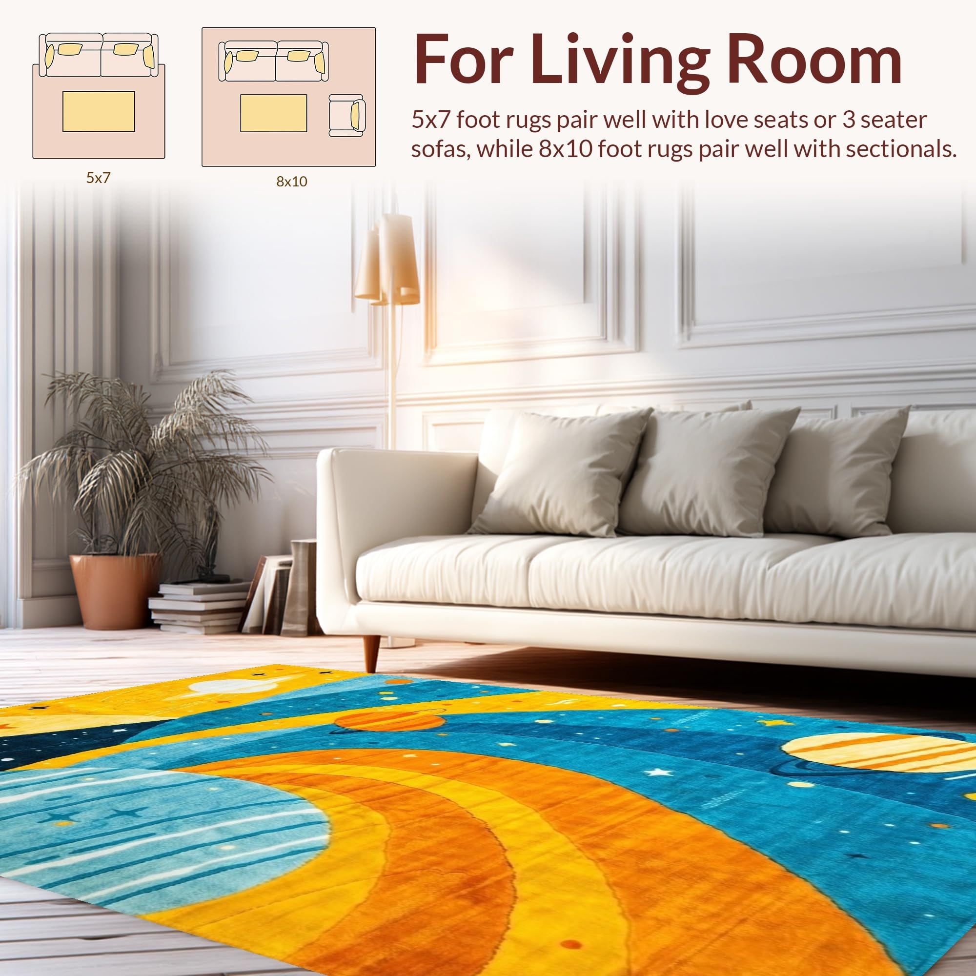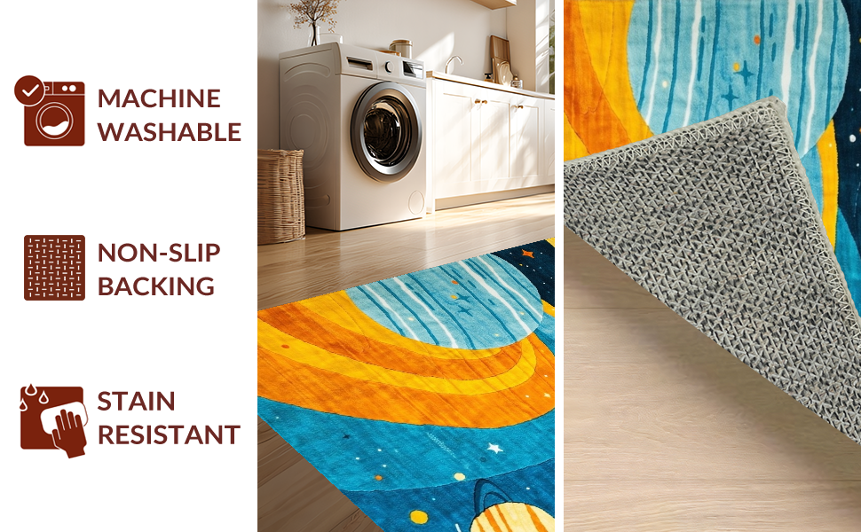 Ultra Soft Area Rug, Non Slip, Stain Resistant, Washable Area Rugs for Living Room, Bedroom, Cosmic Alphabetical Playful Circle(Yellow) Overview: