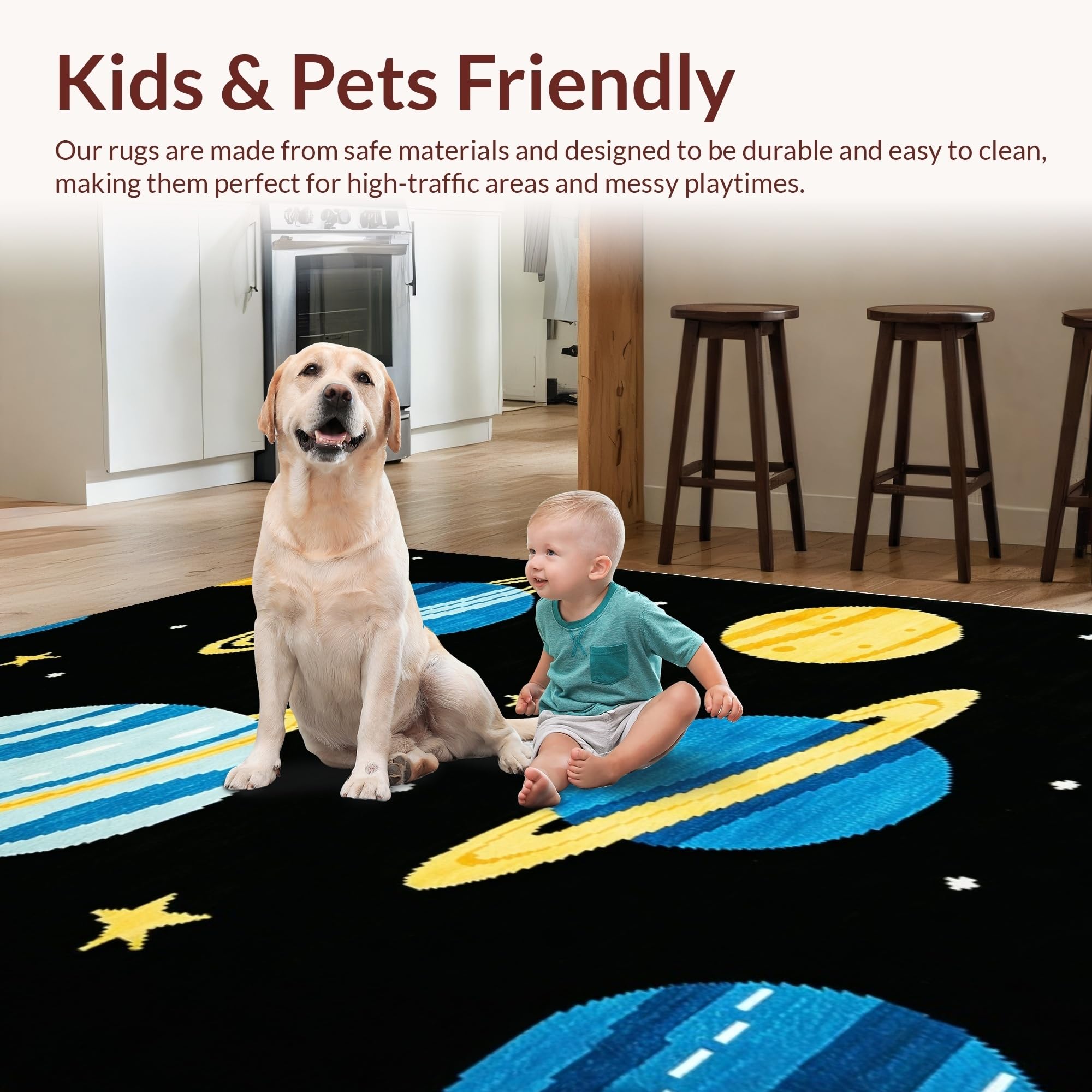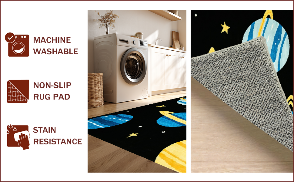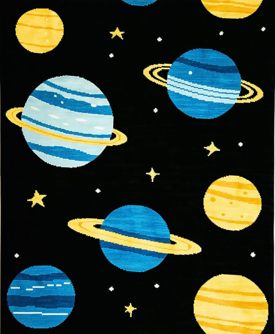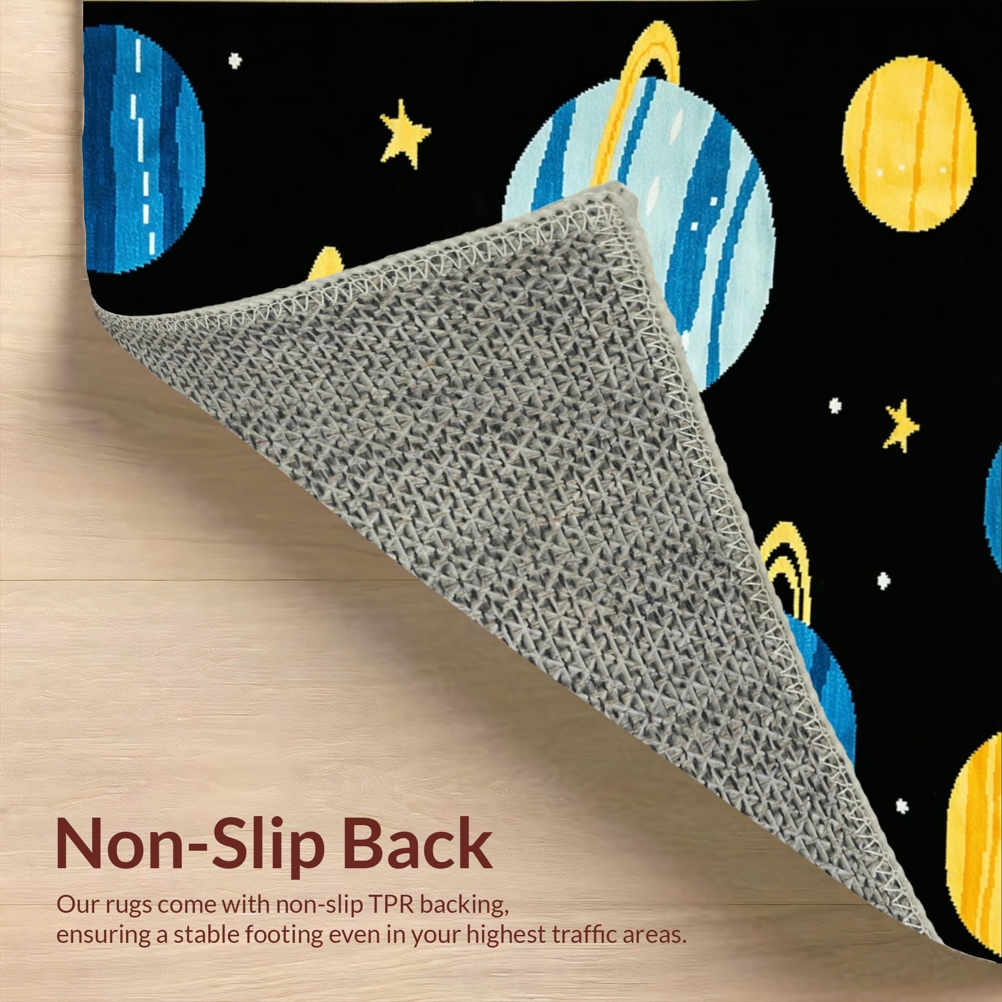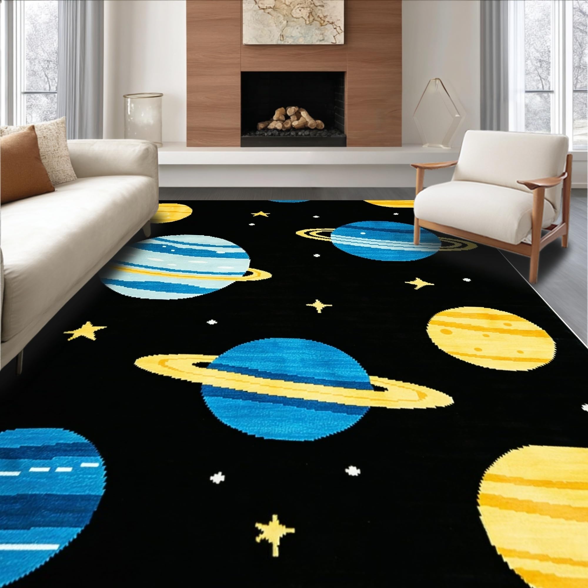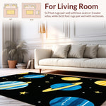 Ultra Soft Area Rug, Non Slip, Stain Resistant, Washable Area Rugs for Living Room, Bedroom, Cosmic Colorful Planetary Motif(Blue) Overview: