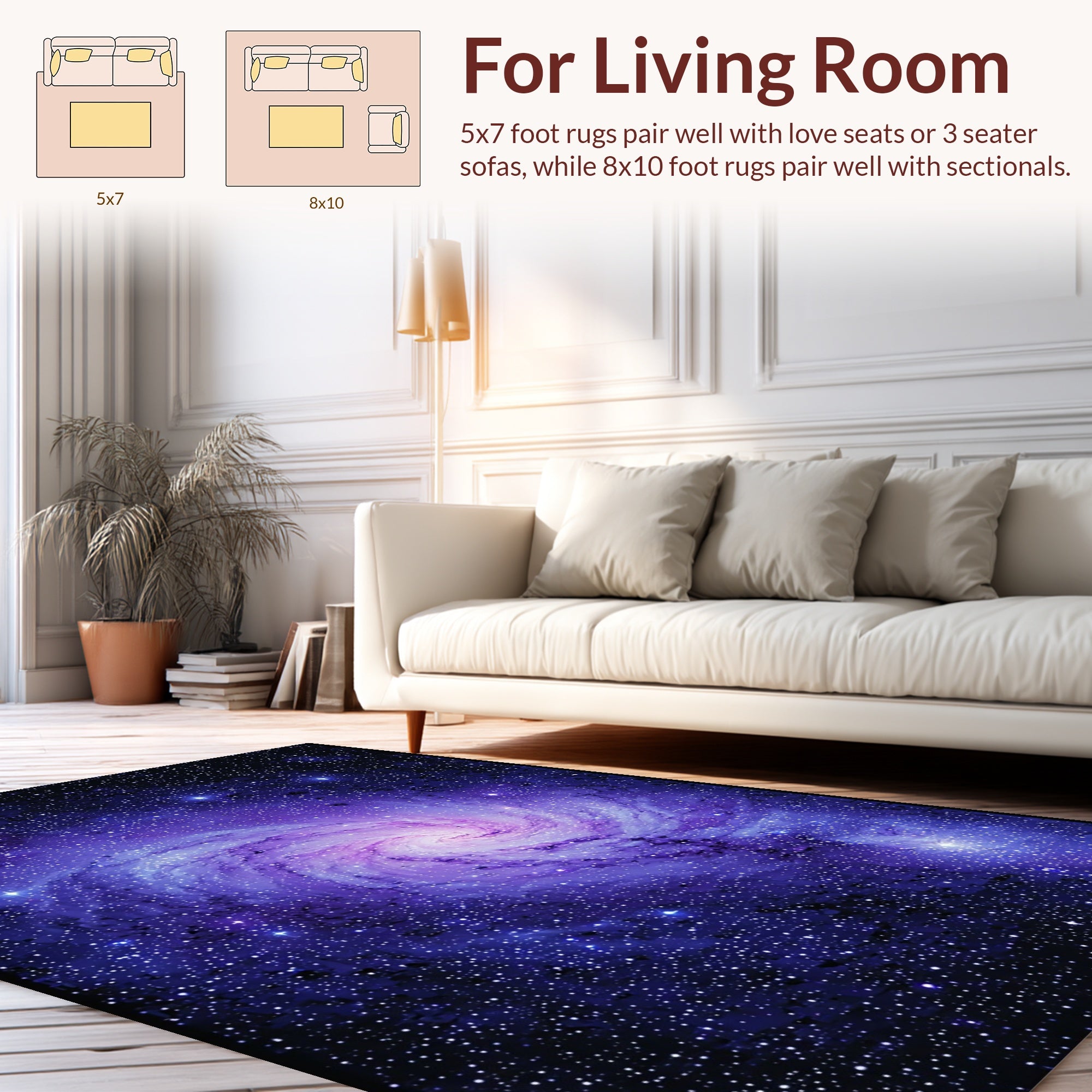 Flatwoven High Traffic Area Rug, Cosmic Purple Nebula Aesthetic, Non Slip, Stain Resistant, Washable Area Rugs for Living Room, Bedroom (Purple) Overview: