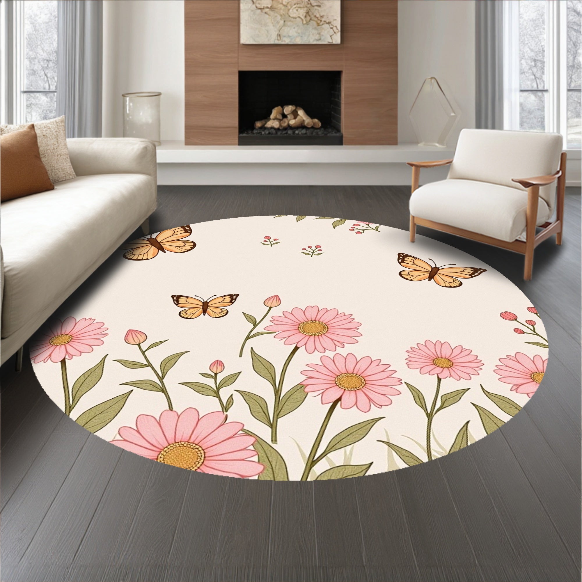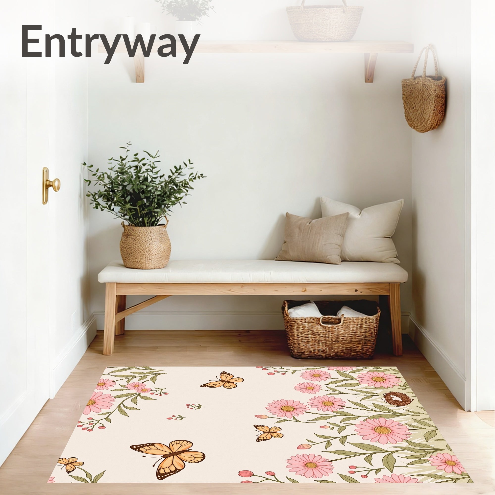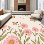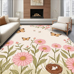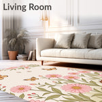 Ultra Soft Area Rug, Non Slip, Stain Resistant, Washable Area Rugs for Living Room, Bedroom, Cottage Birdhouse Fluttering Meadow Symphony(Pink) Overview: