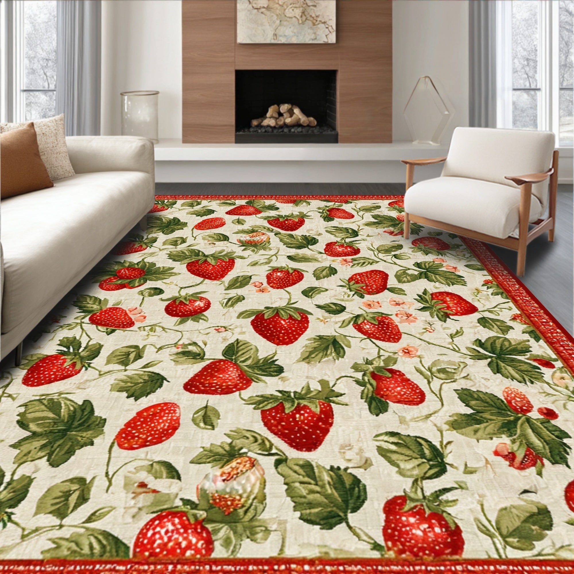 Ultra Soft Area Rug, Non Slip, Stain Resistant, Washable Area Rugs for Living Room, Bedroom, Cottage Charm Round Rug Strawberry Field & Edge Carpet(Red) Overview: