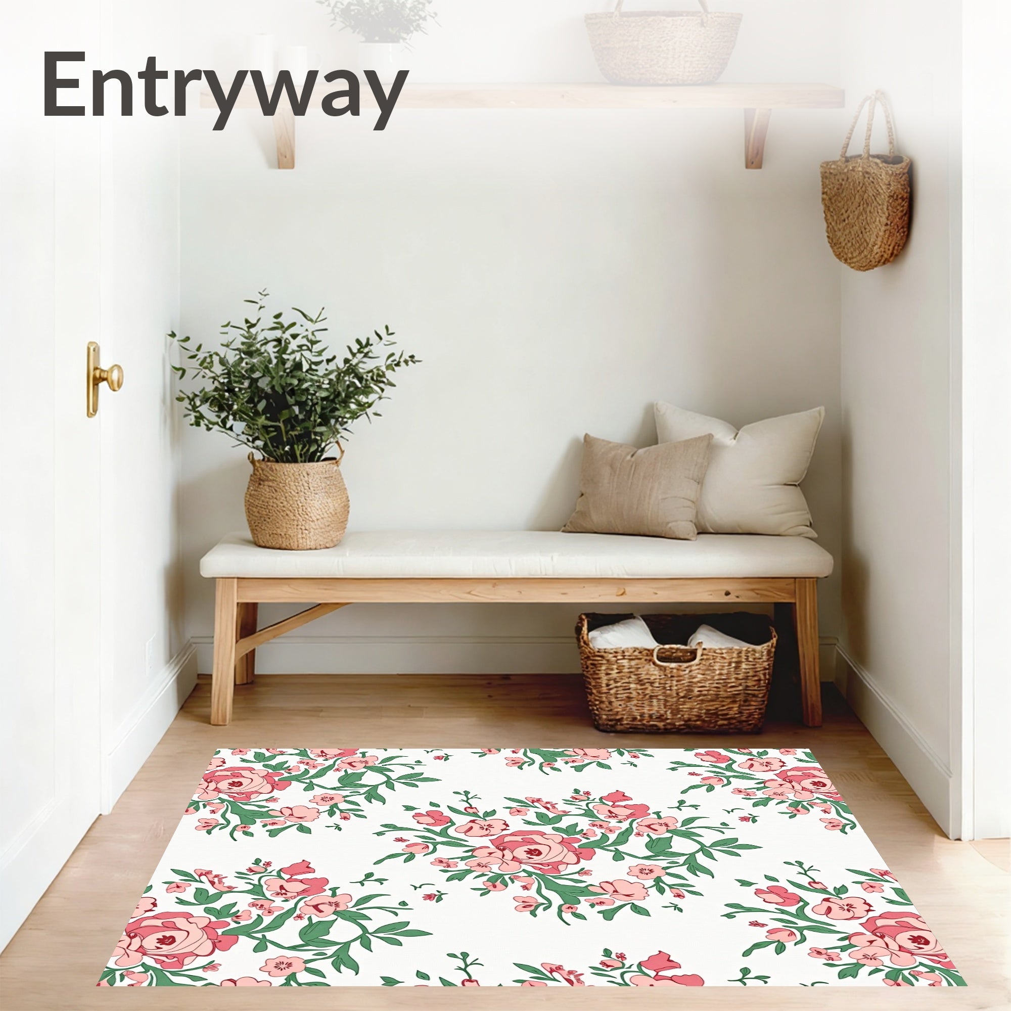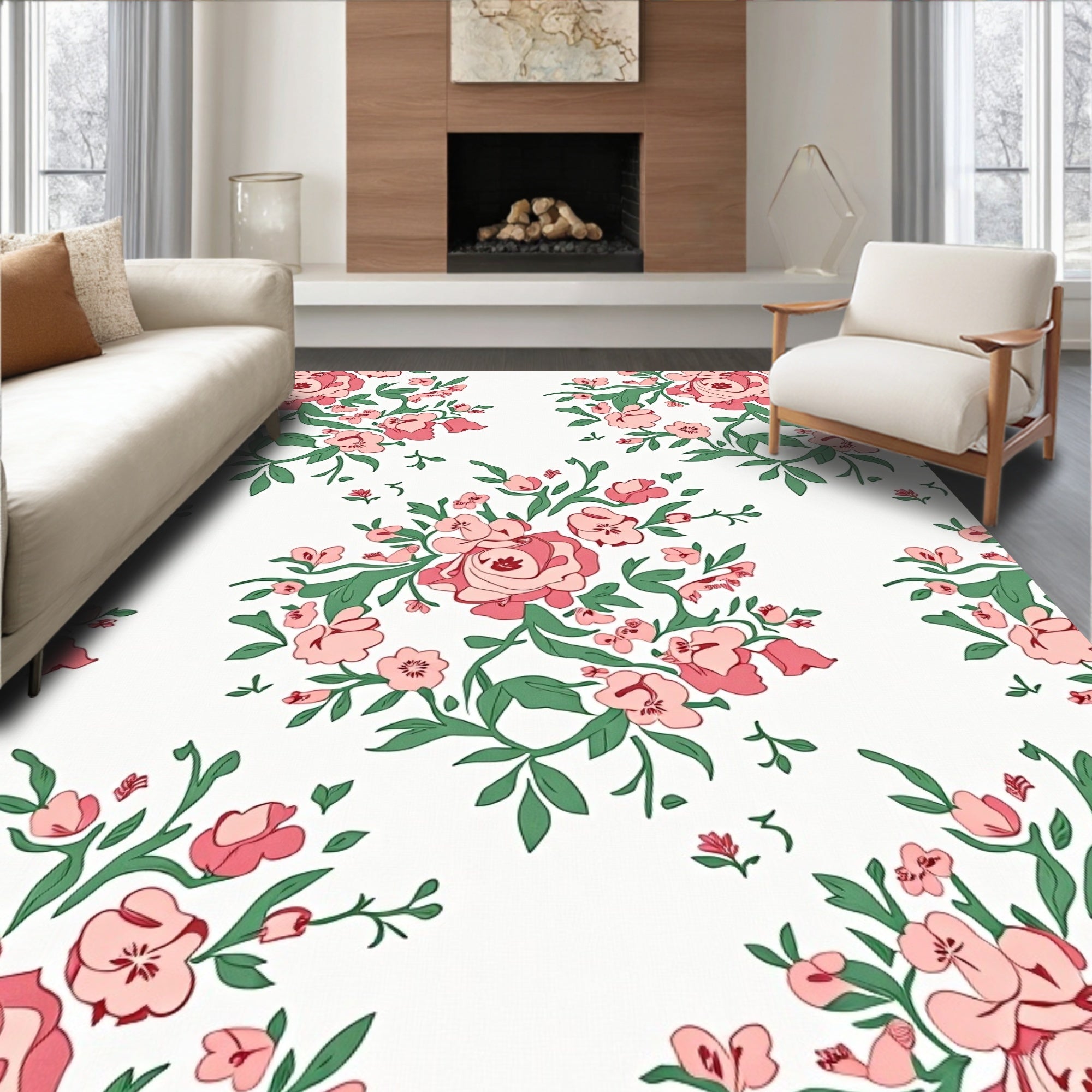 Ultra Soft Area Rug, Non Slip, Stain Resistant, Washable Area Rugs for Living Room, Bedroom, Cottage Garden Blossom Print(Pink) Overview: