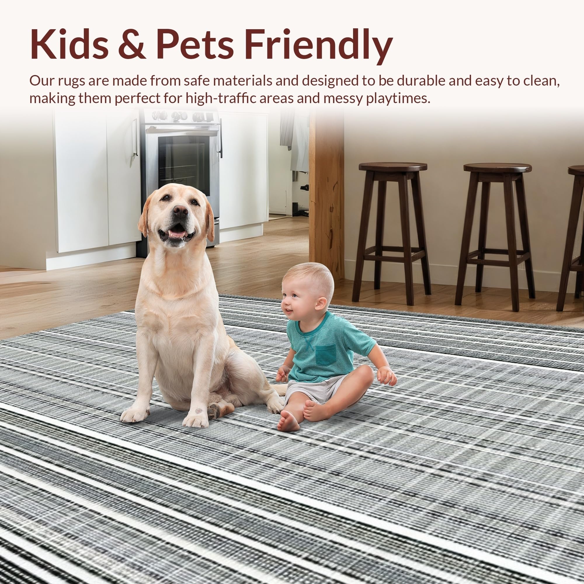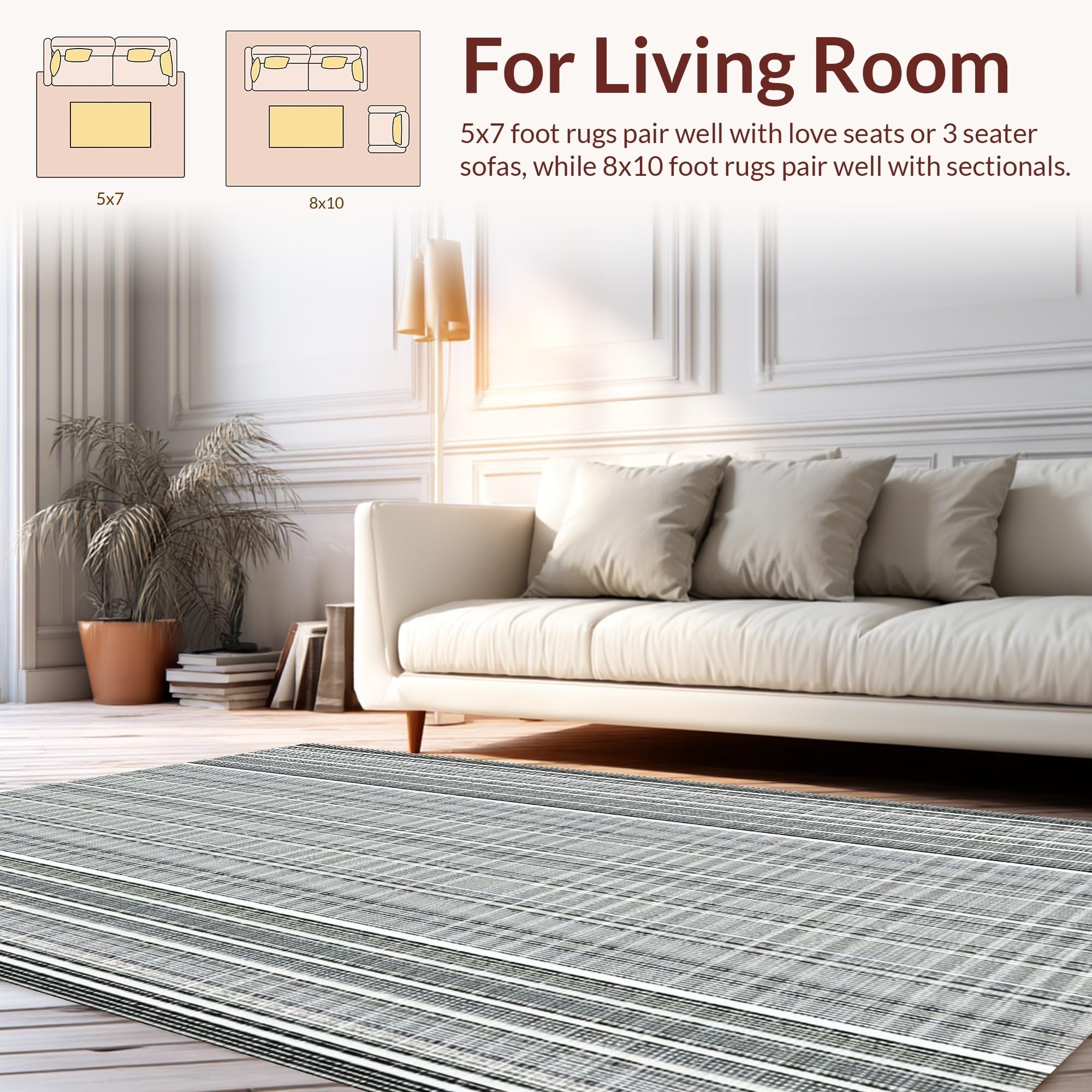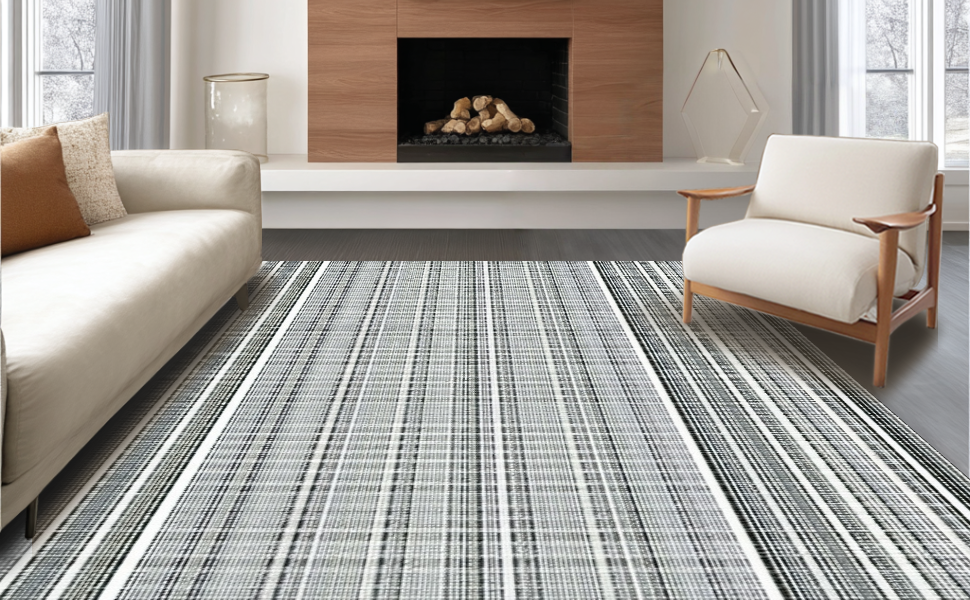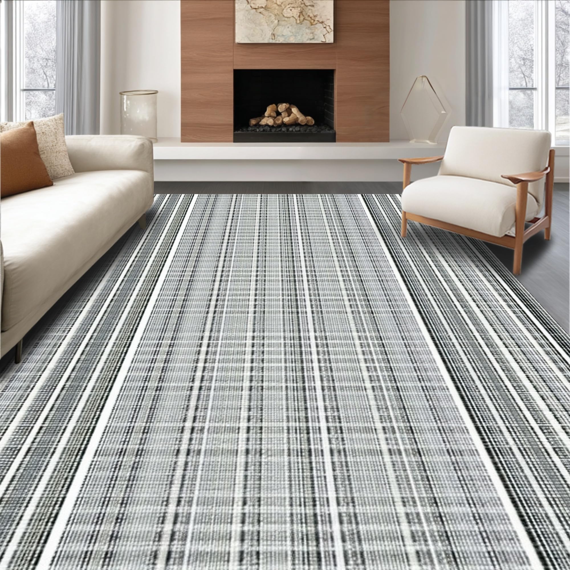 Ultra Soft Area Rug, Non Slip, Stain Resistant, Washable Area Rugs for Living Room, Bedroom, Cotton Braided Rug Black White Modern Farmhouse Front Porch Mat(Gray) Overview: