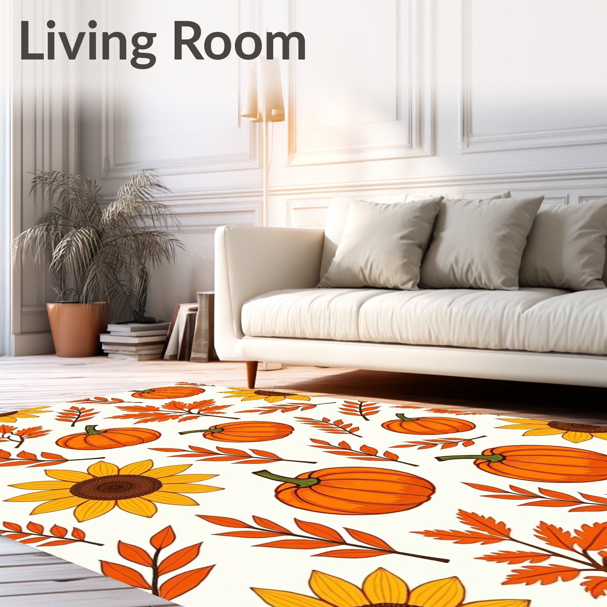 Ultra Soft Area Rug, Non Slip, Stain Resistant, Washable Area Rugs for Living Room, Bedroom, Country Harvest Celebration Floor(Orange) Overview: