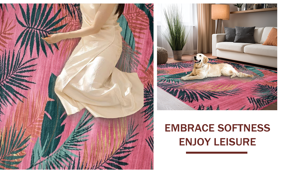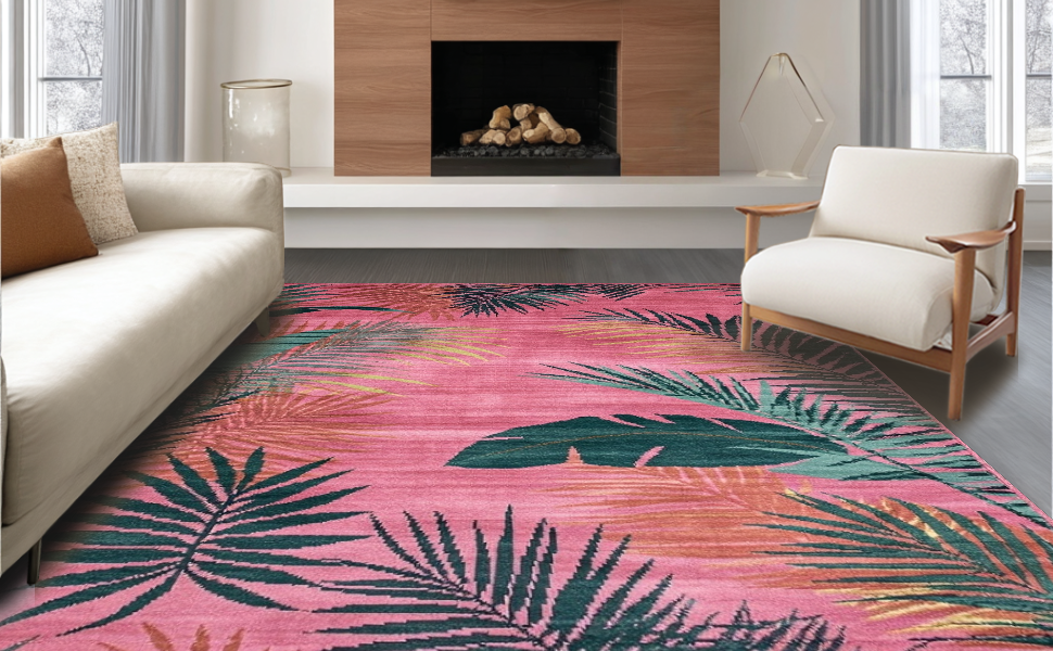 Ultra Soft Area Rug, Non Slip, Stain Resistant, Washable Area Rugs for Living Room, Bedroom, Cozy Abstract Medallion Aesthetic(Pink) Overview: