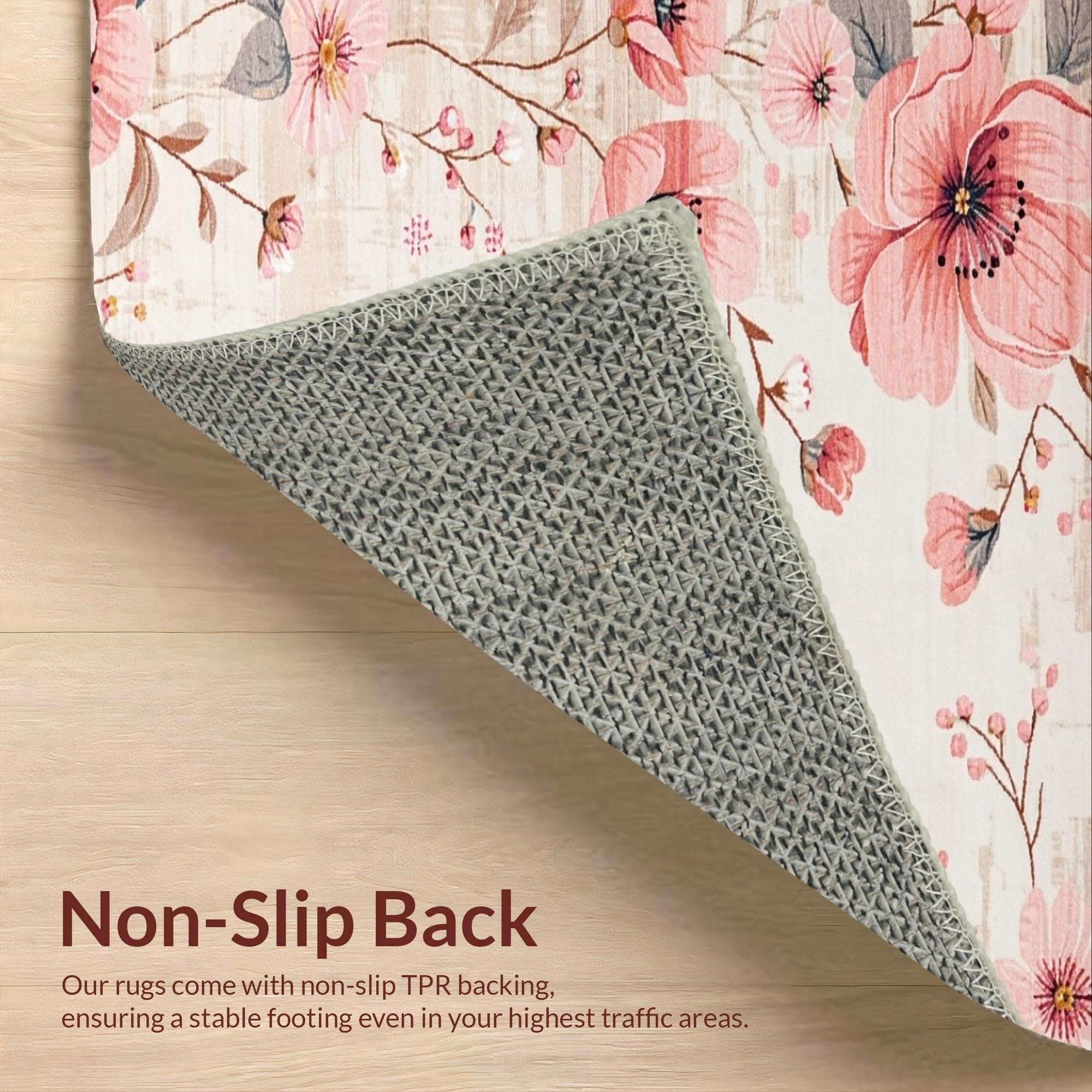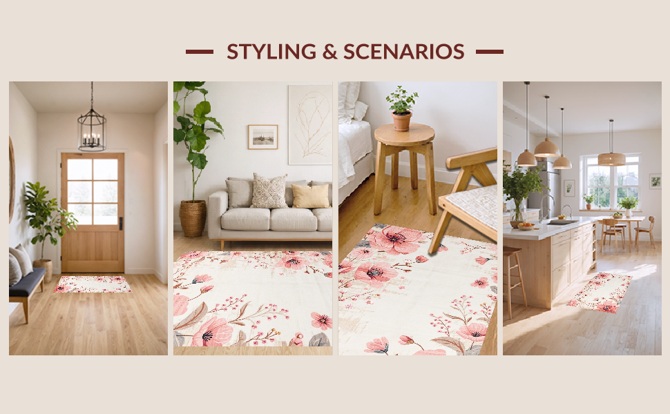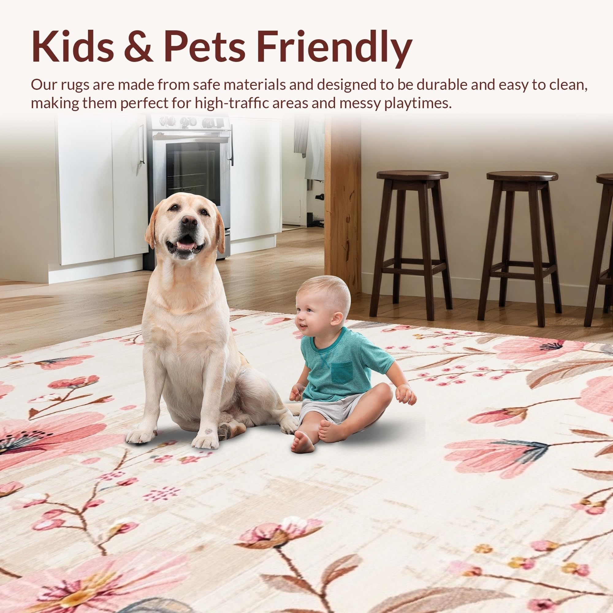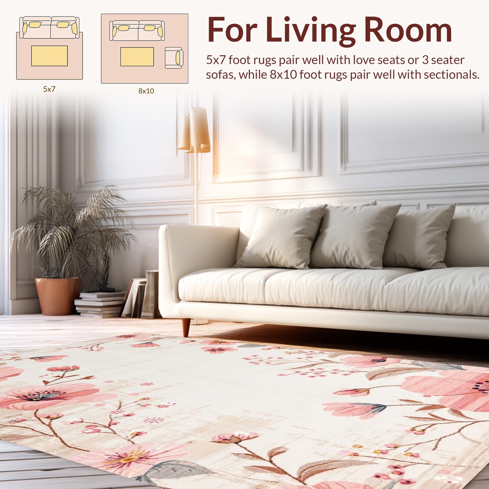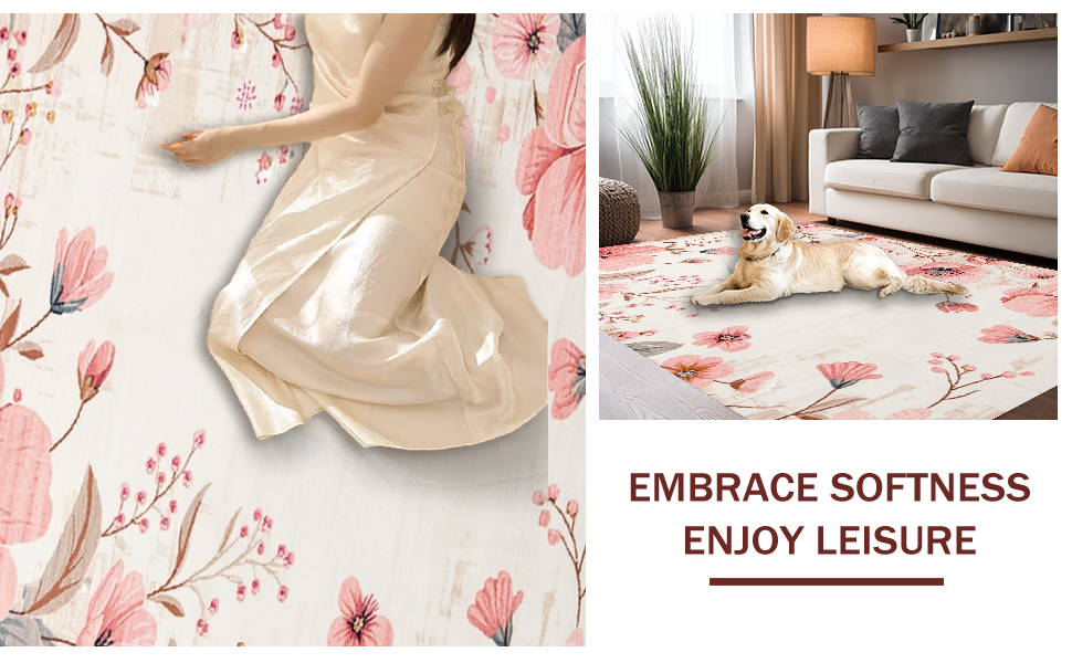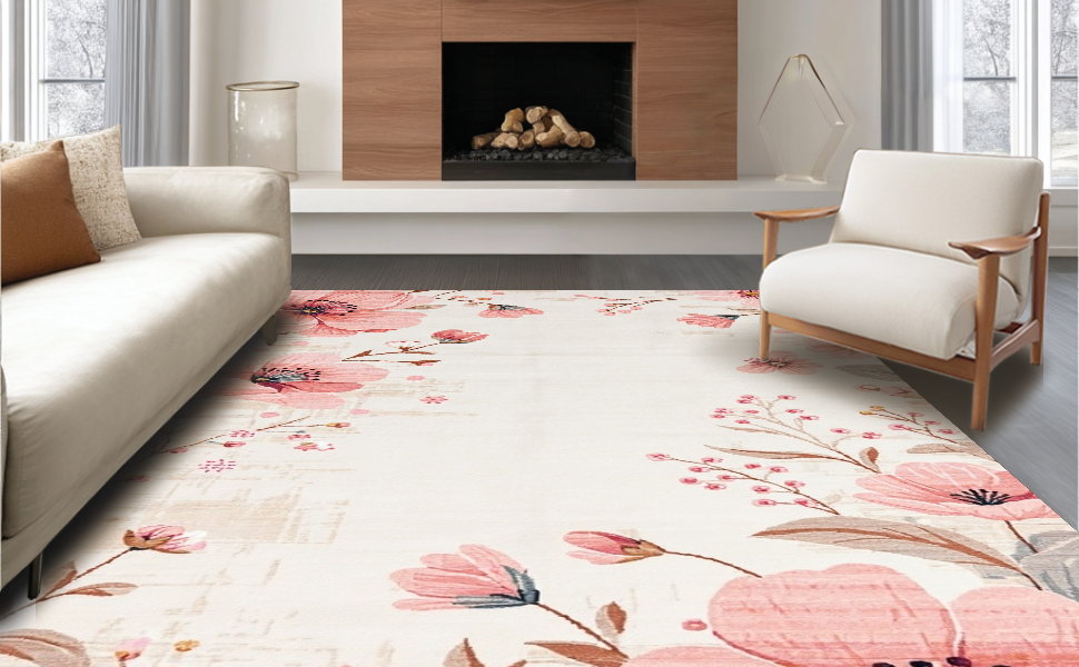 Ultra Soft Area Rug, Non Slip, Stain Resistant, Washable Area Rugs for Living Room, Bedroom, Cozy Artistic Nature Illustrations(Pink) Overview: