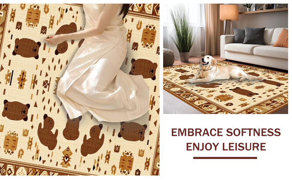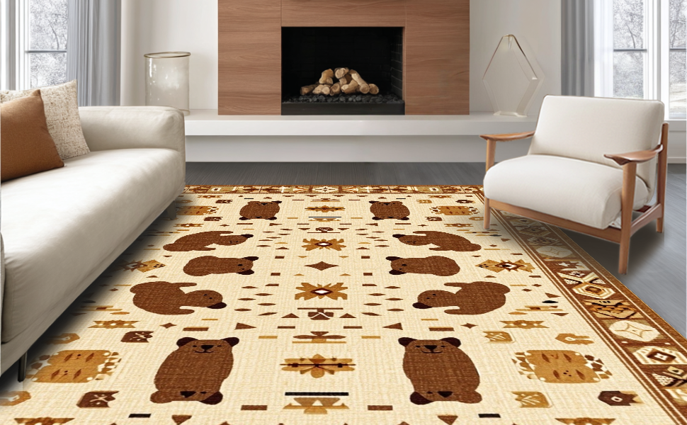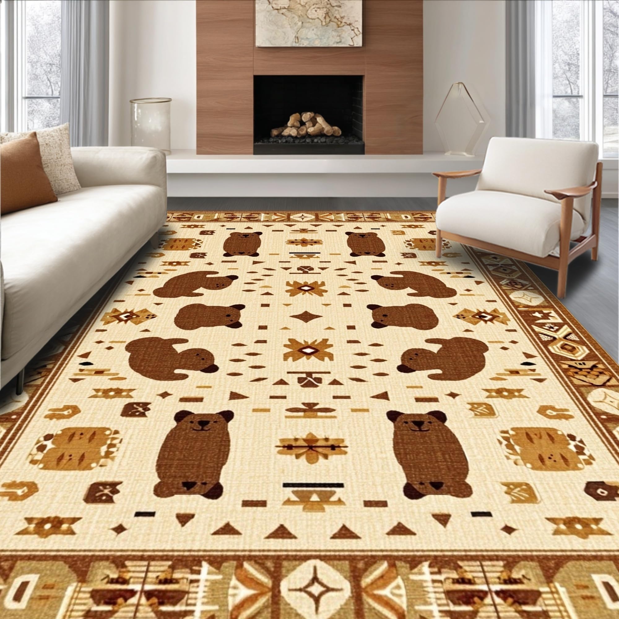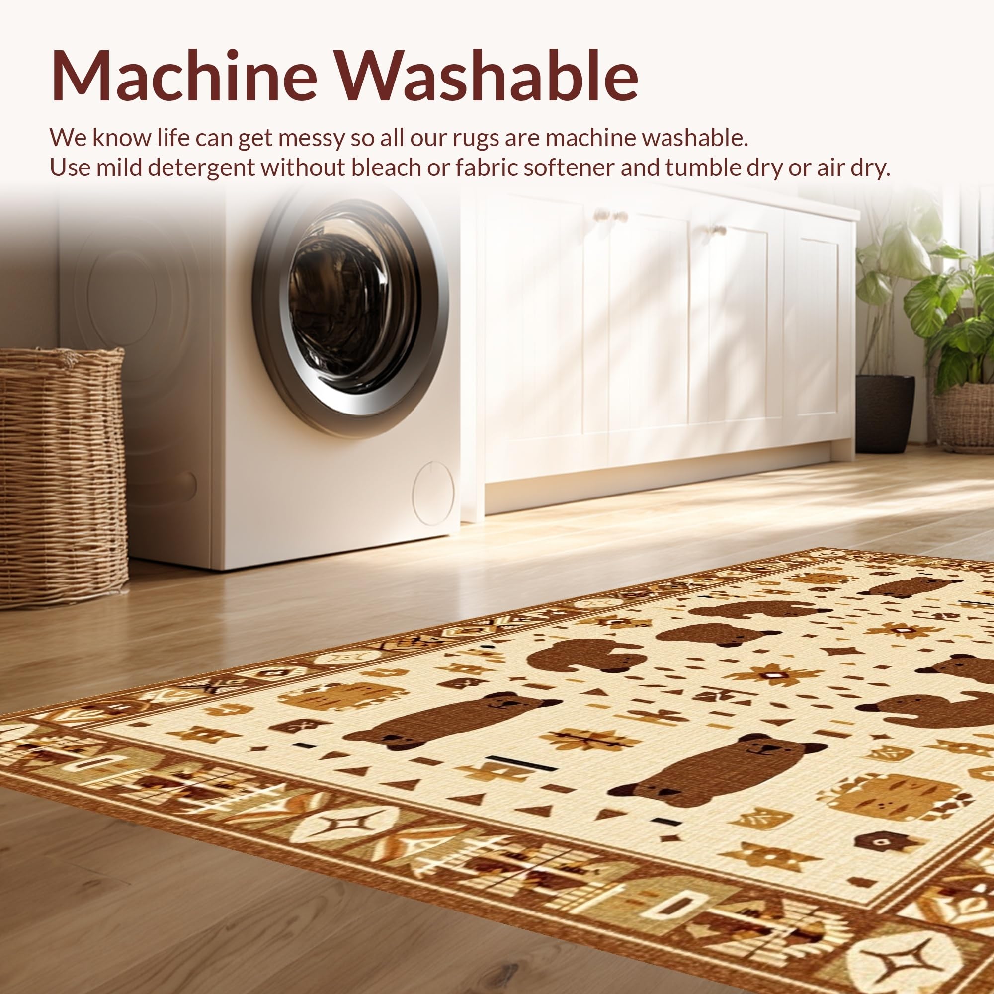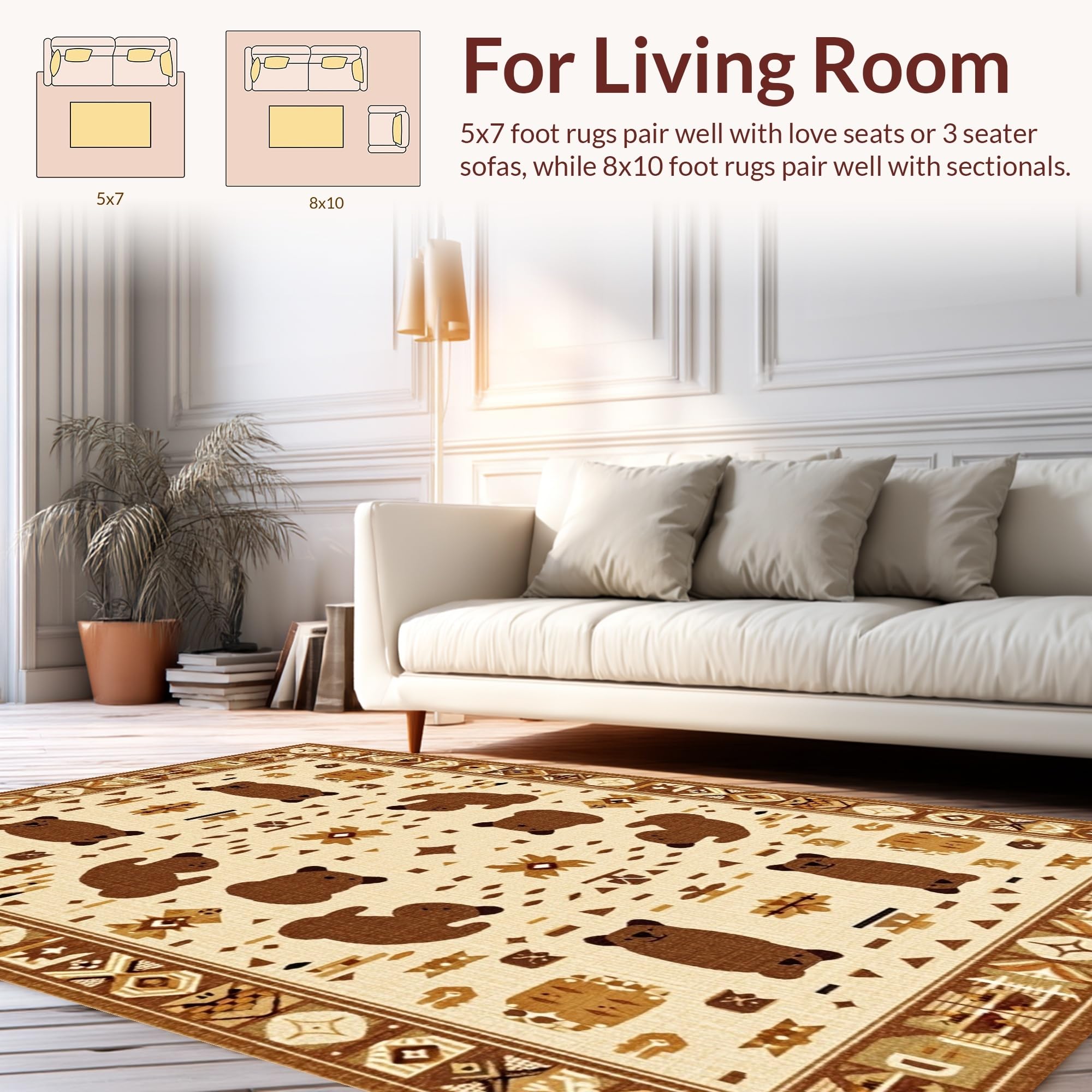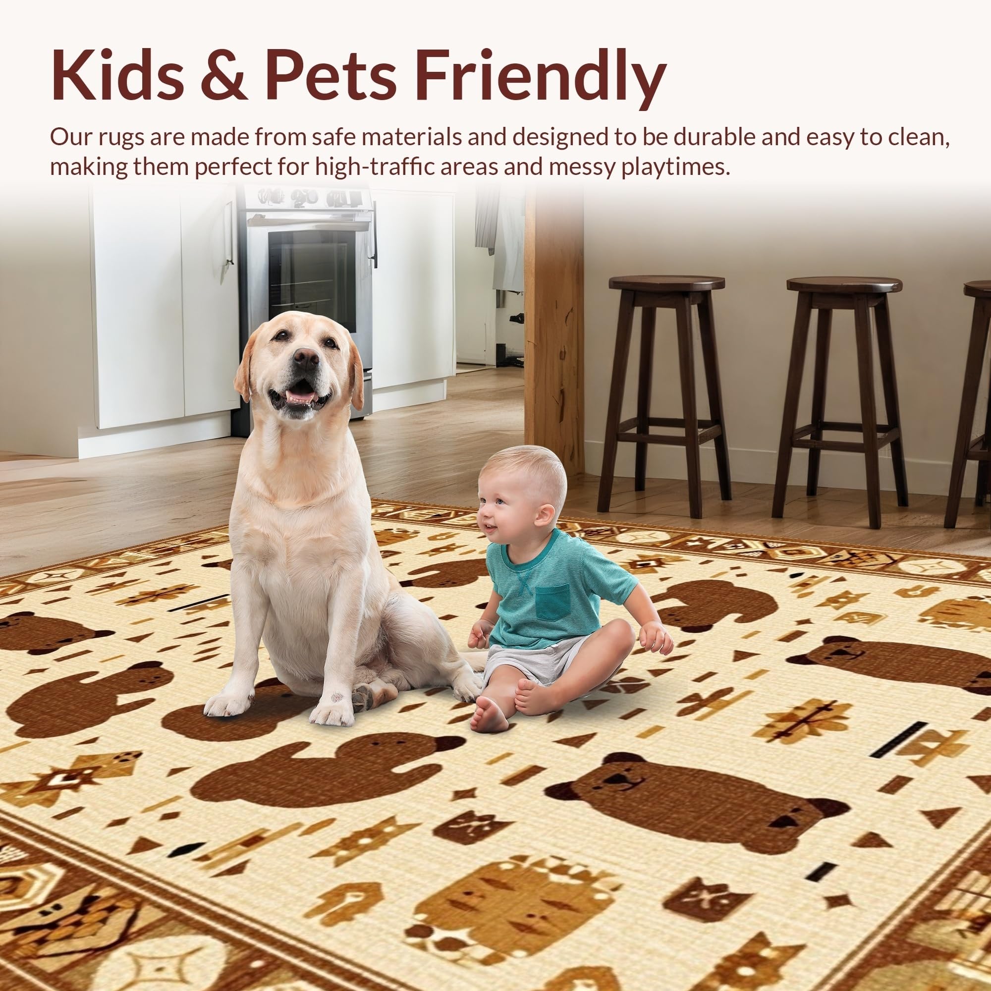 Ultra Soft Area Rug, Non Slip, Stain Resistant, Washable Area Rugs for Living Room, Bedroom, Cozy Beige Cartoon Inspiration(Beige) Overview: