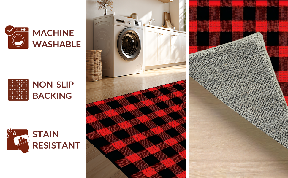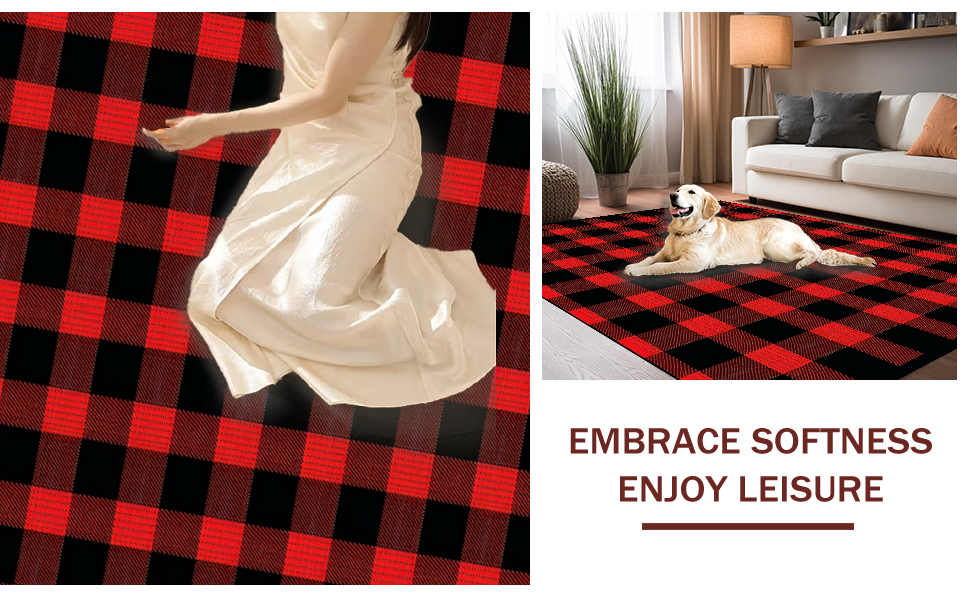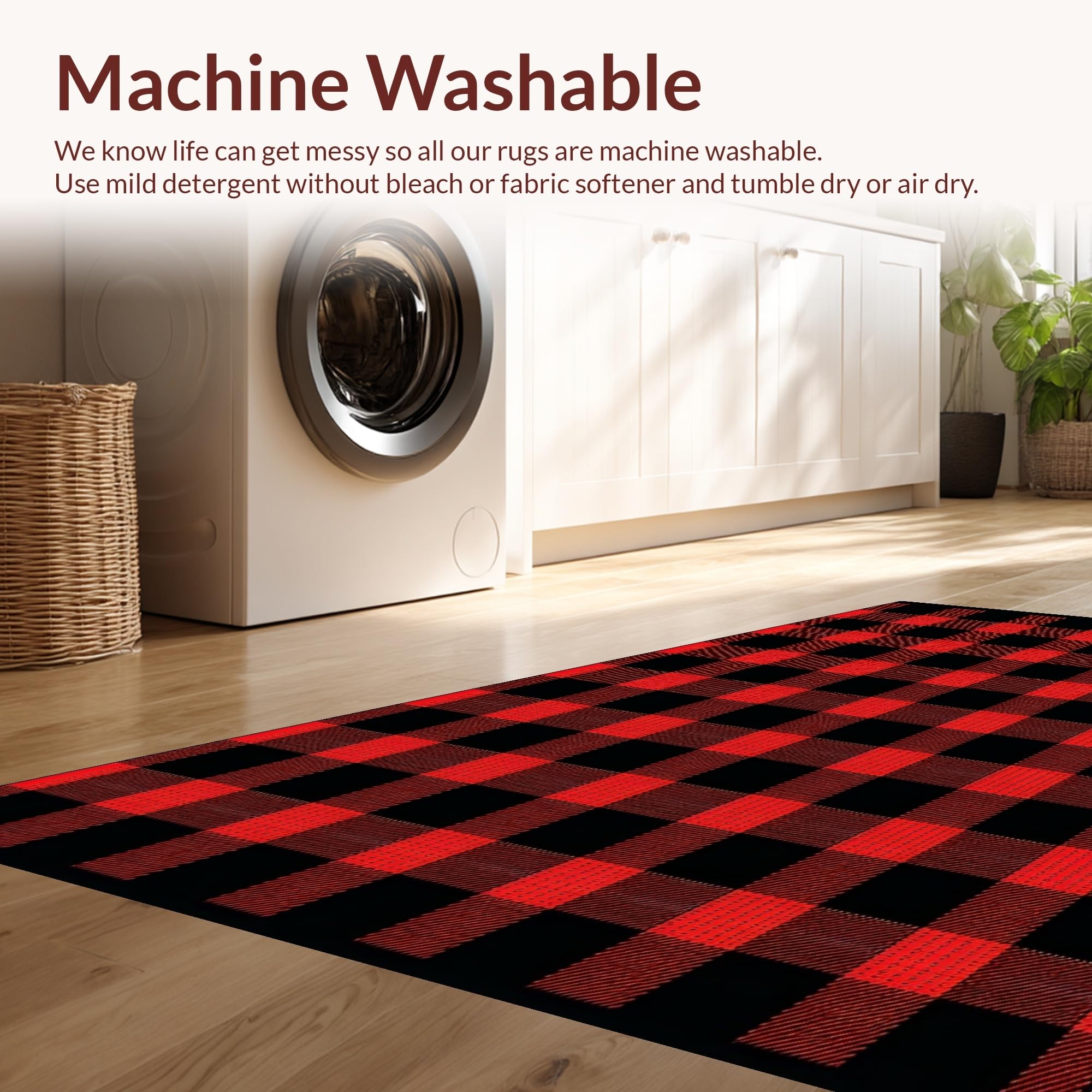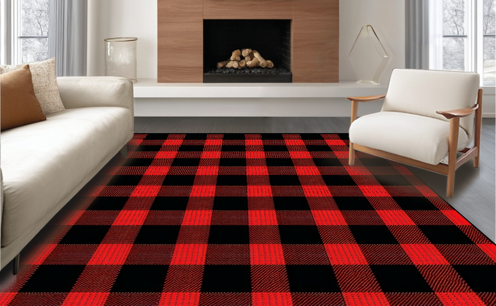 Ultra Soft Area Rug, Non Slip, Stain Resistant, Washable Area Rugs for Living Room, Bedroom, Cozy Black White Check Pattern(Red) Overview: