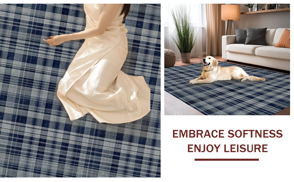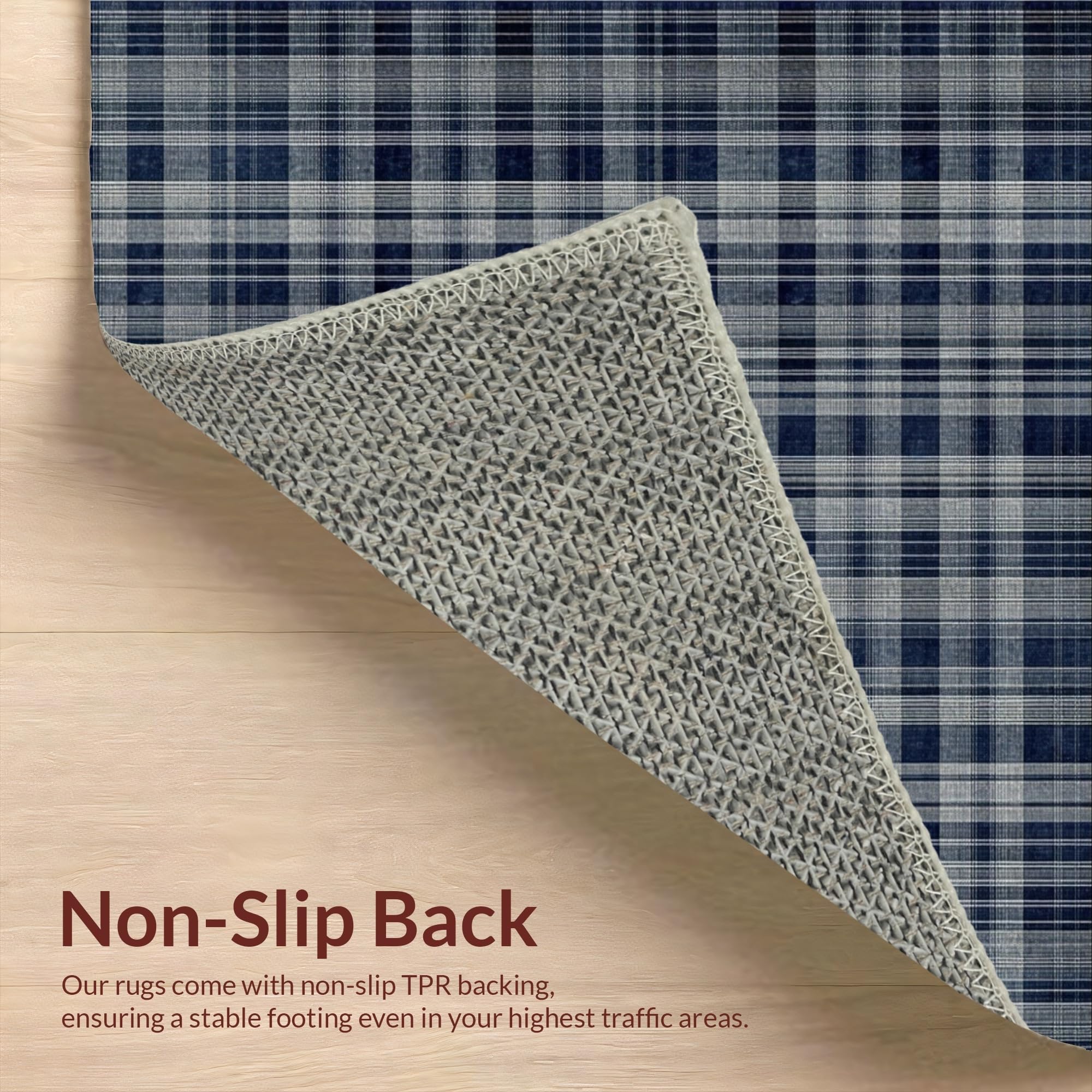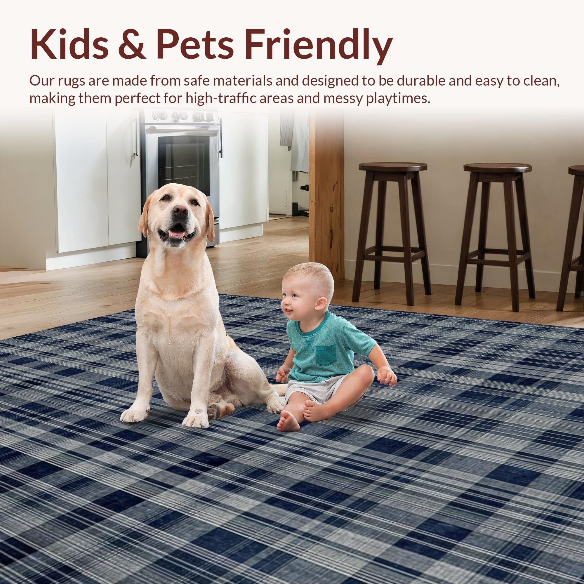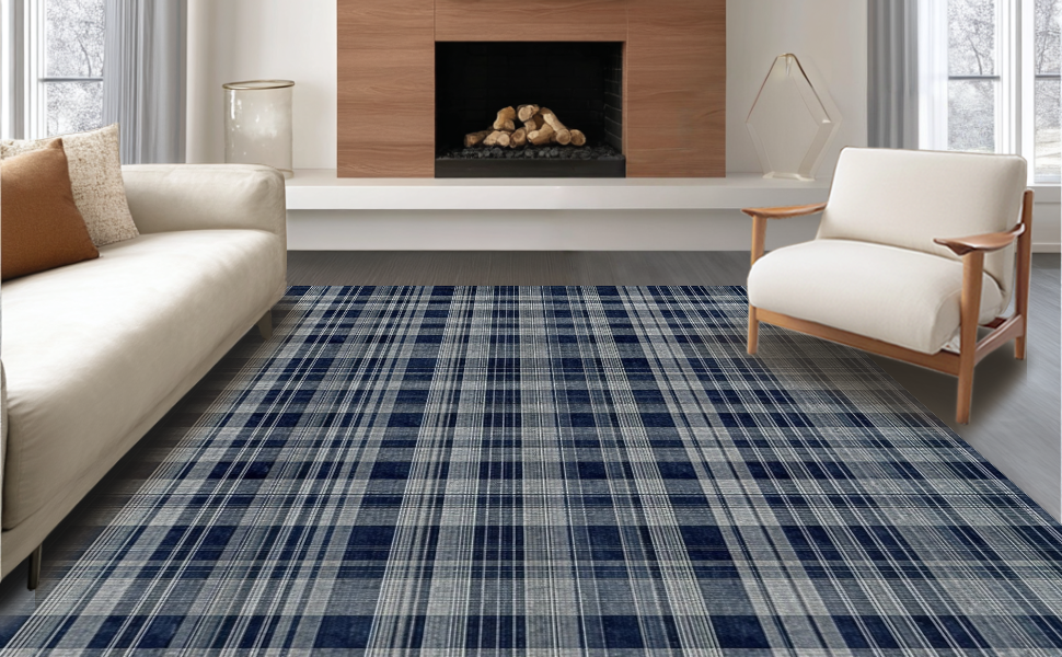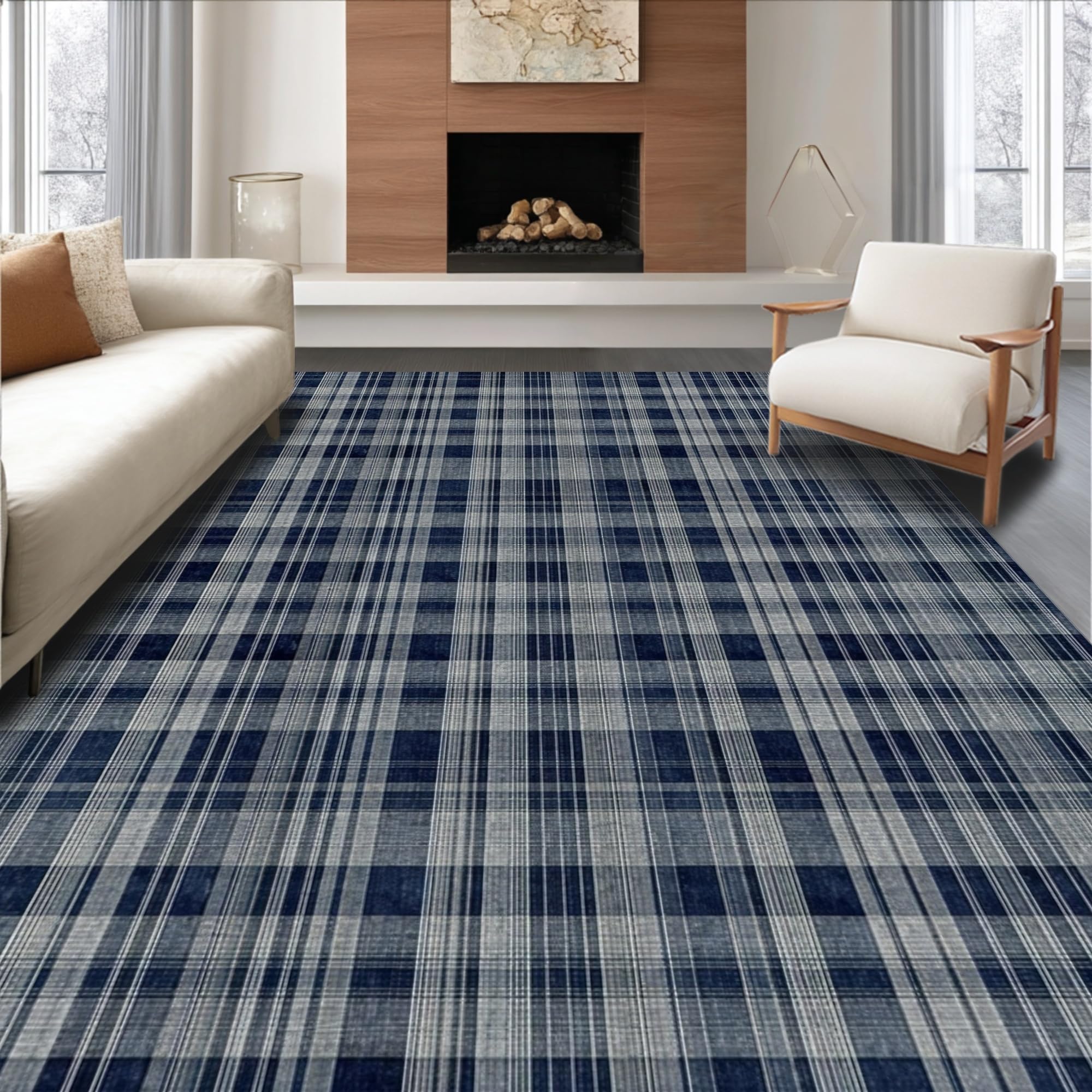 Ultra Soft Area Rug, Non Slip, Stain Resistant, Washable Area Rugs for Living Room, Bedroom, Cozy Blue and Gray Trellis(Blue) Overview: