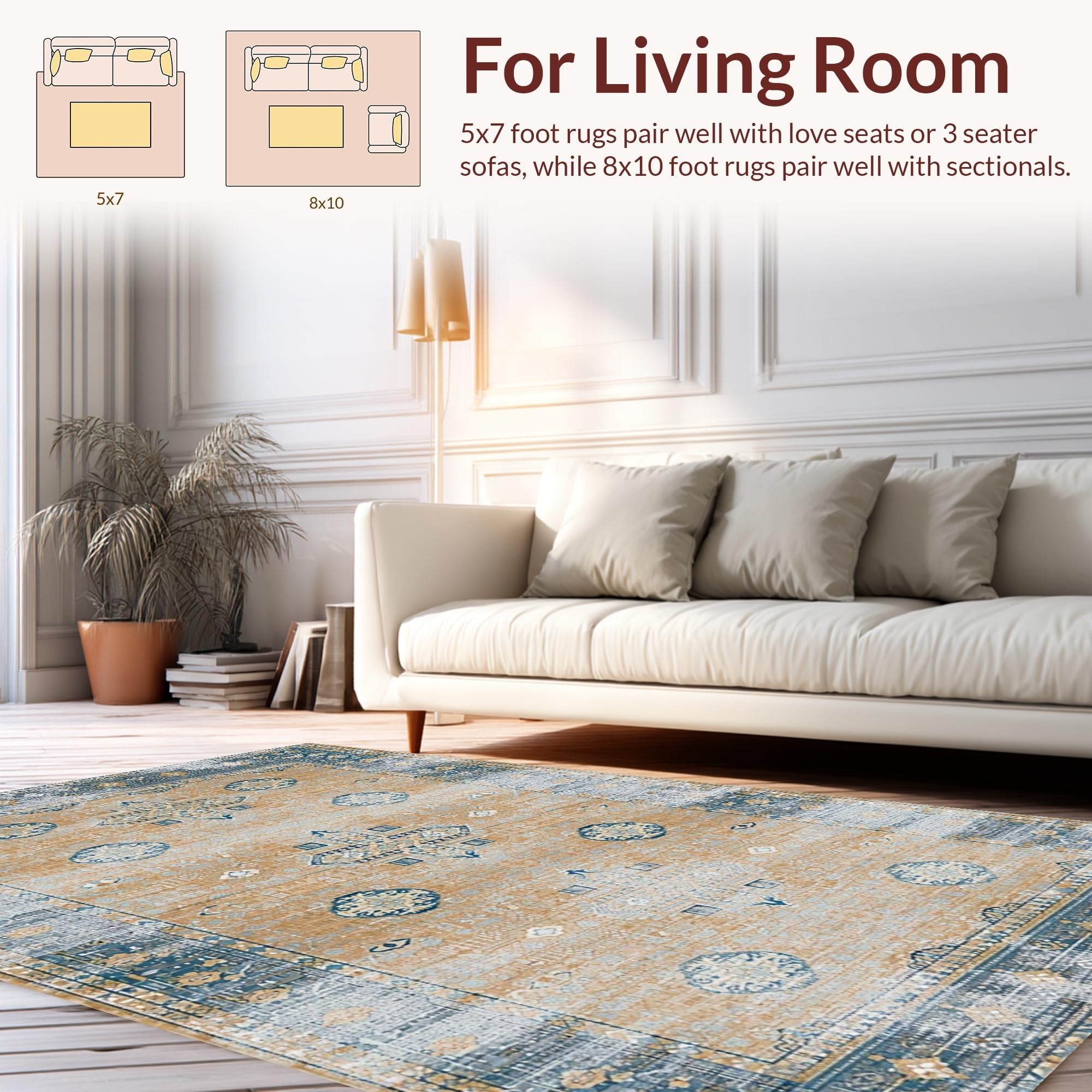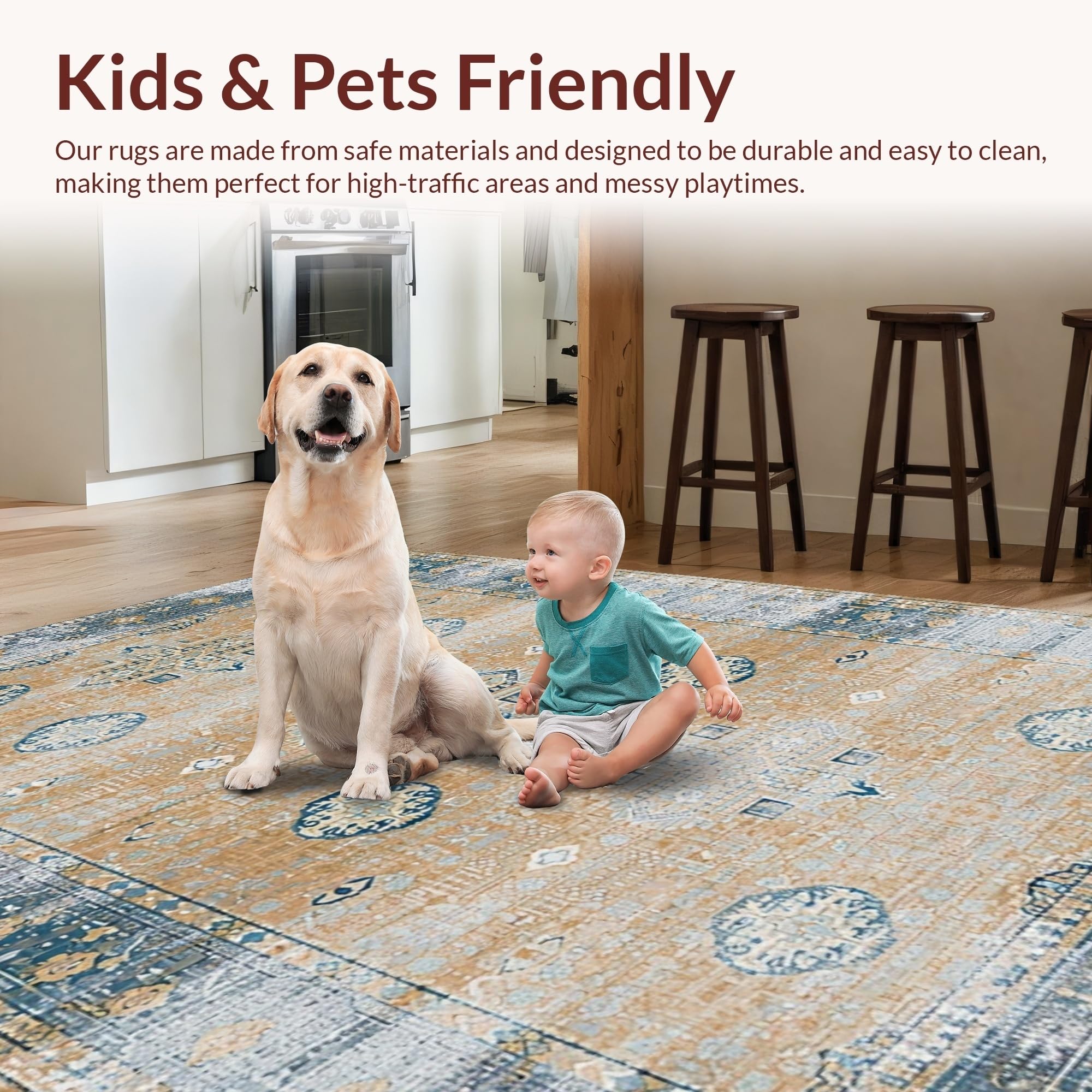 Ultra Soft Area Rug, Non Slip, Stain Resistant, Washable Area Rugs for Living Room, Bedroom, Cozy Brown Ogee Design Element(Beige) Overview: