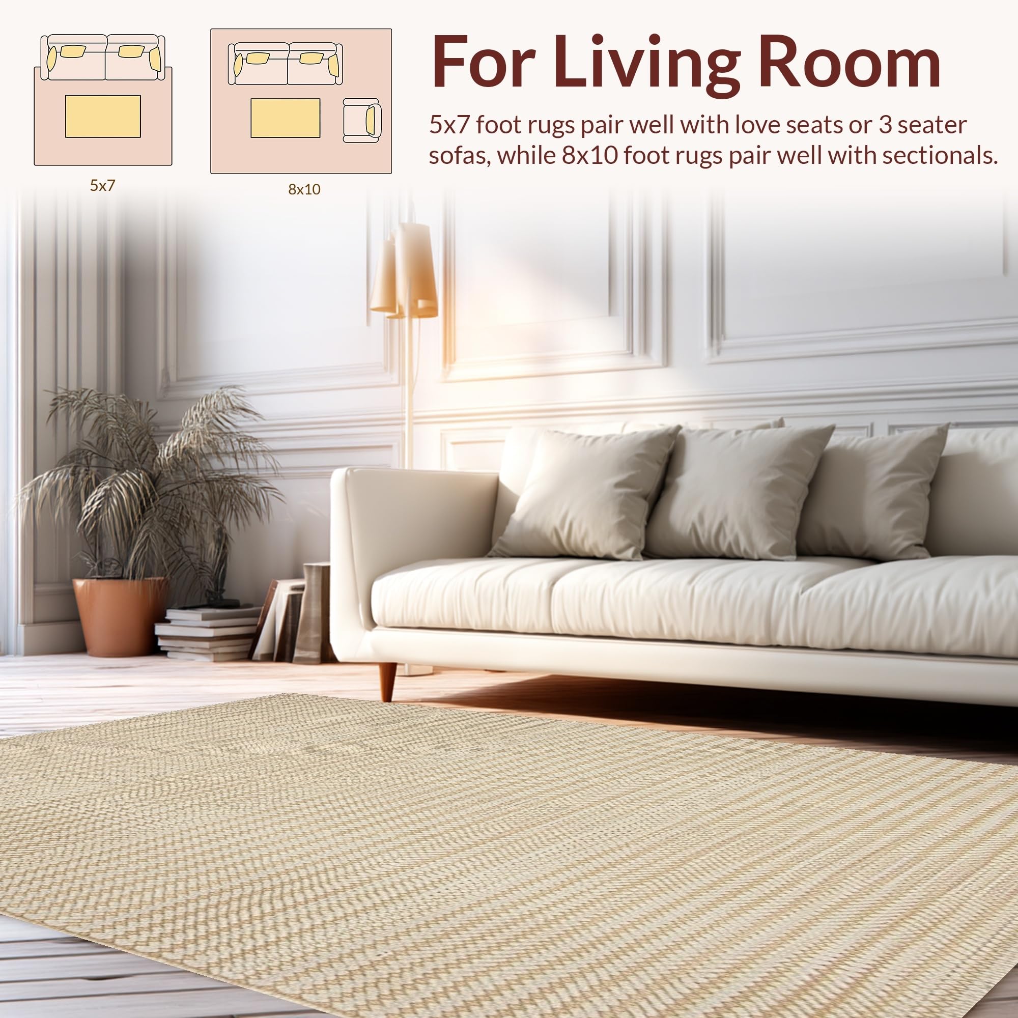 Ultra Soft Area Rug, Non Slip, Stain Resistant, Washable Area Rugs for Living Room, Bedroom, Cozy Chunky Woven Pattern(Beige) Overview: