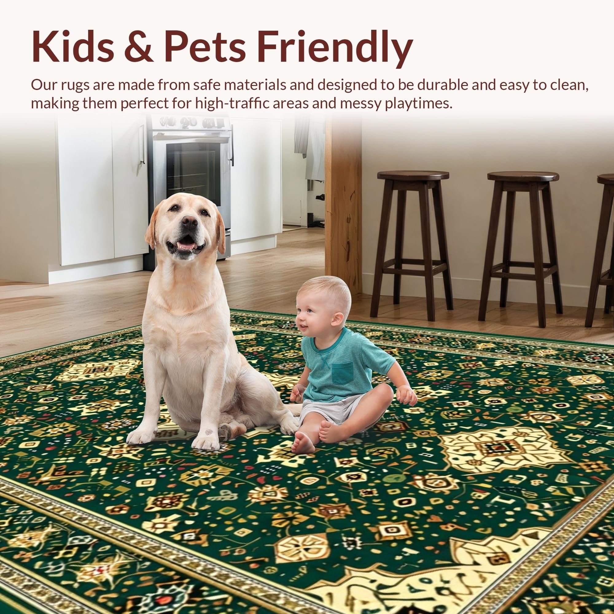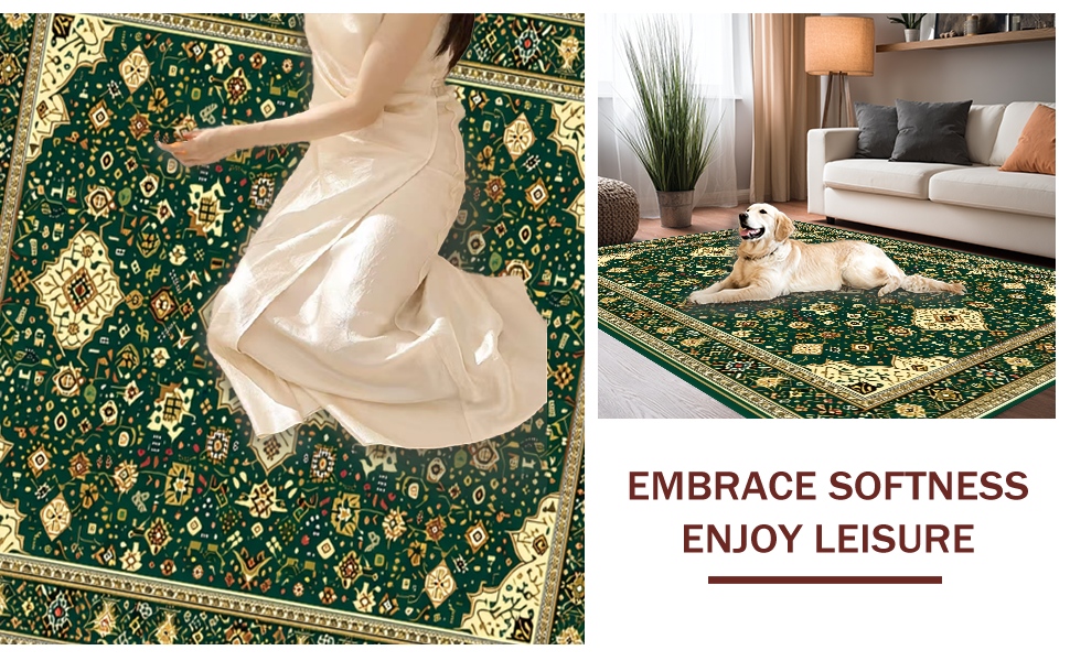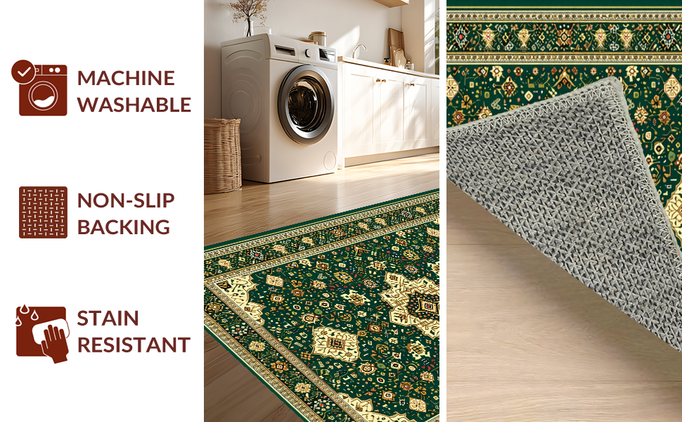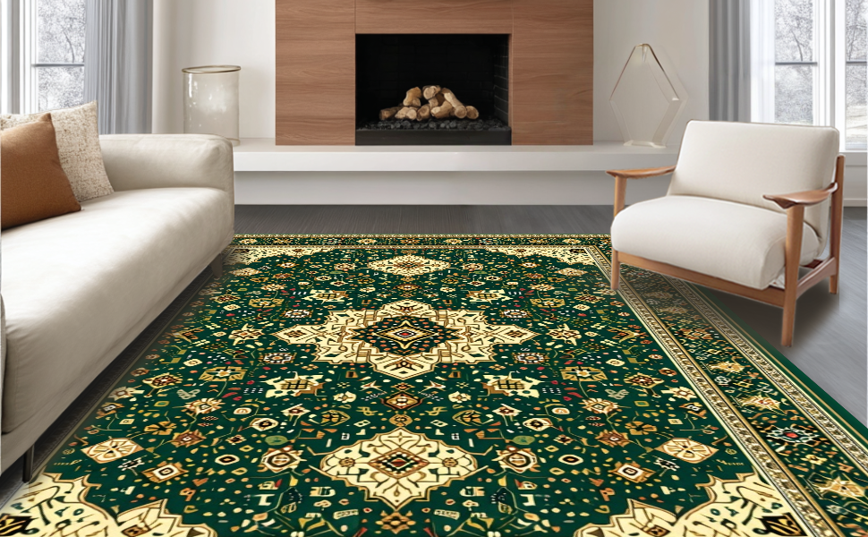 Ultra Soft Area Rug, Non Slip, Stain Resistant, Washable Area Rugs for Living Room, Bedroom, Cozy Classic Medallion Design(Green) Overview: