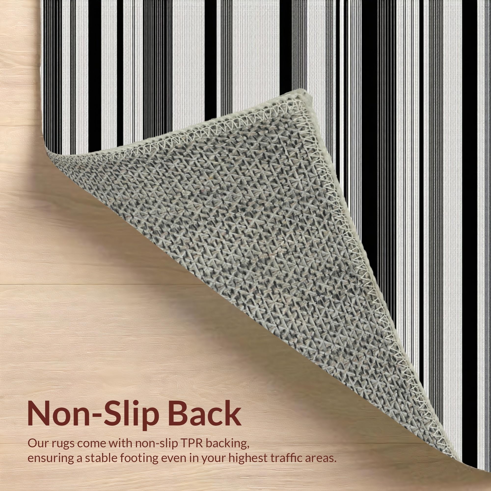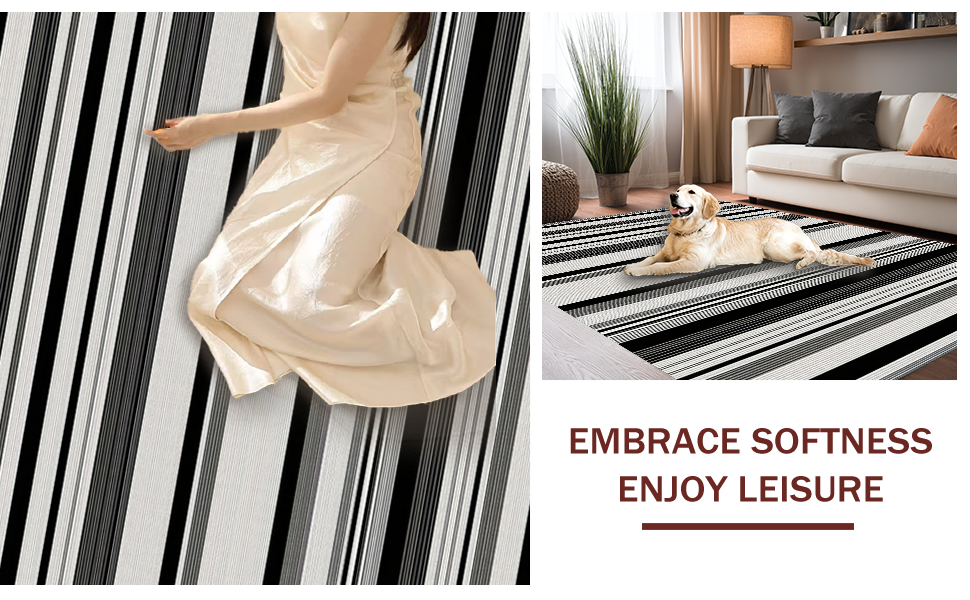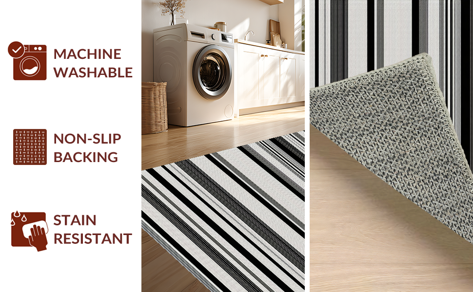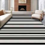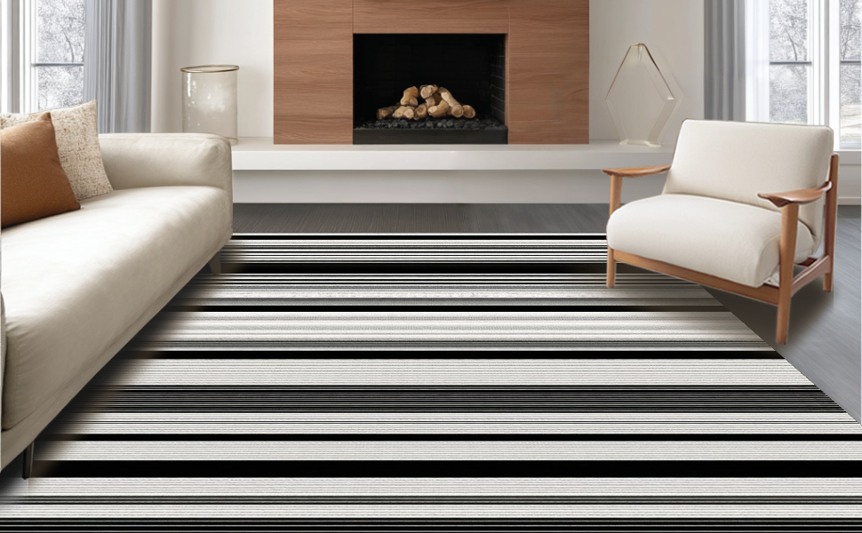 Ultra Soft Area Rug, Non Slip, Stain Resistant, Washable Area Rugs for Living Room, Bedroom, Cozy Classic Stripe Fusion(Black) Overview: