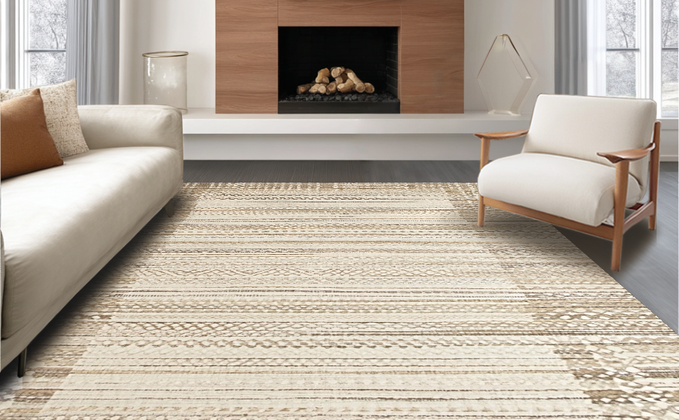 Ultra Soft Area Rug, Non Slip, Stain Resistant, Washable Area Rugs for Living Room, Bedroom, Cozy Classic Tiled Pattern(Beige) Overview: