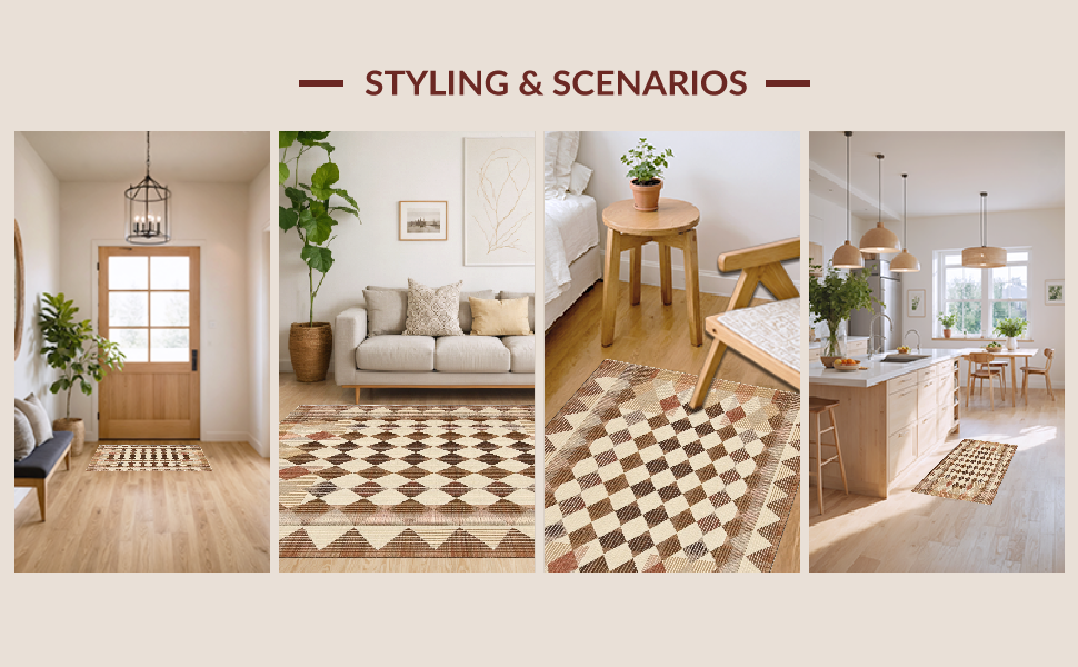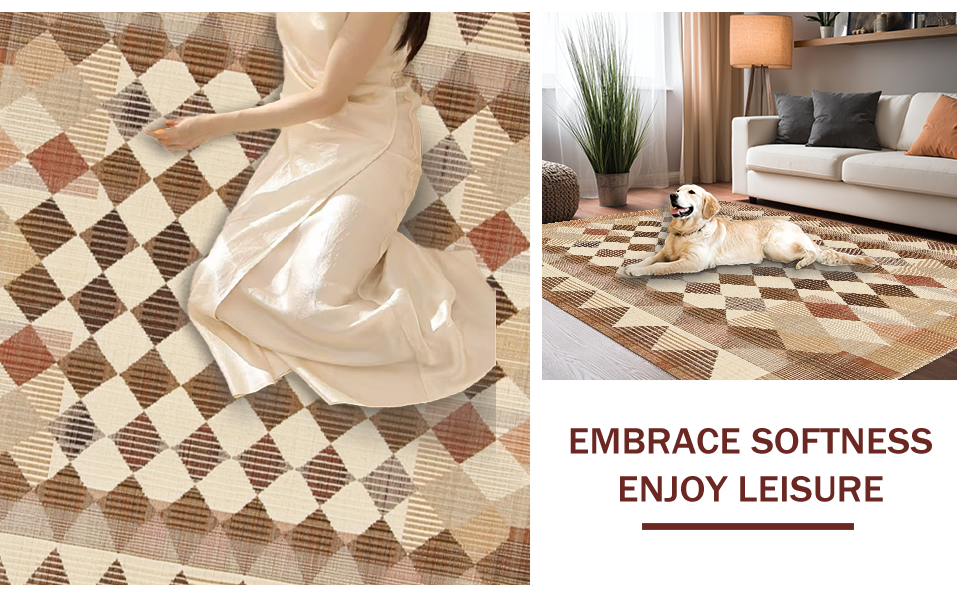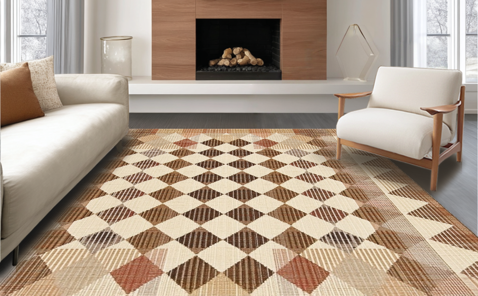 Ultra Soft Area Rug, Non Slip, Stain Resistant, Washable Area Rugs for Living Room, Bedroom, Cozy Coastal Geometric Inspiration(Beige) Overview: