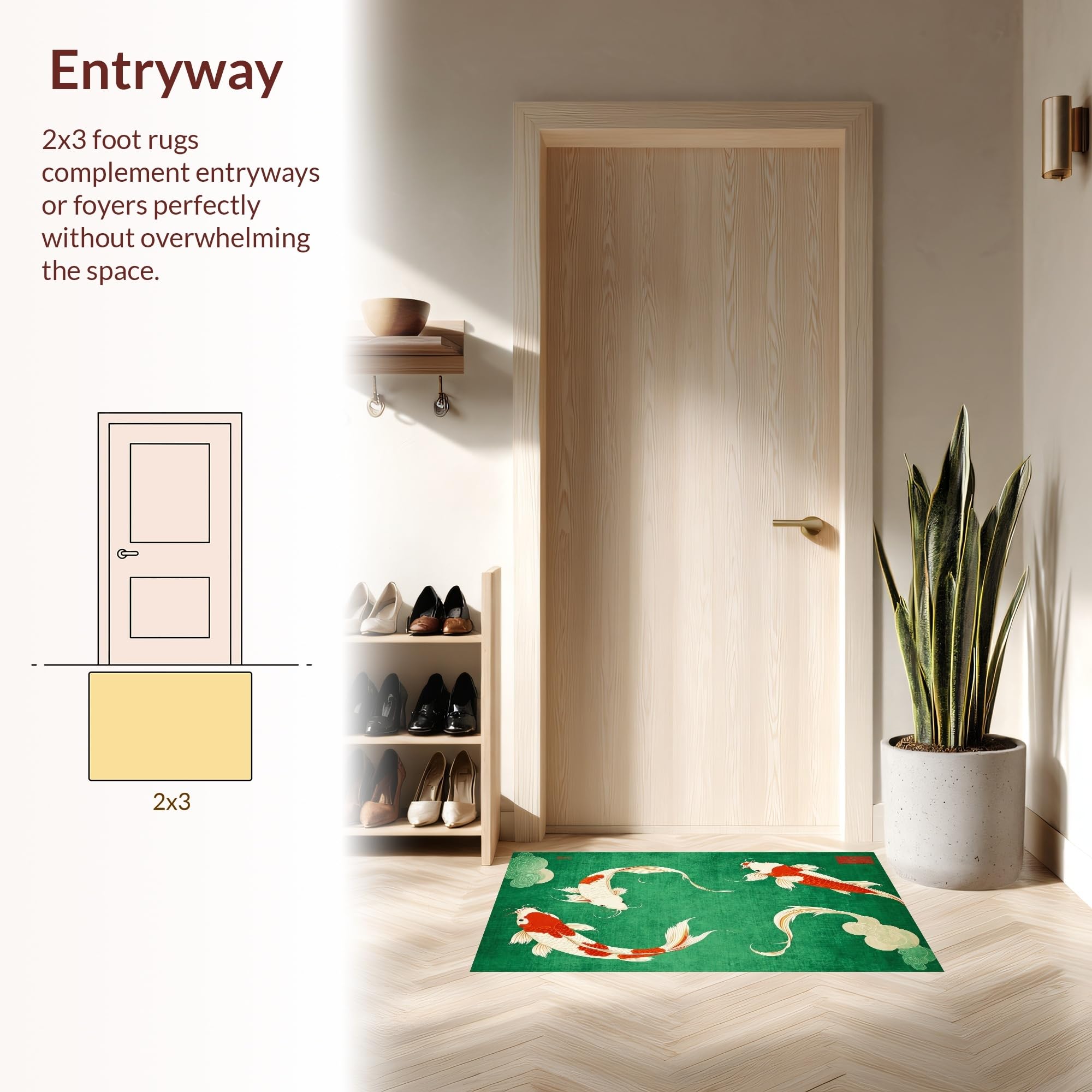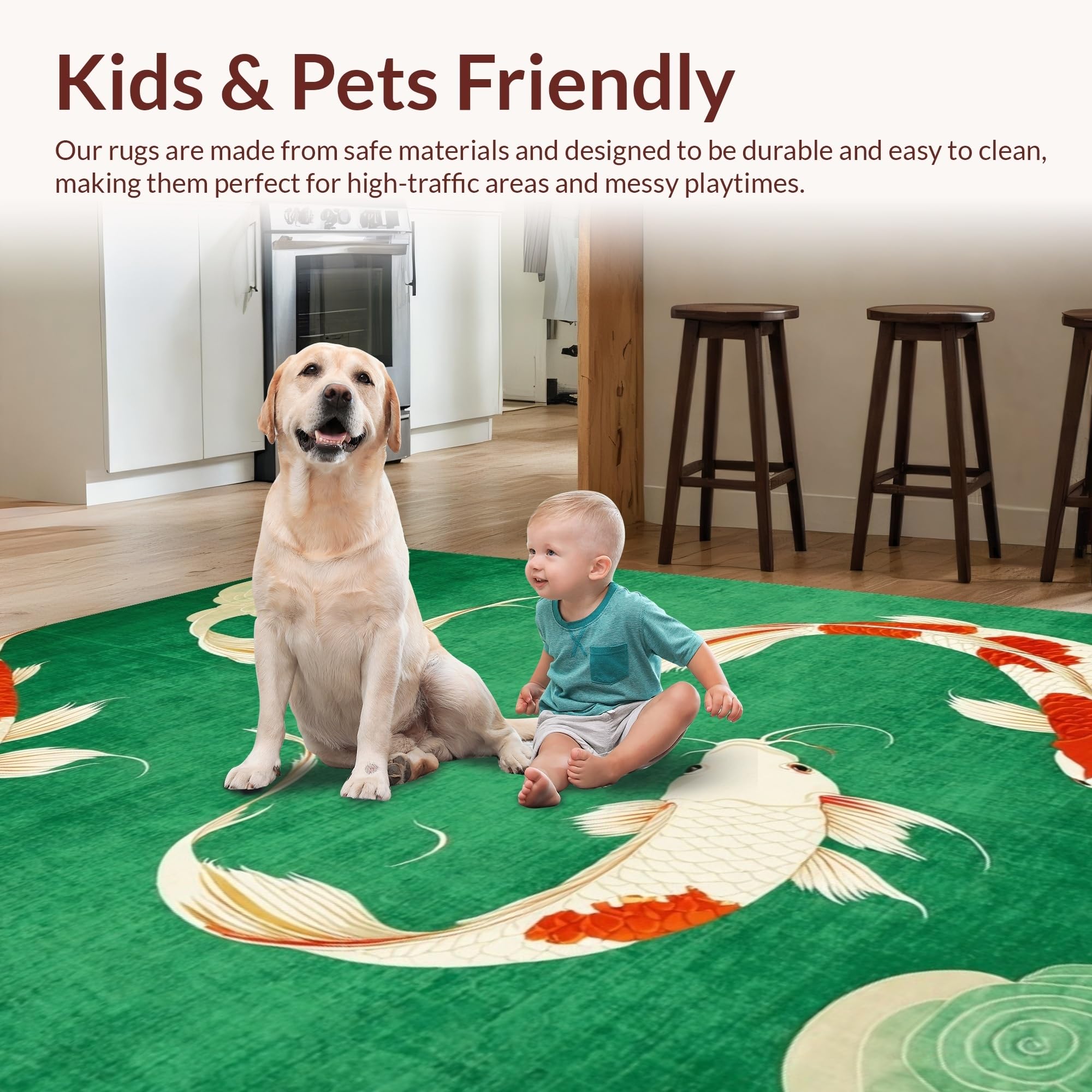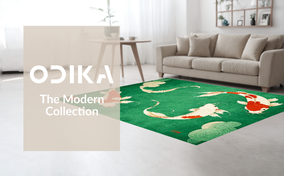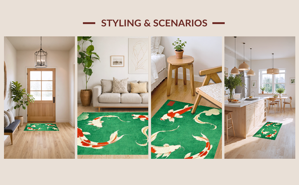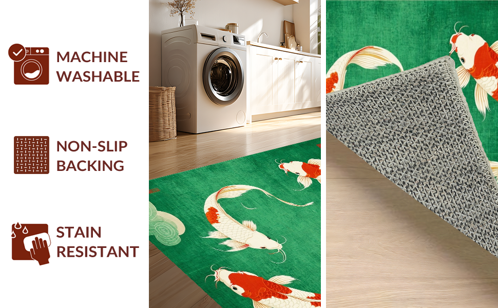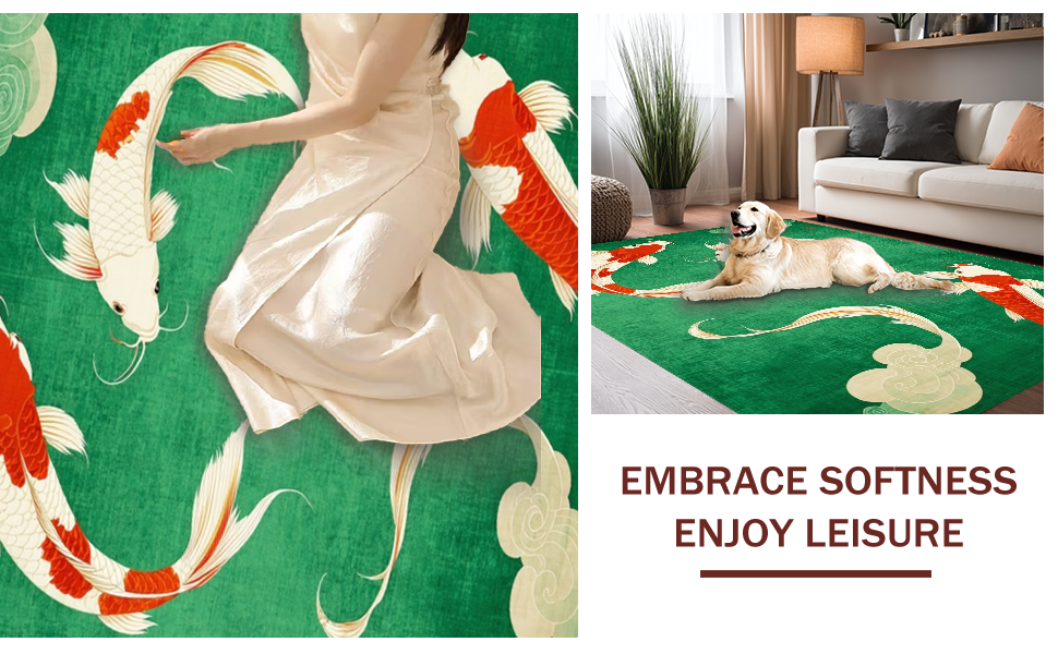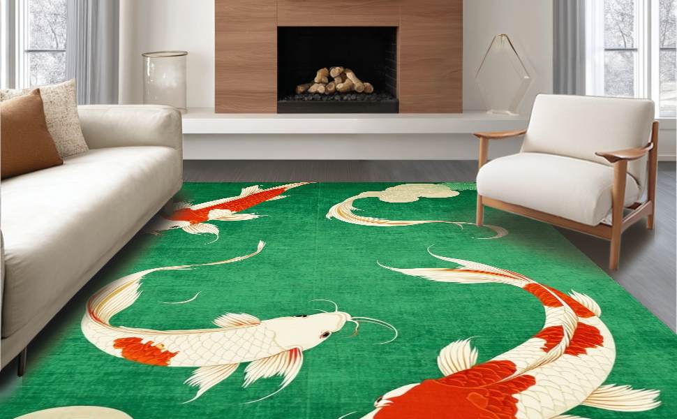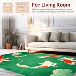 Ultra Soft Area Rug, Non Slip, Stain Resistant, Washable Area Rugs for Living Room, Bedroom, Cozy Contemporary Koi Style(Green) Overview: