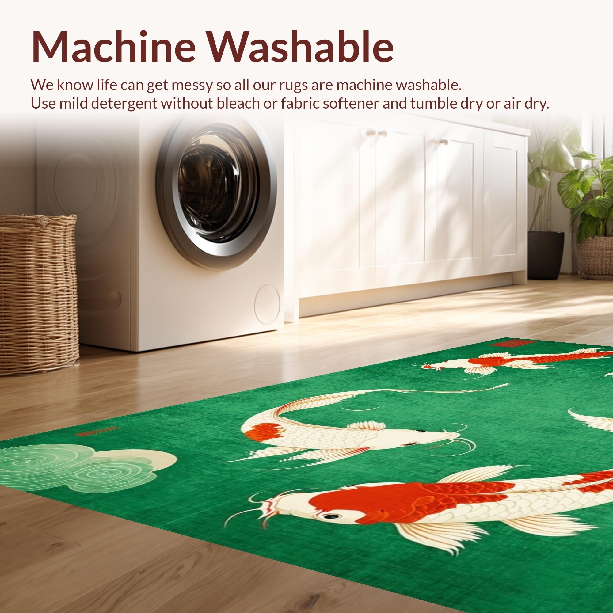 - Machine Washable: Our rugs can be easily thrown in the wash machine.