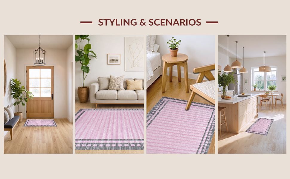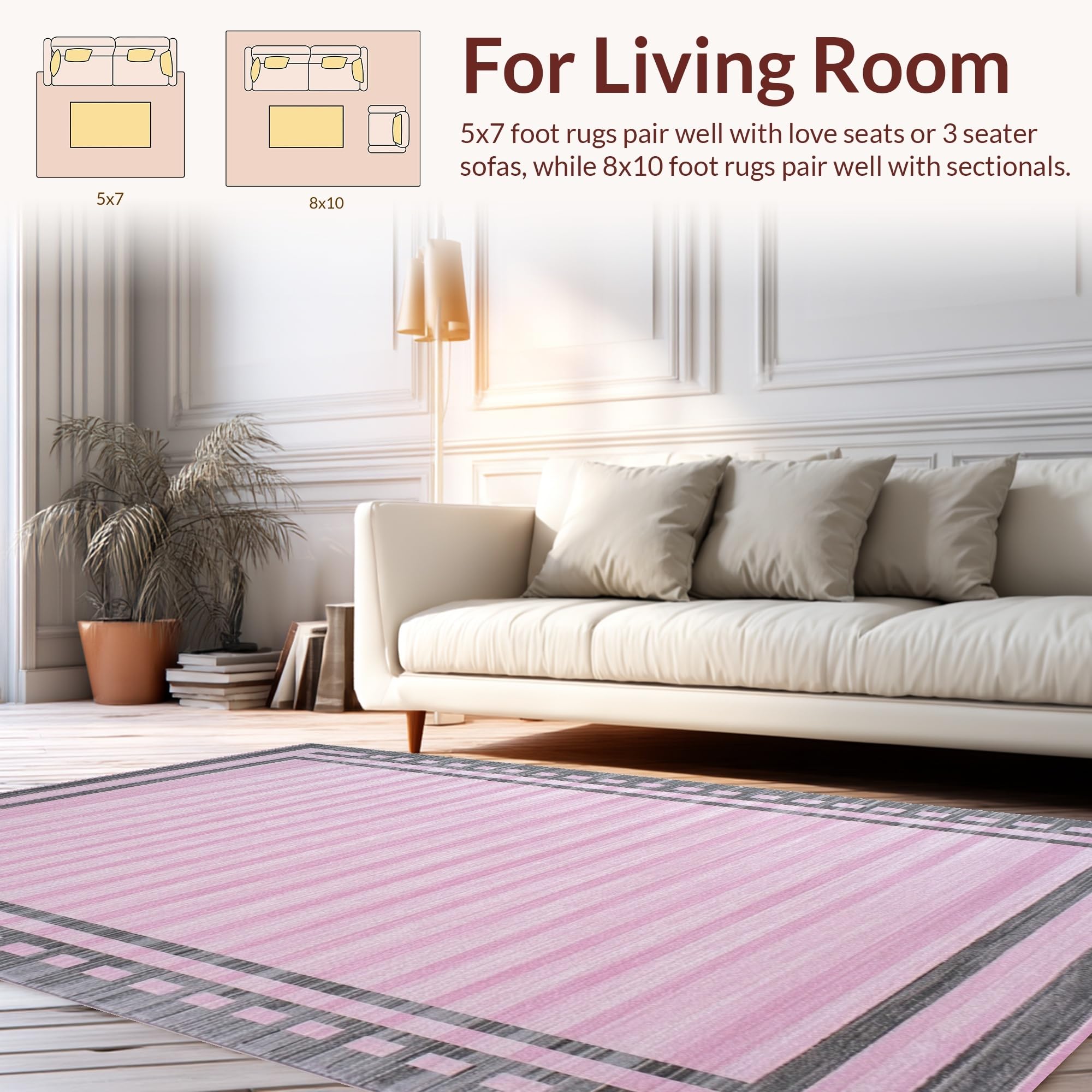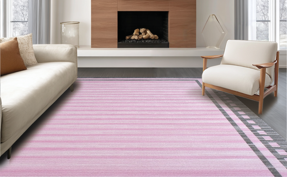 Ultra Soft Area Rug, Non Slip, Stain Resistant, Washable Area Rugs for Living Room, Bedroom, Cozy Contemporary Patterned Vision(Pink) Overview: