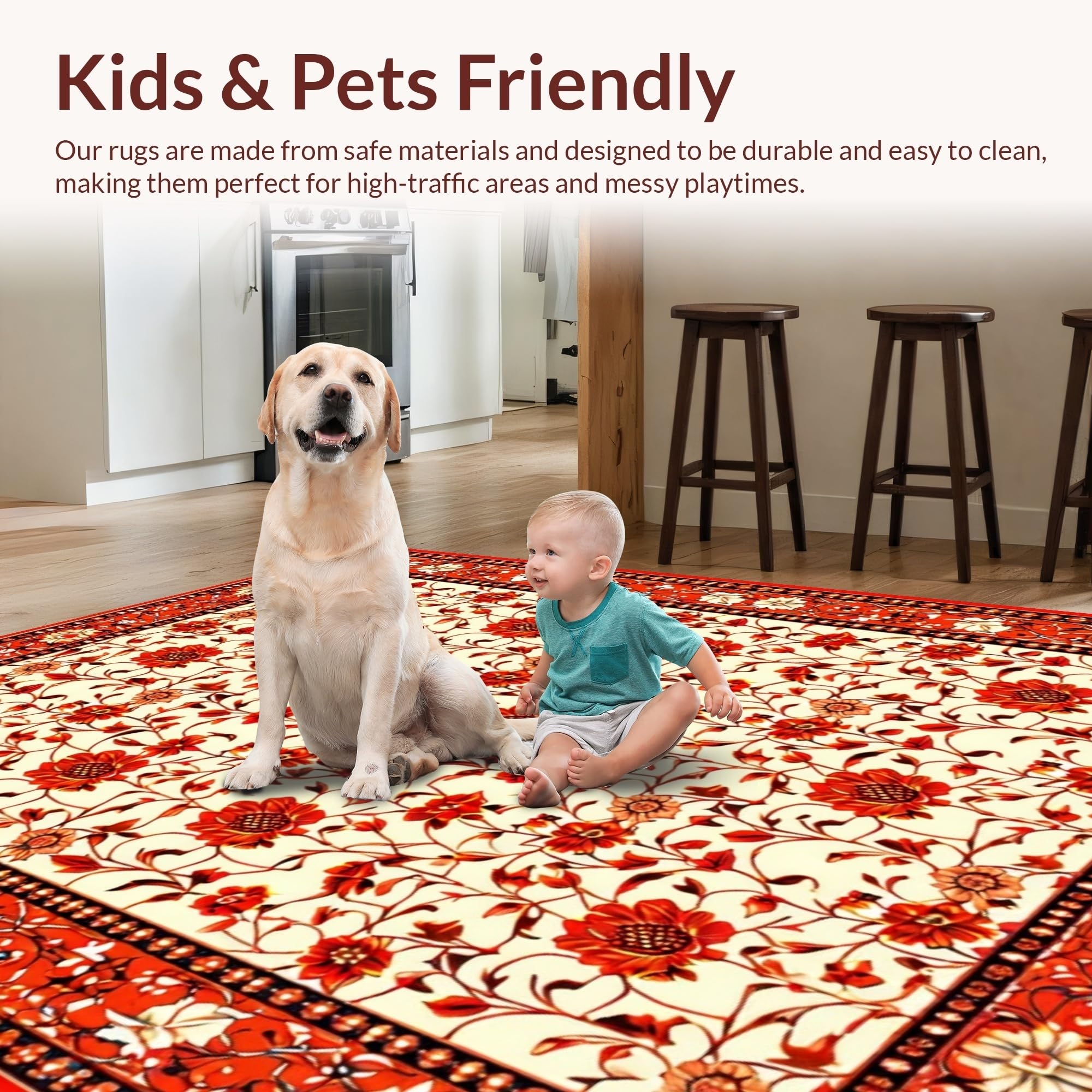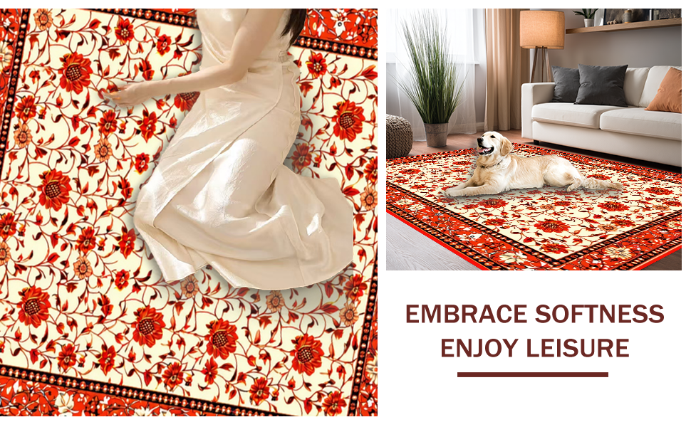 Ultra Soft Area Rug, Non Slip, Stain Resistant, Washable Area Rugs for Living Room, Bedroom, Cozy Cottage Garden Vibe(Beige) Overview: