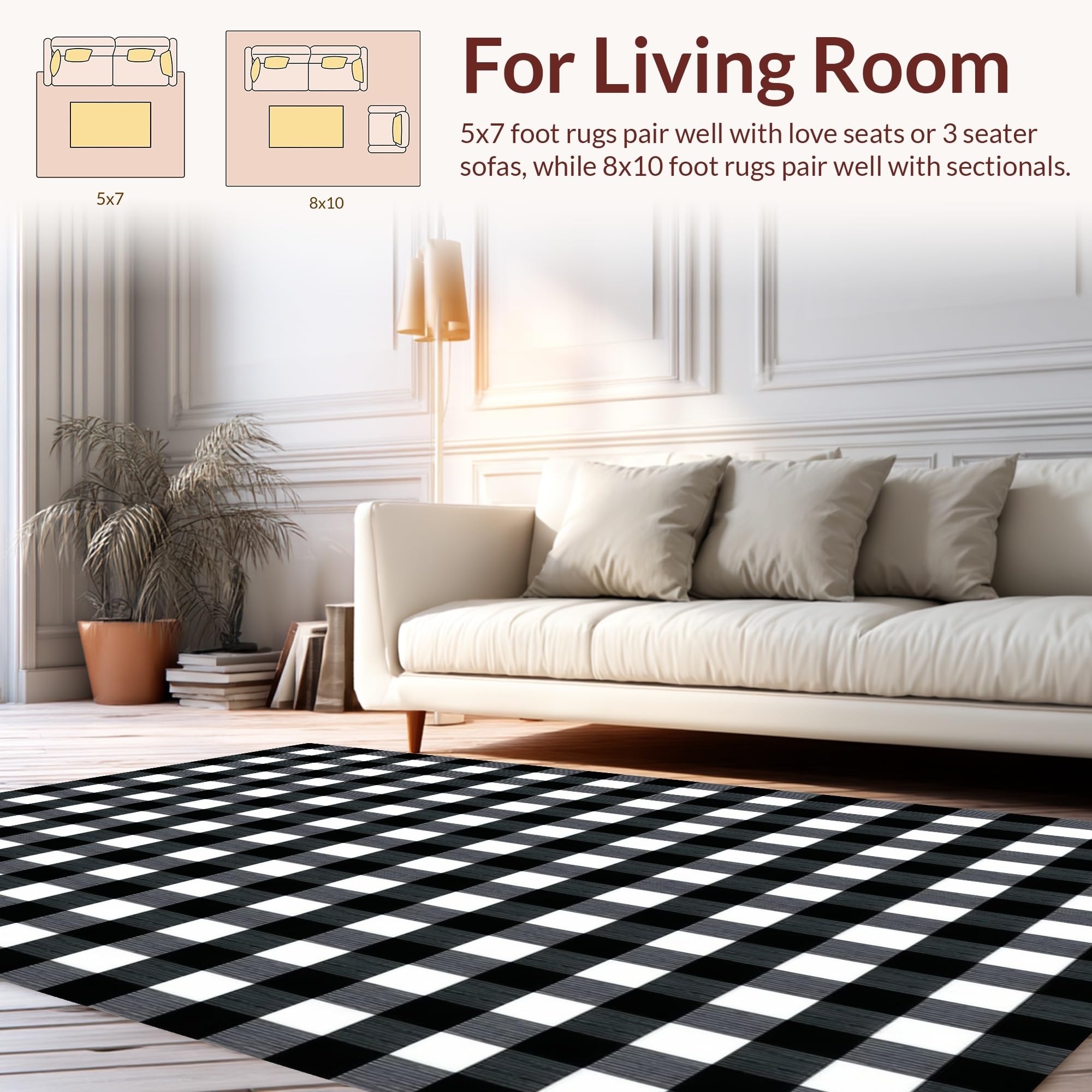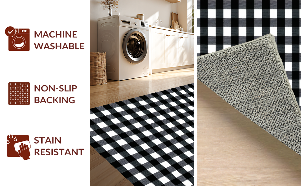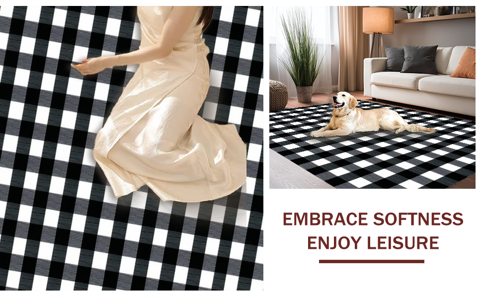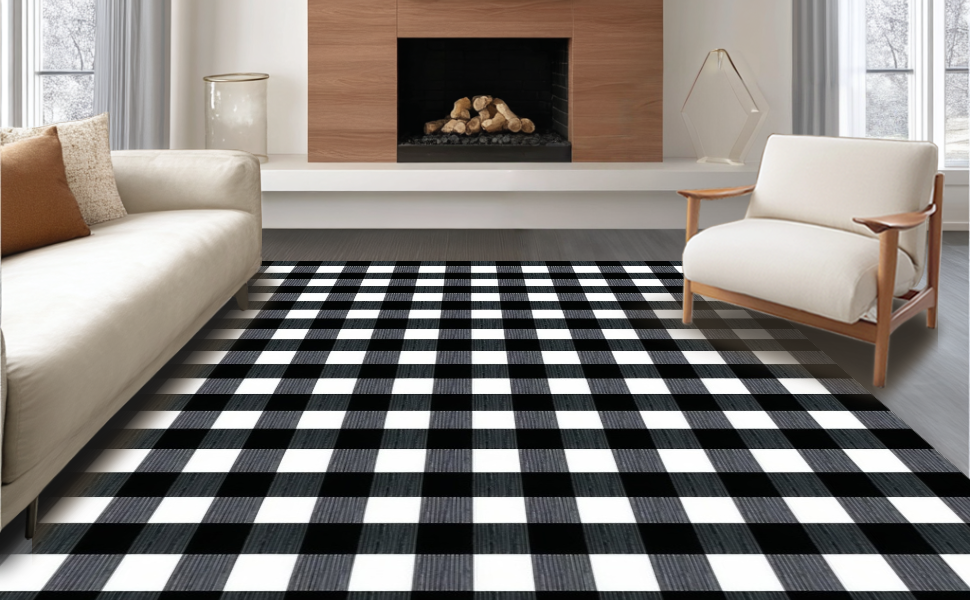 Ultra Soft Area Rug, Non Slip, Stain Resistant, Washable Area Rugs for Living Room, Bedroom, Cozy Cottage Style Plaid Print(Black) Overview: