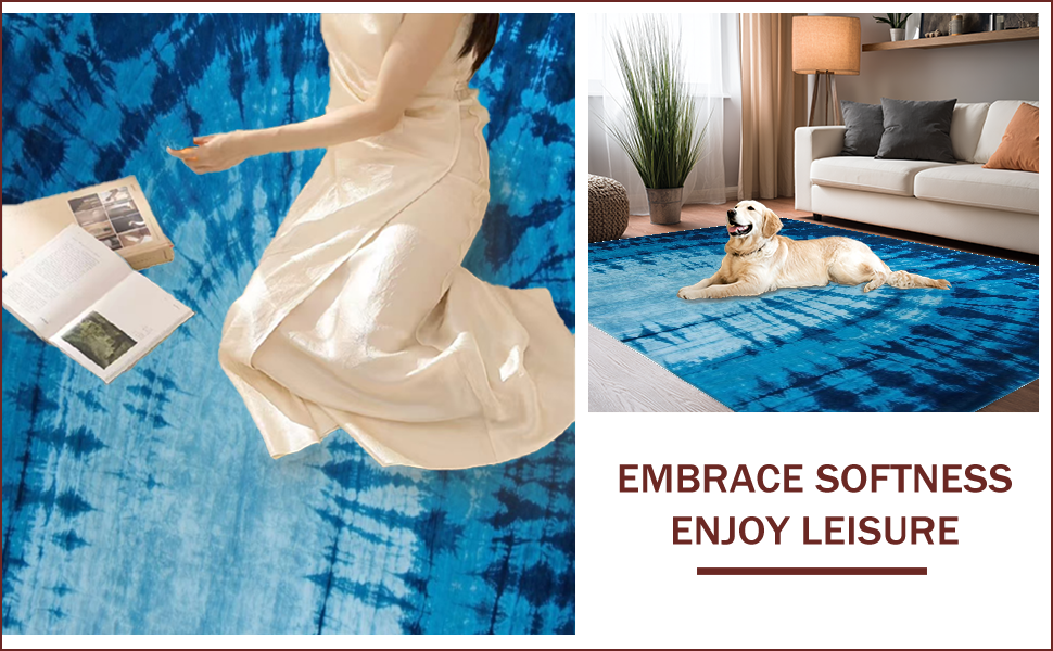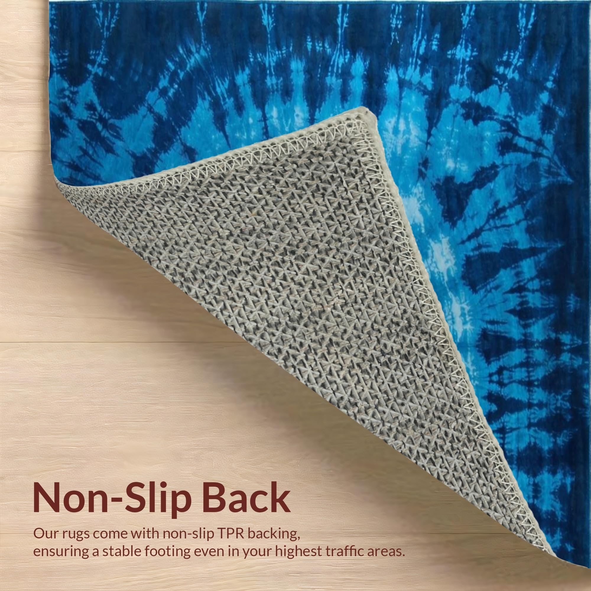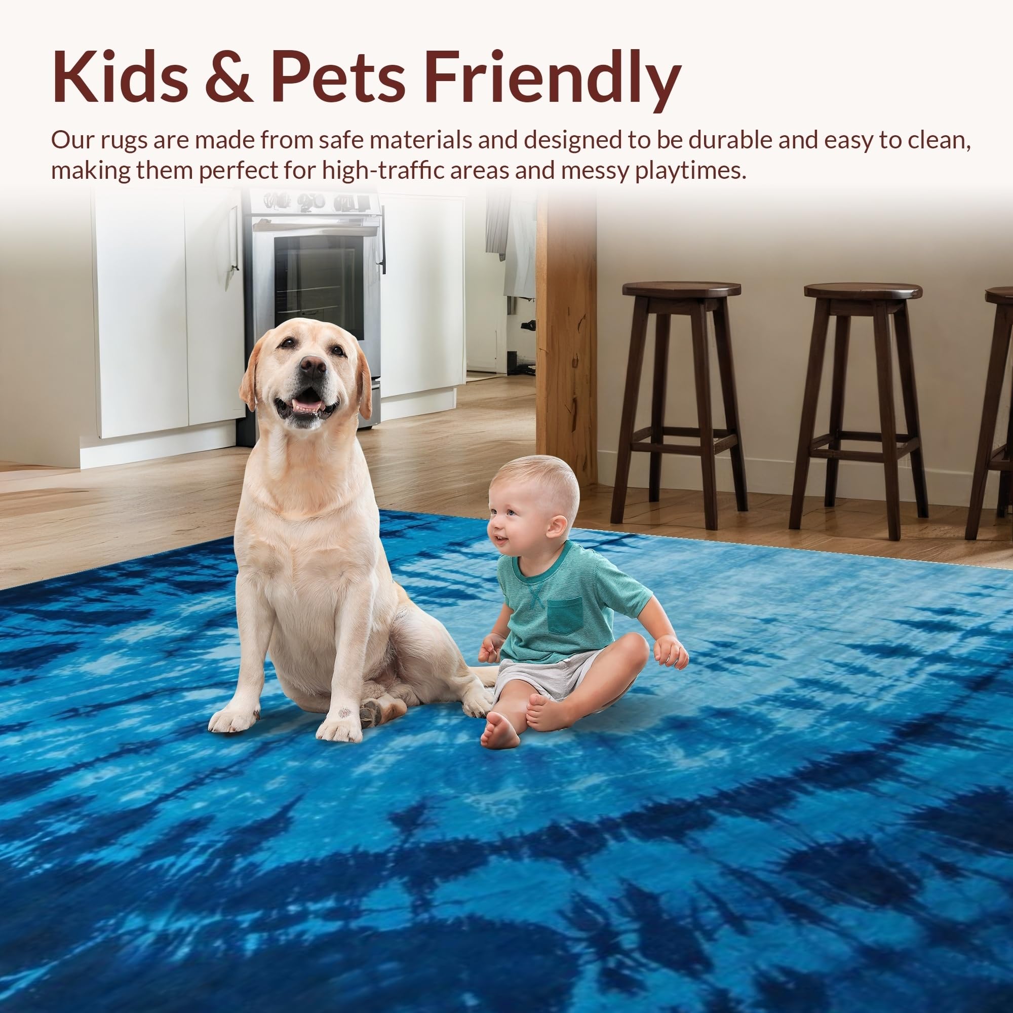 Ultra Soft Area Rug, Non Slip, Stain Resistant, Washable Area Rugs for Living Room, Bedroom, Cozy Dark Blue Abstract Motif(Blue) Overview: