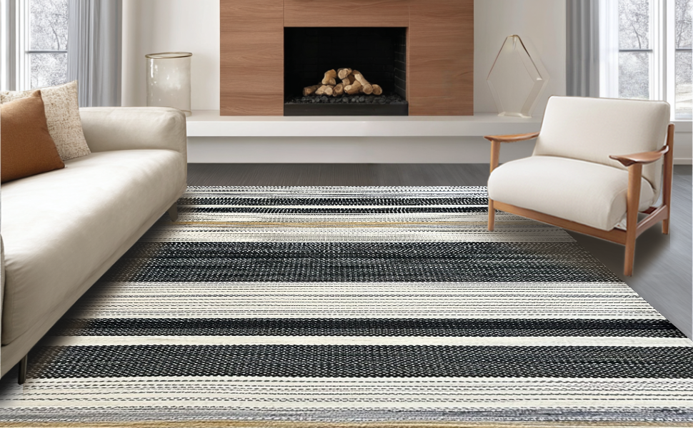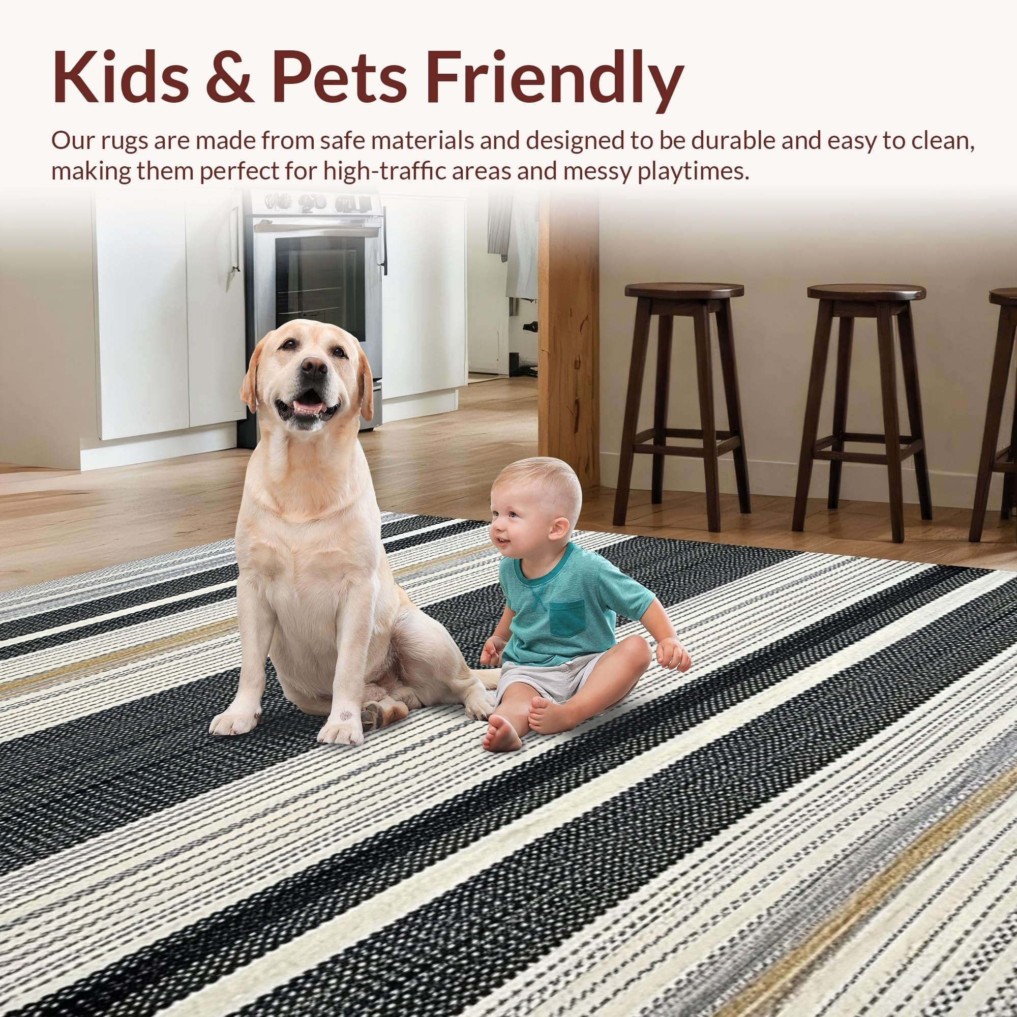 Ultra Soft Area Rug, Non Slip, Stain Resistant, Washable Area Rugs for Living Room, Bedroom, Cozy Distressed Black and Beige Style(Black) Overview: