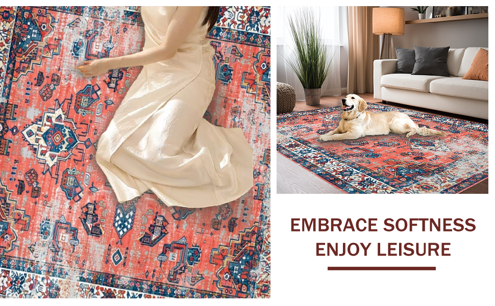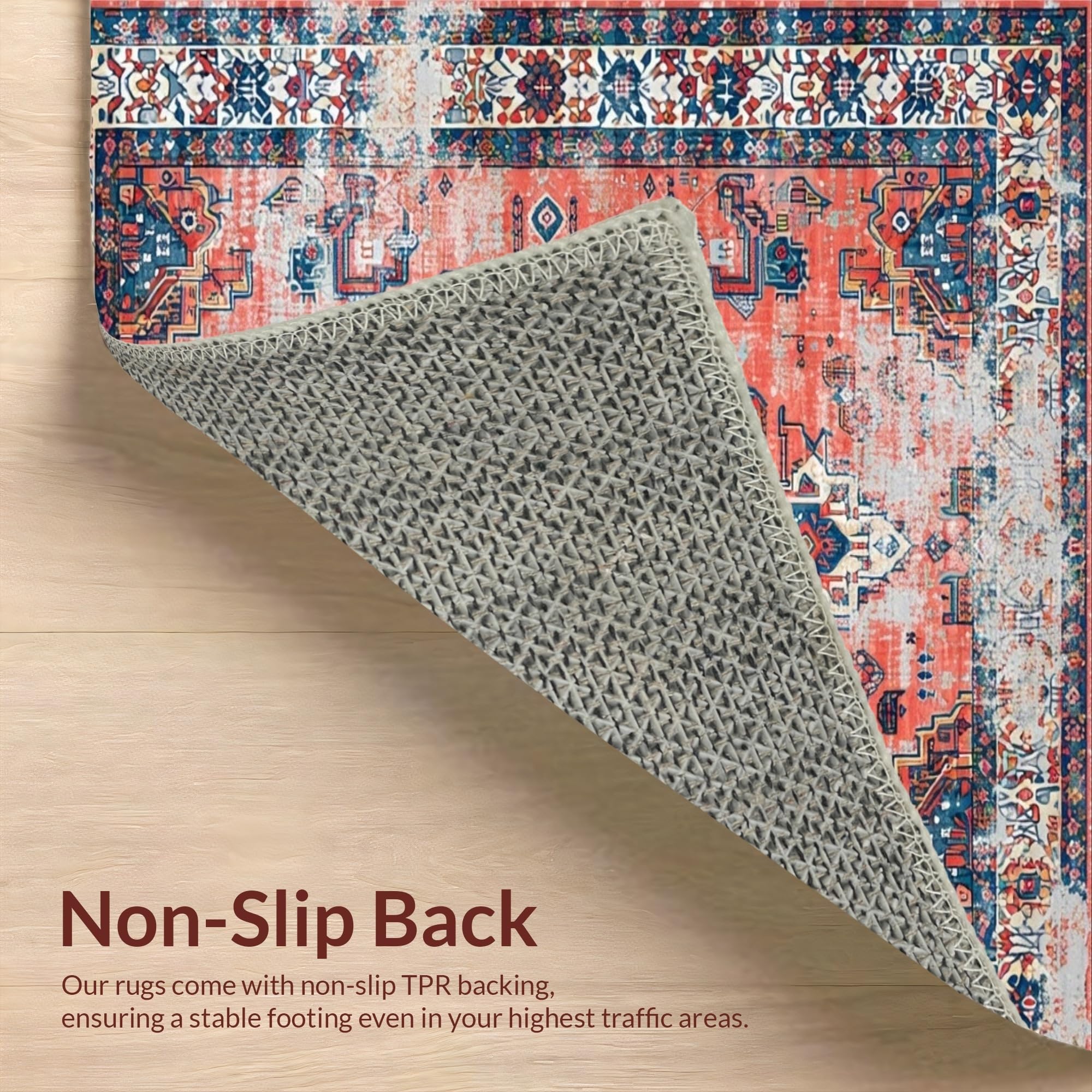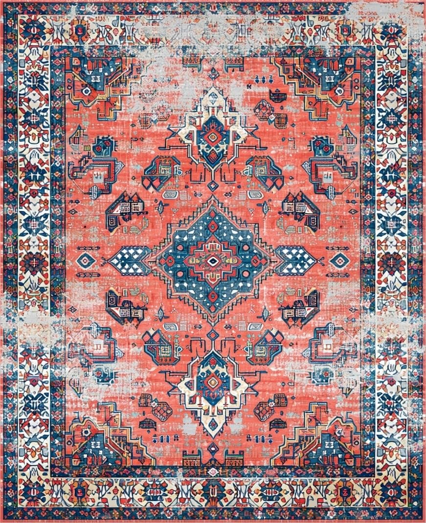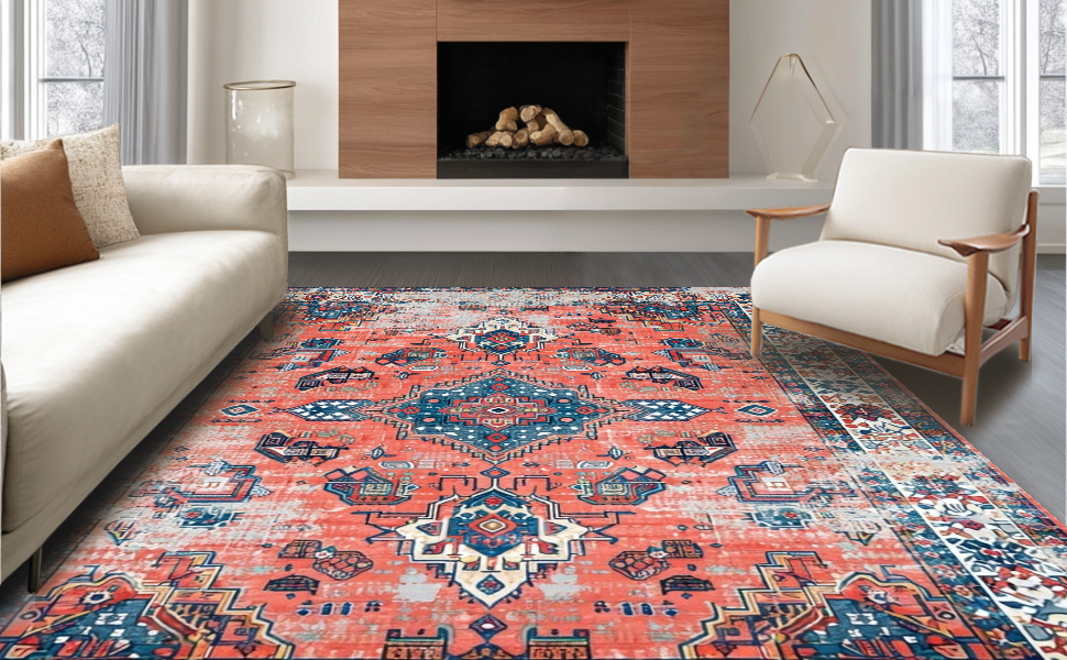 Ultra Soft Area Rug, Non Slip, Stain Resistant, Washable Area Rugs for Living Room, Bedroom, Cozy Distressed Diamond Arrangement(Red) Overview: