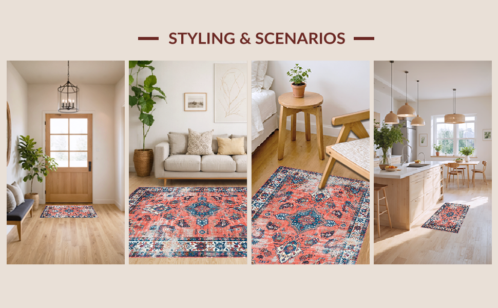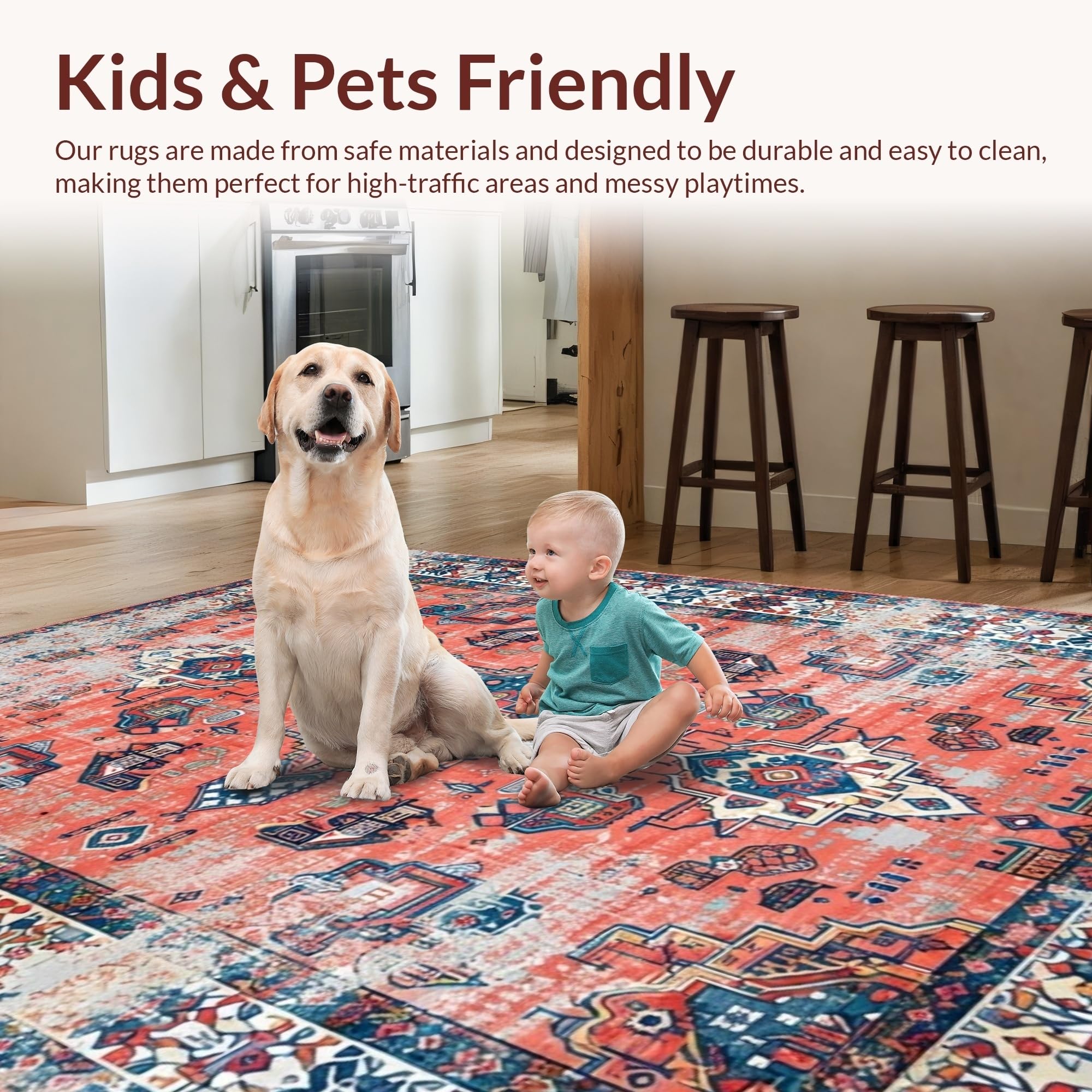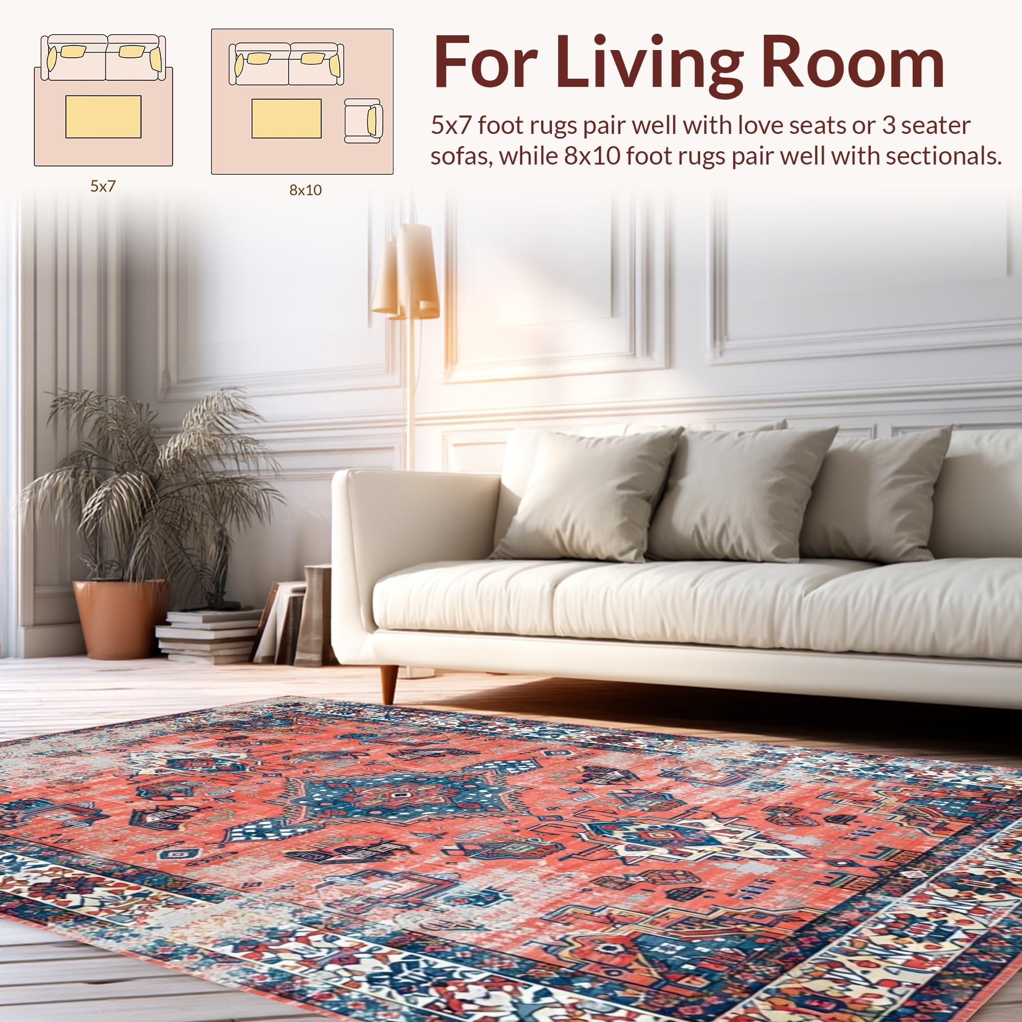 Ultra Soft Area Rug, Non Slip, Stain Resistant, Washable Area Rugs for Living Room, Bedroom, Cozy Distressed Diamond Arrangement(Red) Overview: