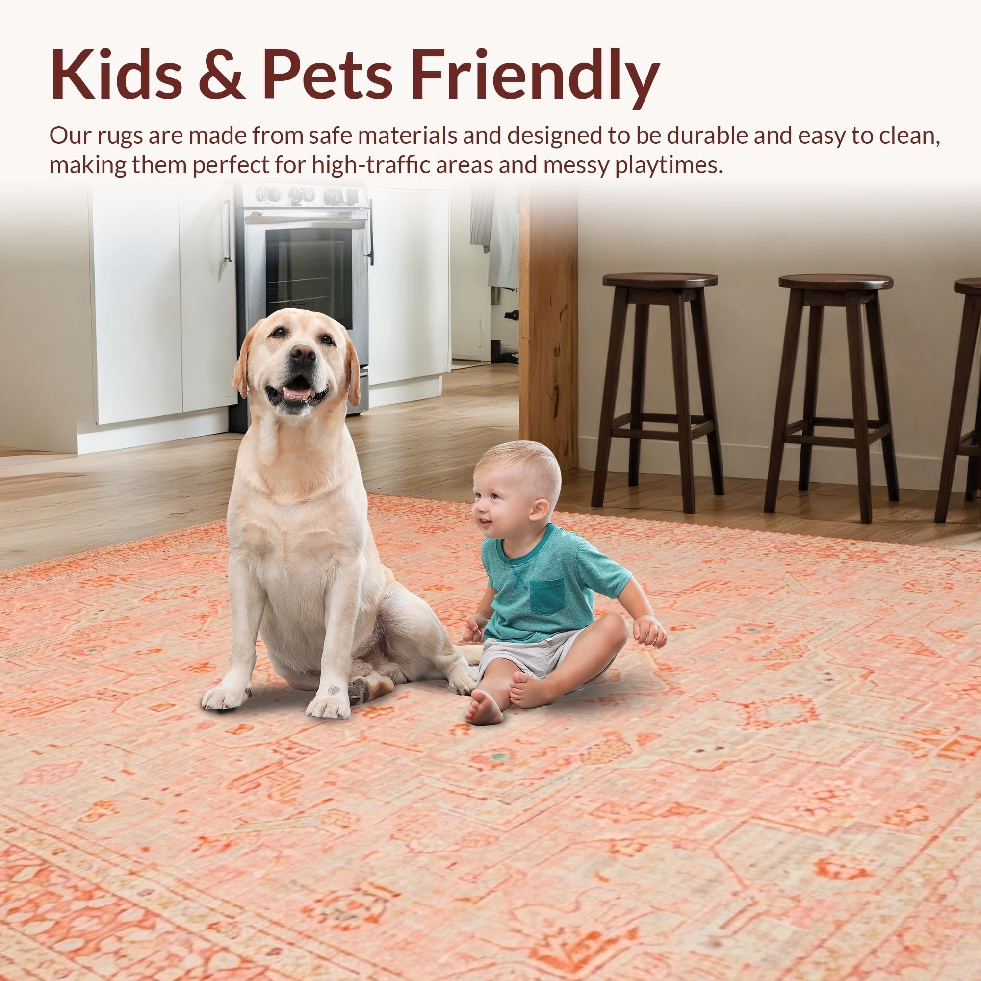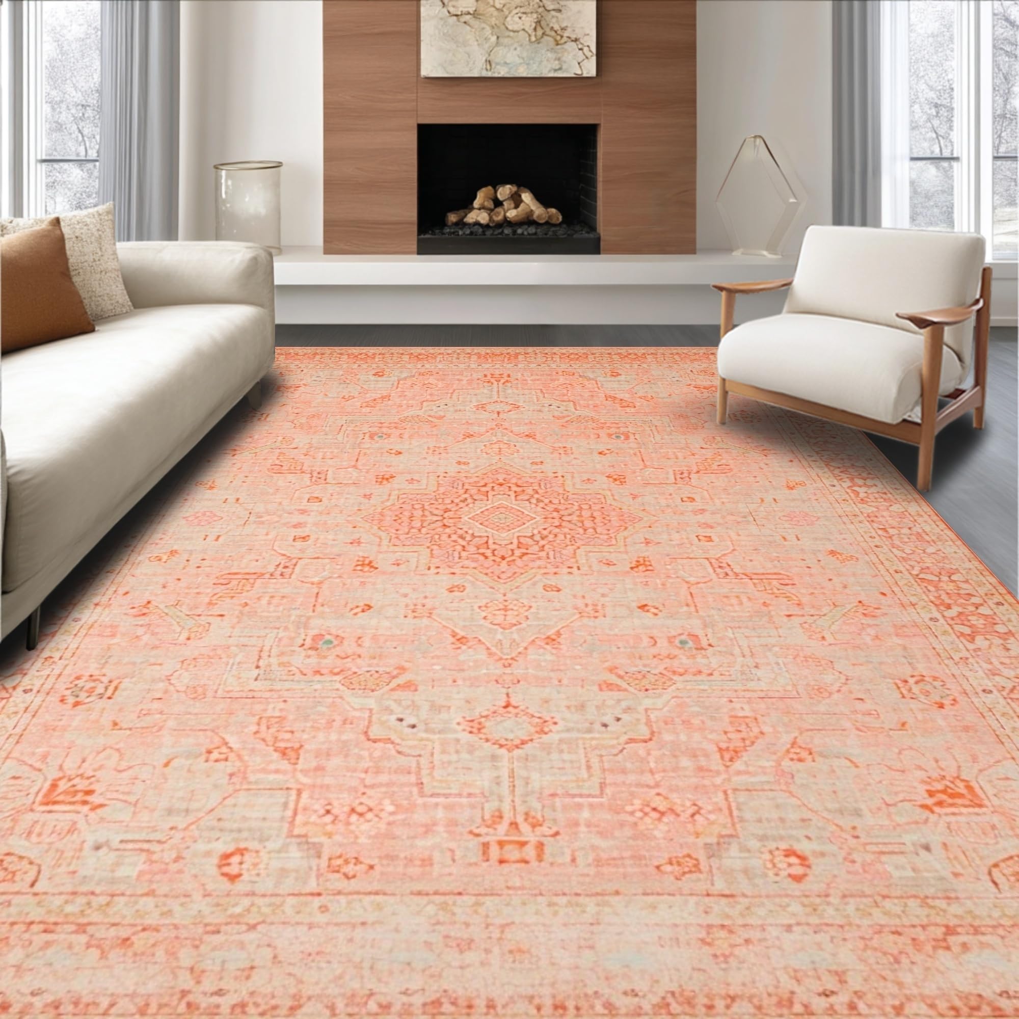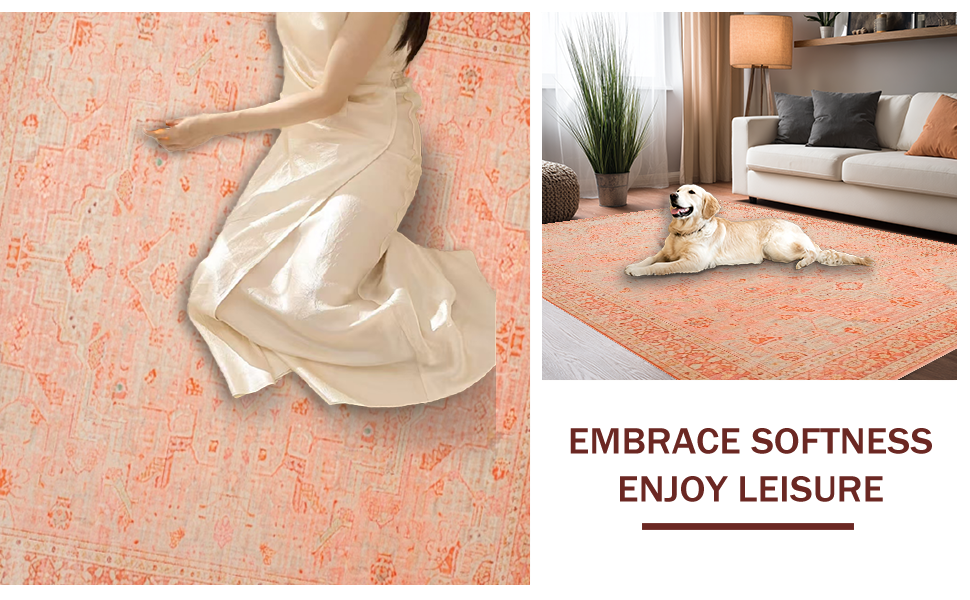 Ultra Soft Area Rug, Non Slip, Stain Resistant, Washable Area Rugs for Living Room, Bedroom, Cozy Distressed Vintage Charm(Pink) Overview: