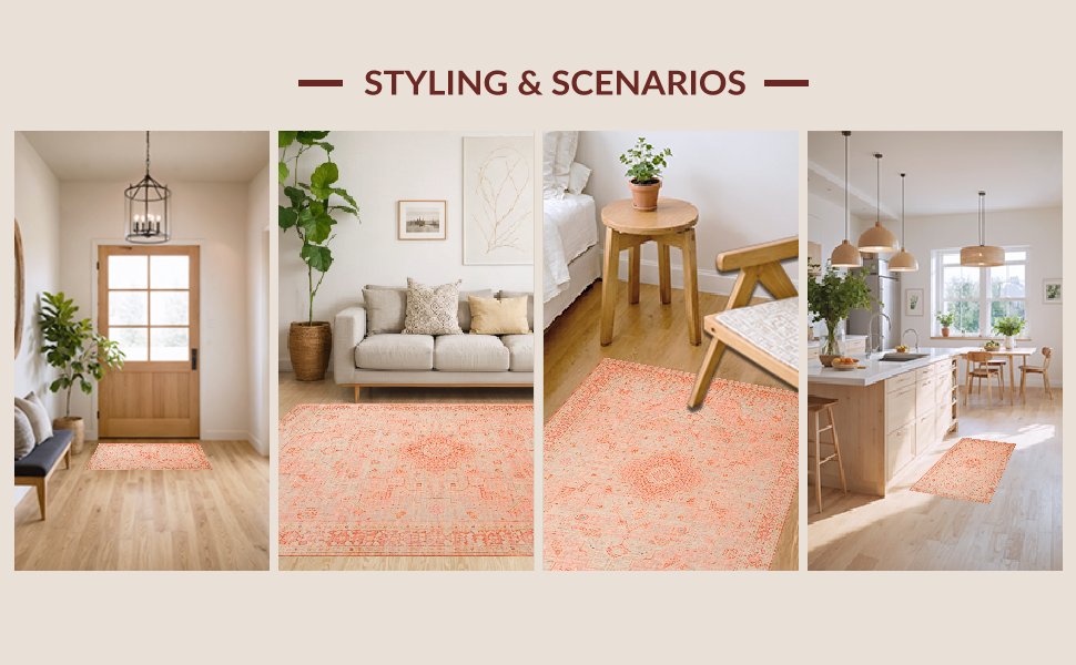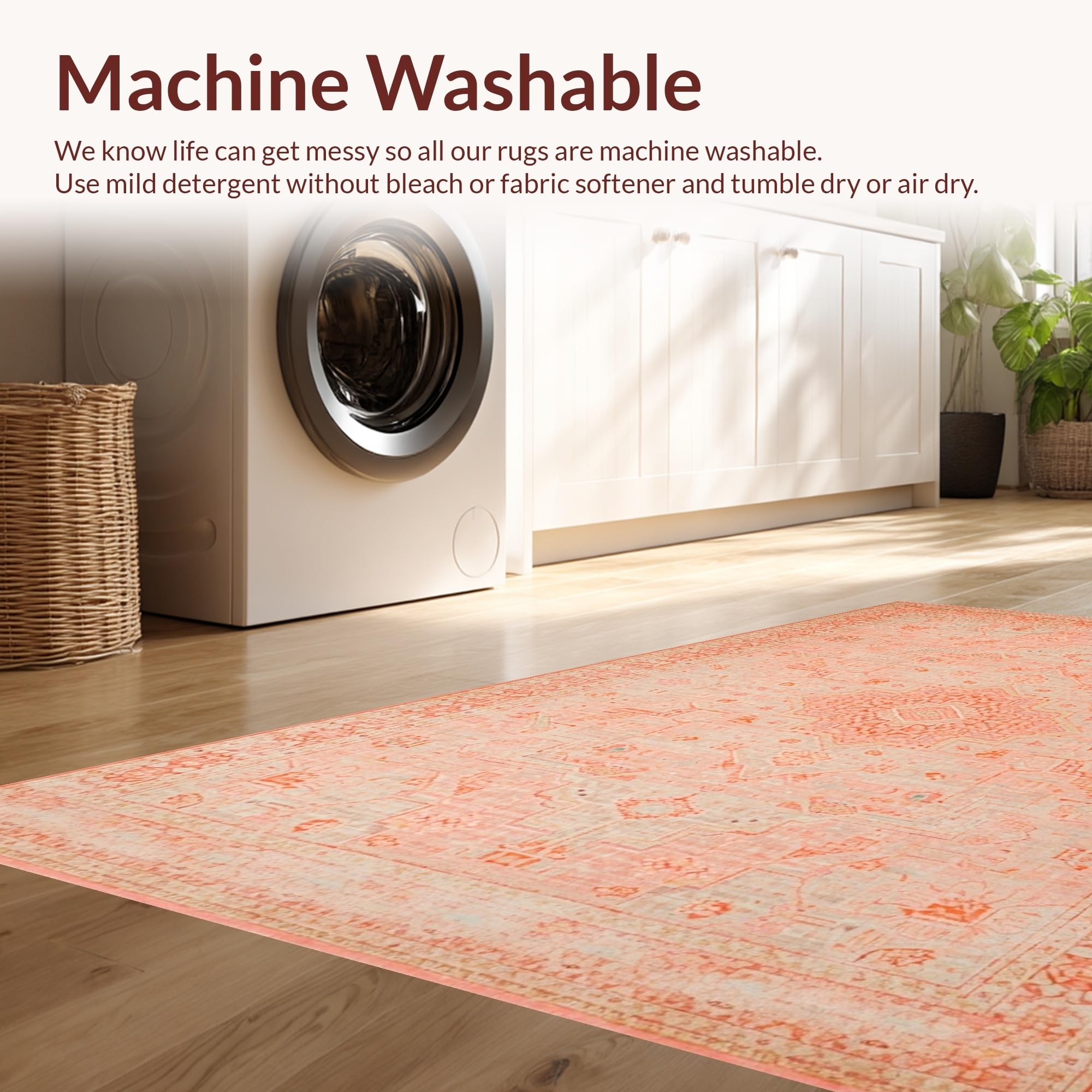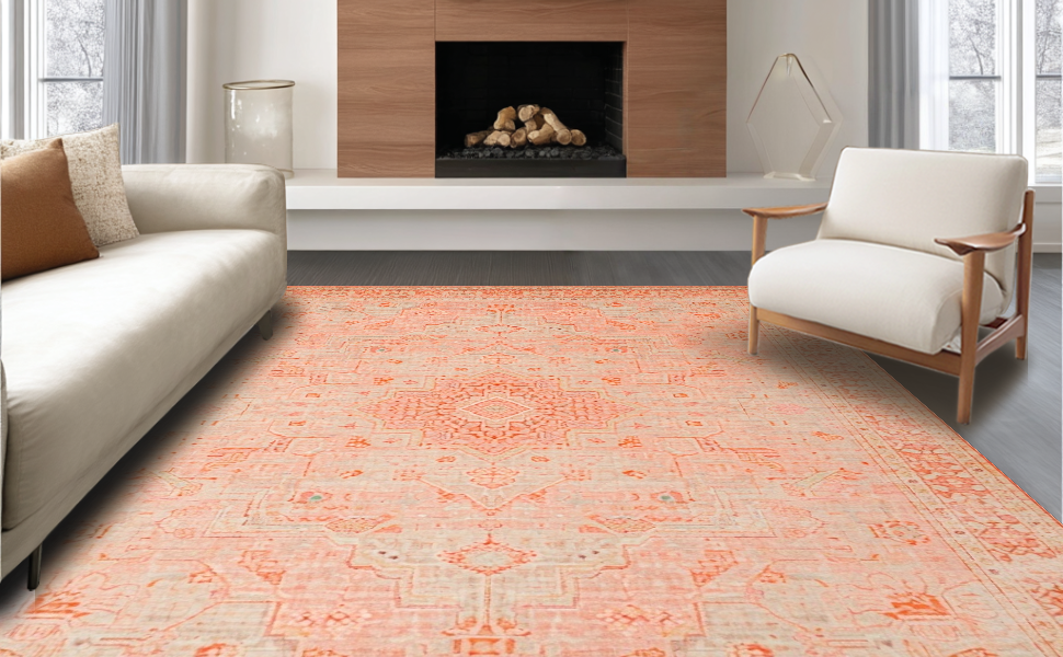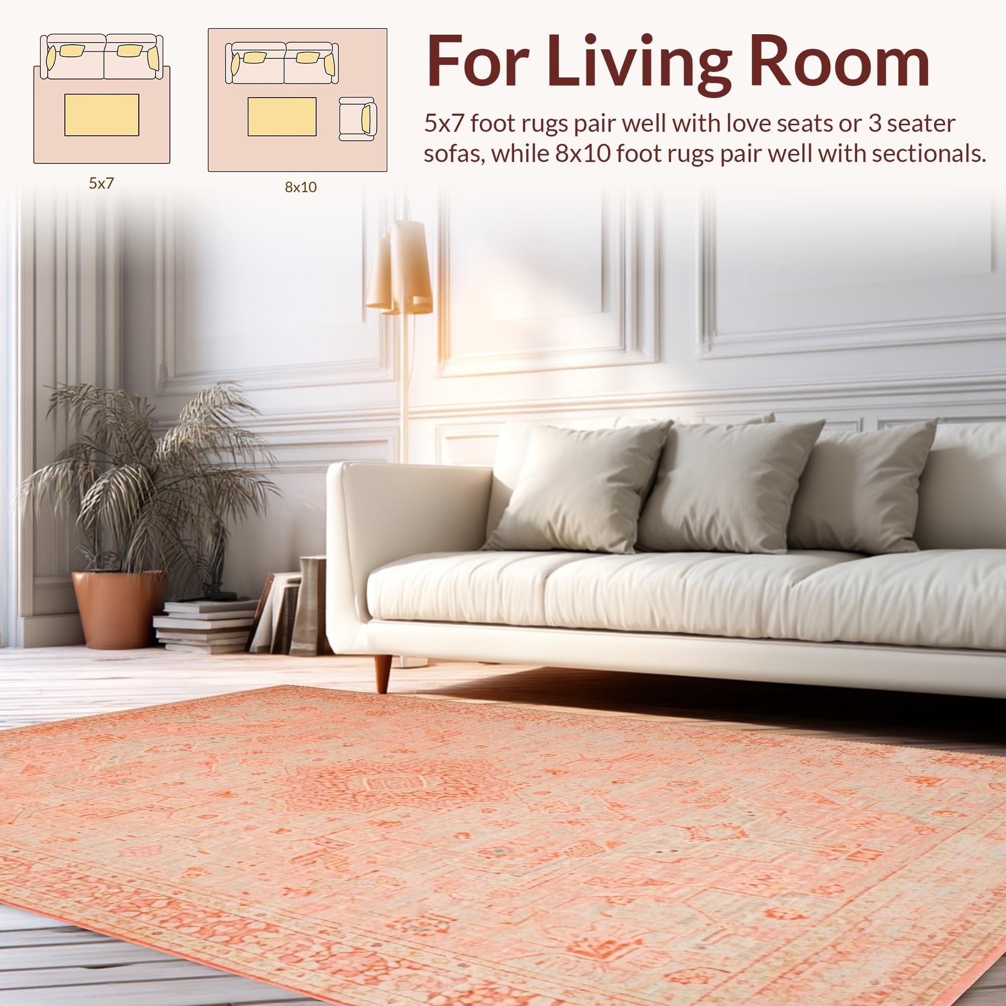 Ultra Soft Area Rug, Non Slip, Stain Resistant, Washable Area Rugs for Living Room, Bedroom, Cozy Distressed Vintage Charm(Pink) Overview: