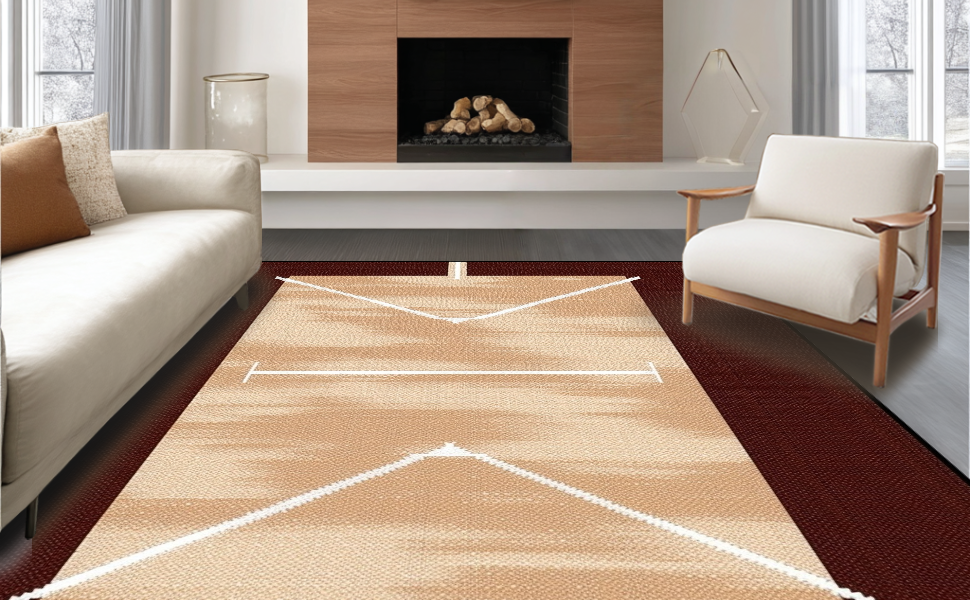 Ultra Soft Area Rug, Non Slip, Stain Resistant, Washable Area Rugs for Living Room, Bedroom, Cozy Earthy Baseball Theme(Beige) Overview: