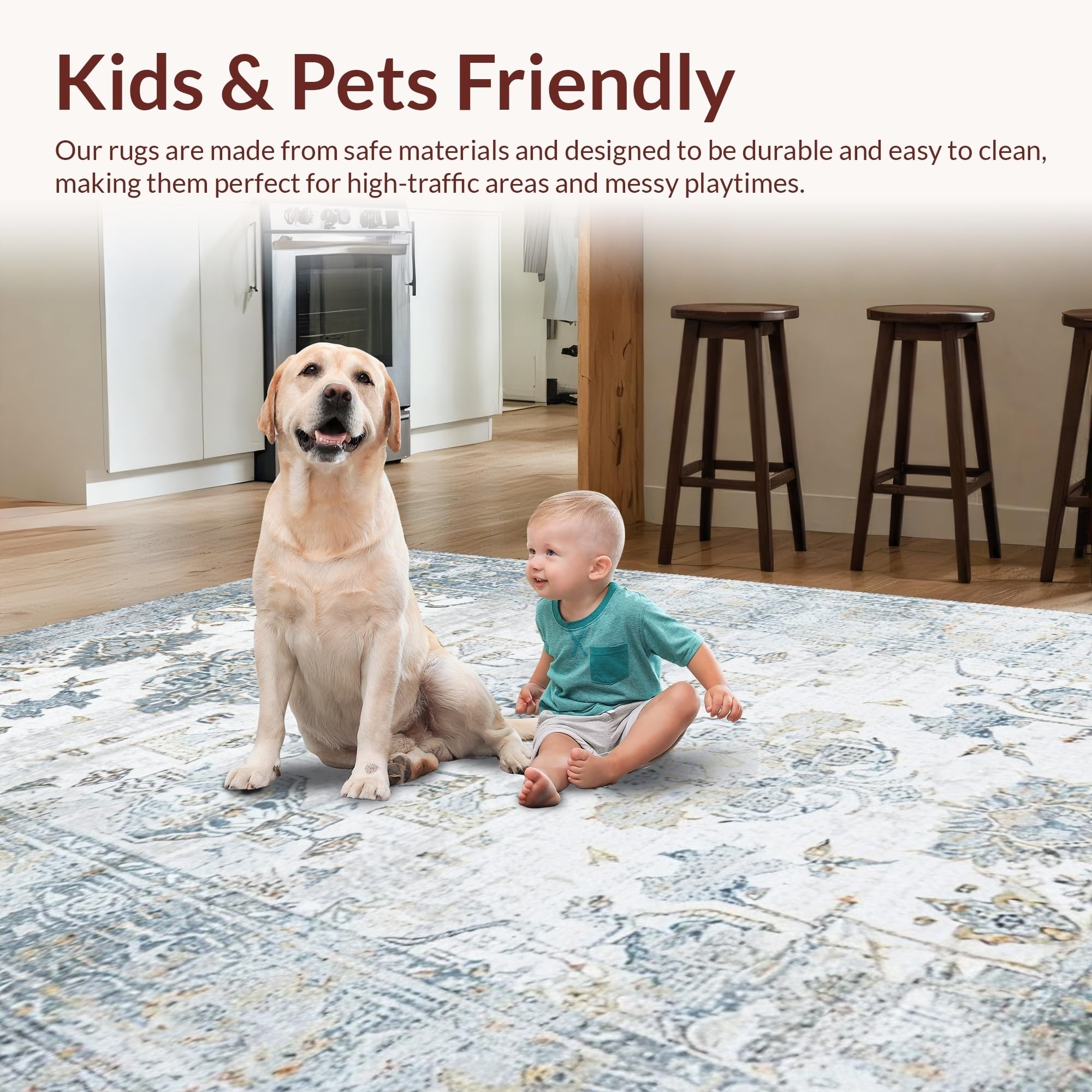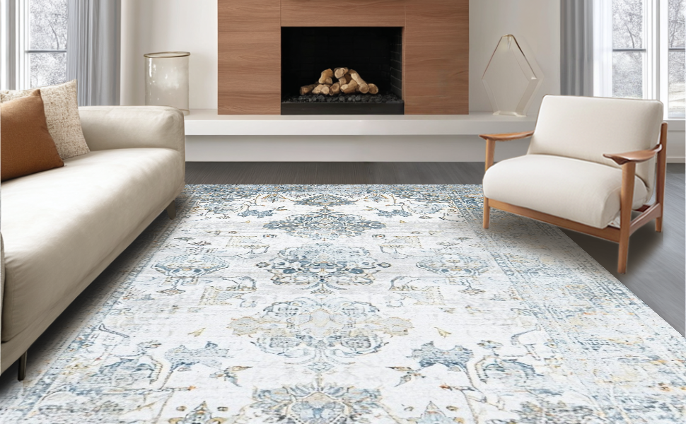 Ultra Soft Area Rug, Non Slip, Stain Resistant, Washable Area Rugs for Living Room, Bedroom, Cozy Earthy Geometric Style(Gray) Overview: