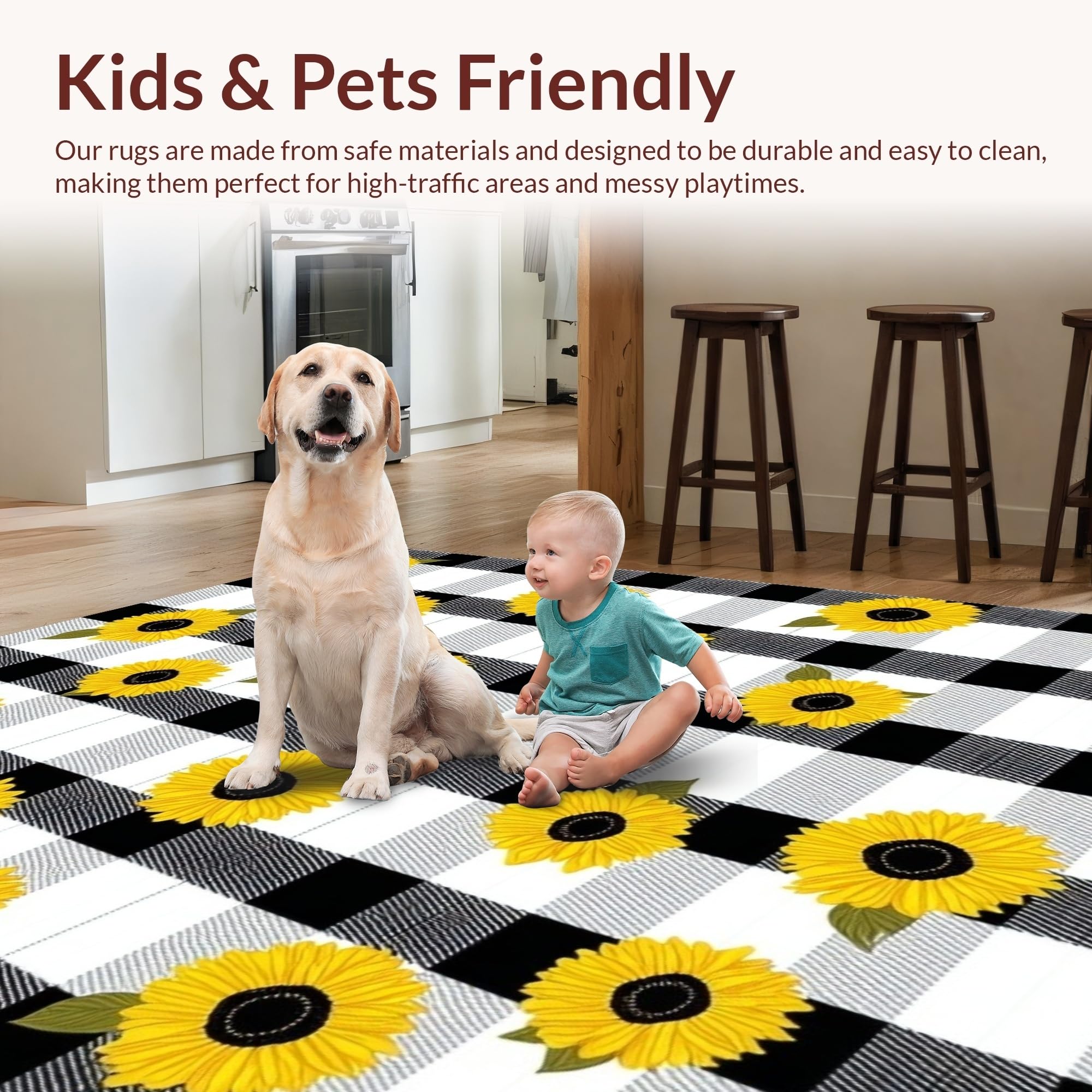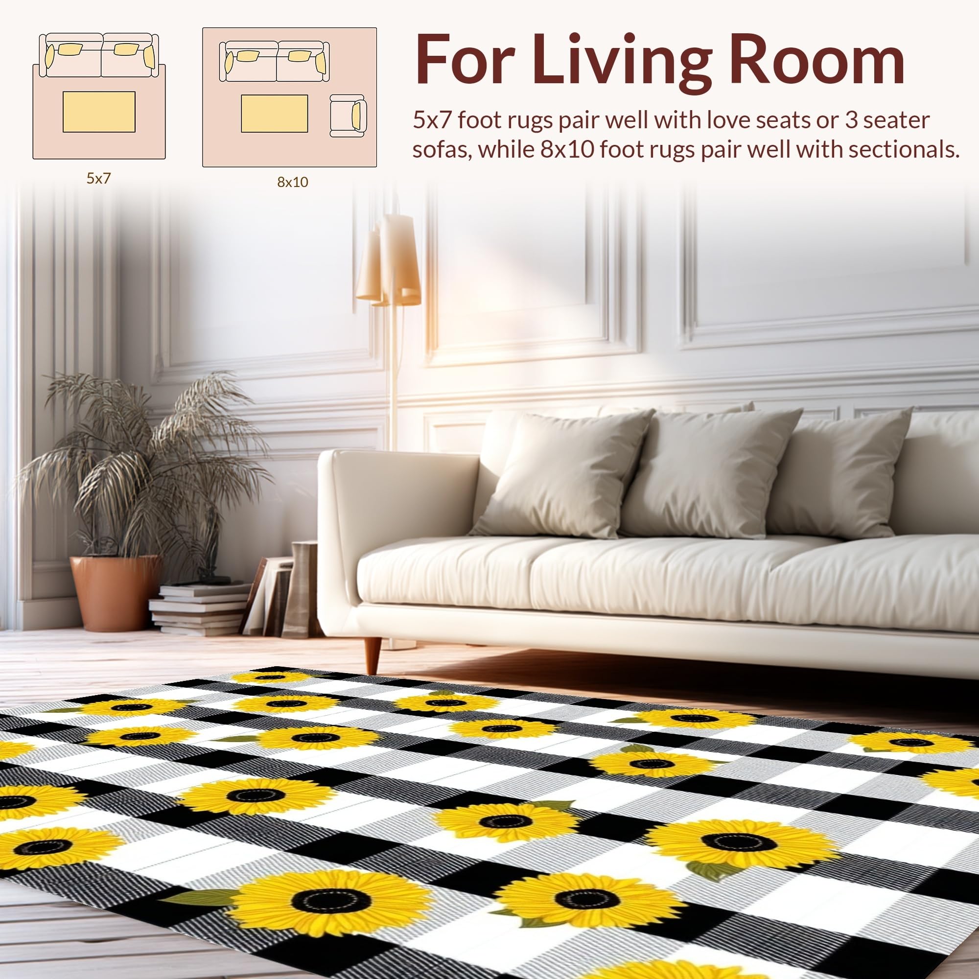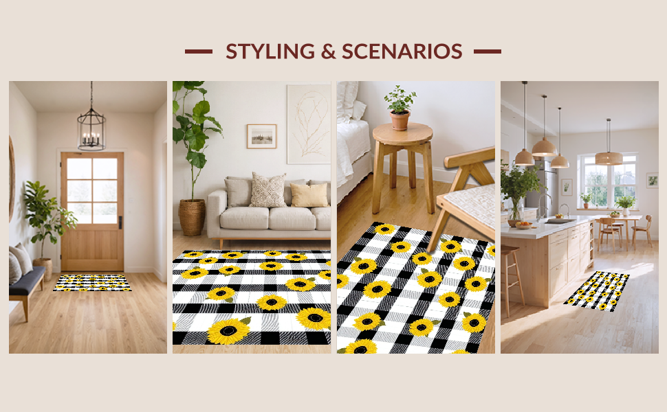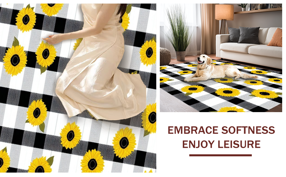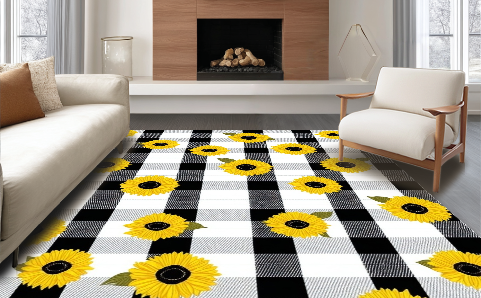 Ultra Soft Area Rug, Non Slip, Stain Resistant, Washable Area Rugs for Living Room, Bedroom, Cozy Earthy Plaid Aesthetic(Black) Overview: