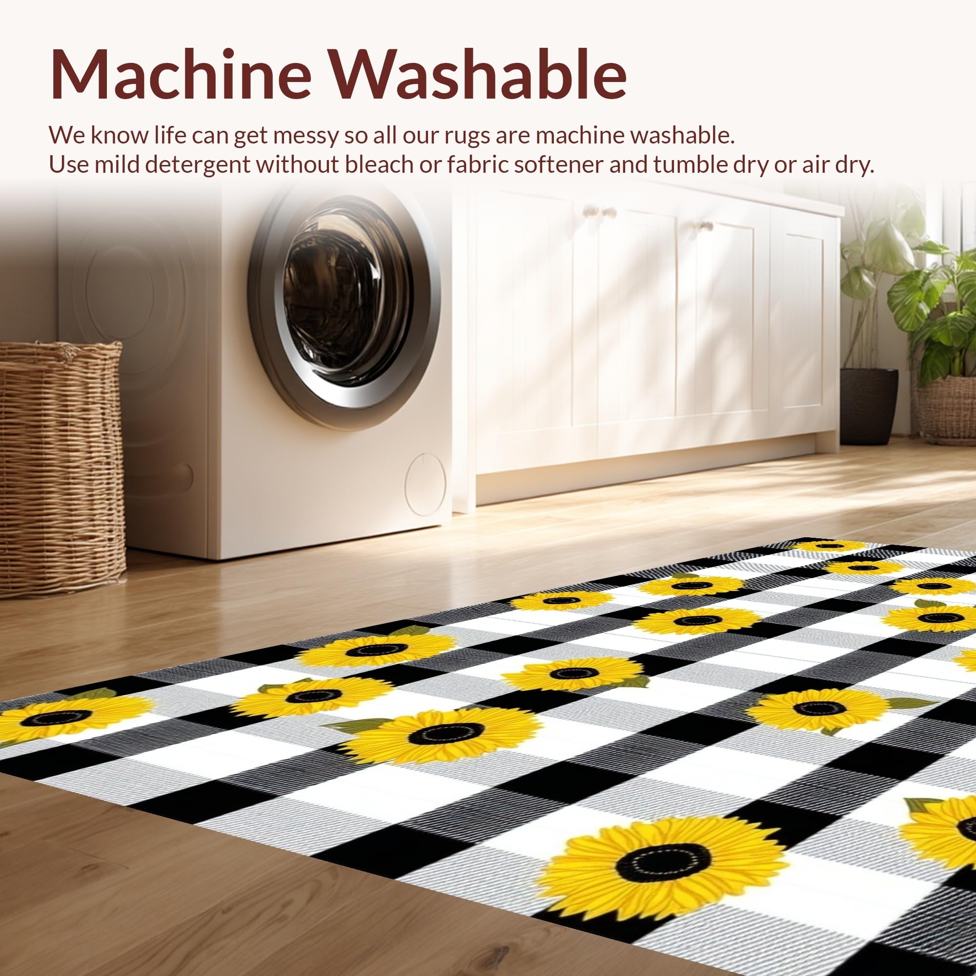 - Machine Washable: Our rugs can be easily thrown in the wash machine.