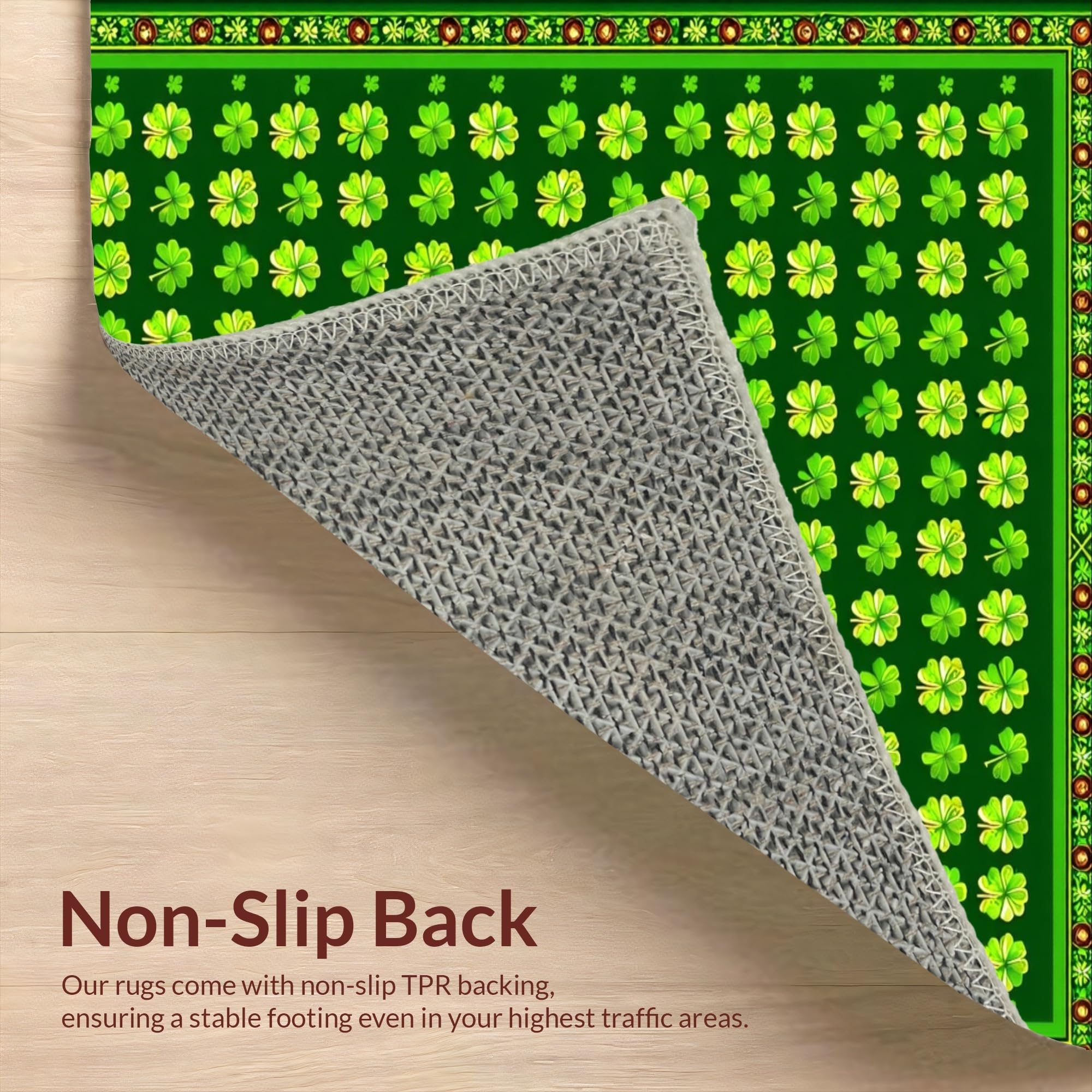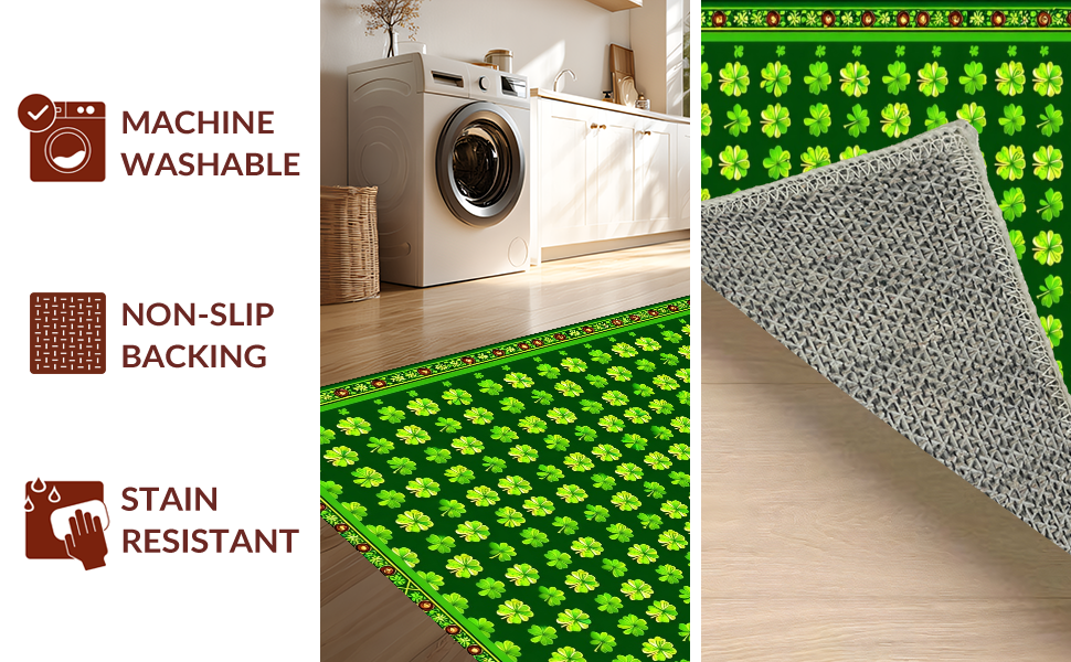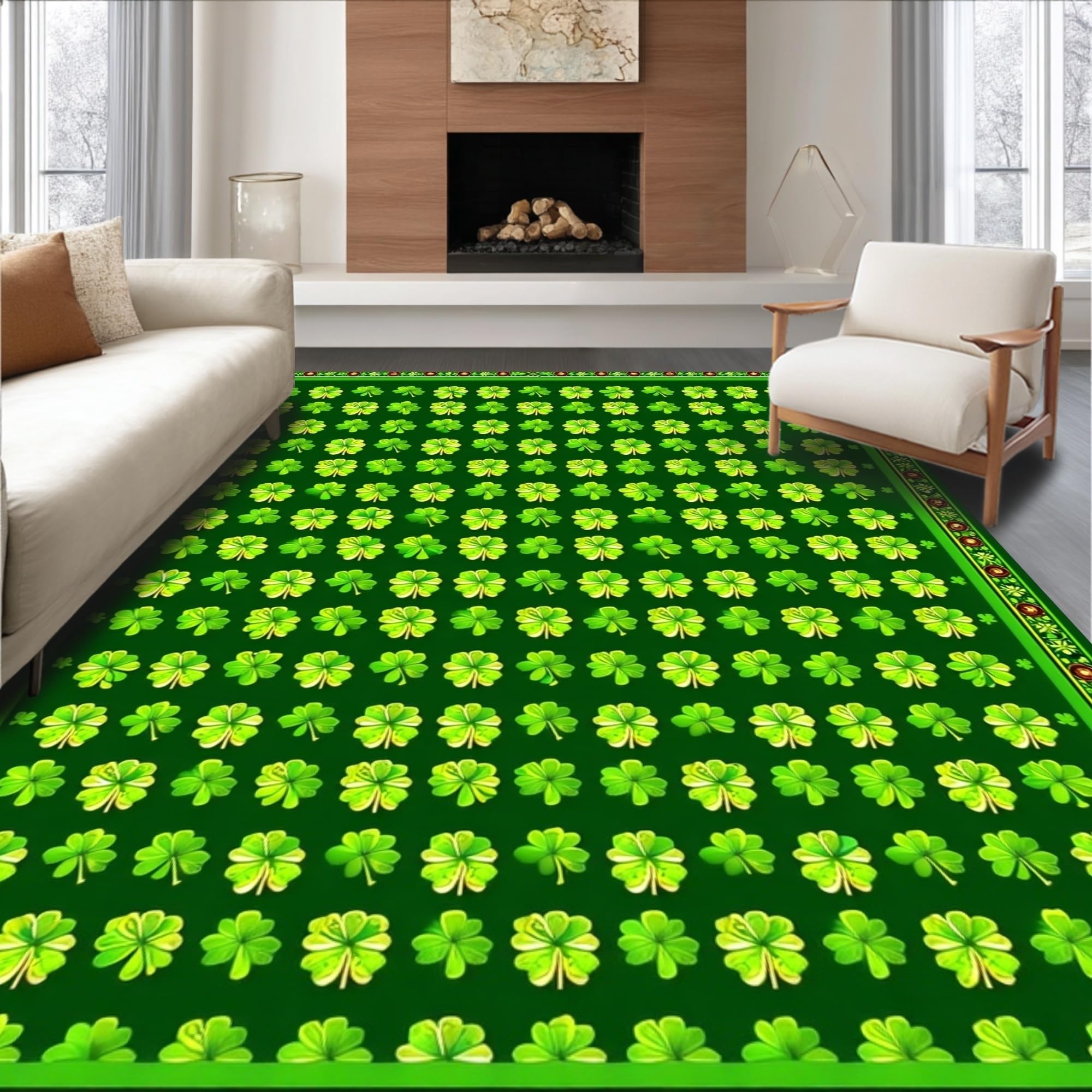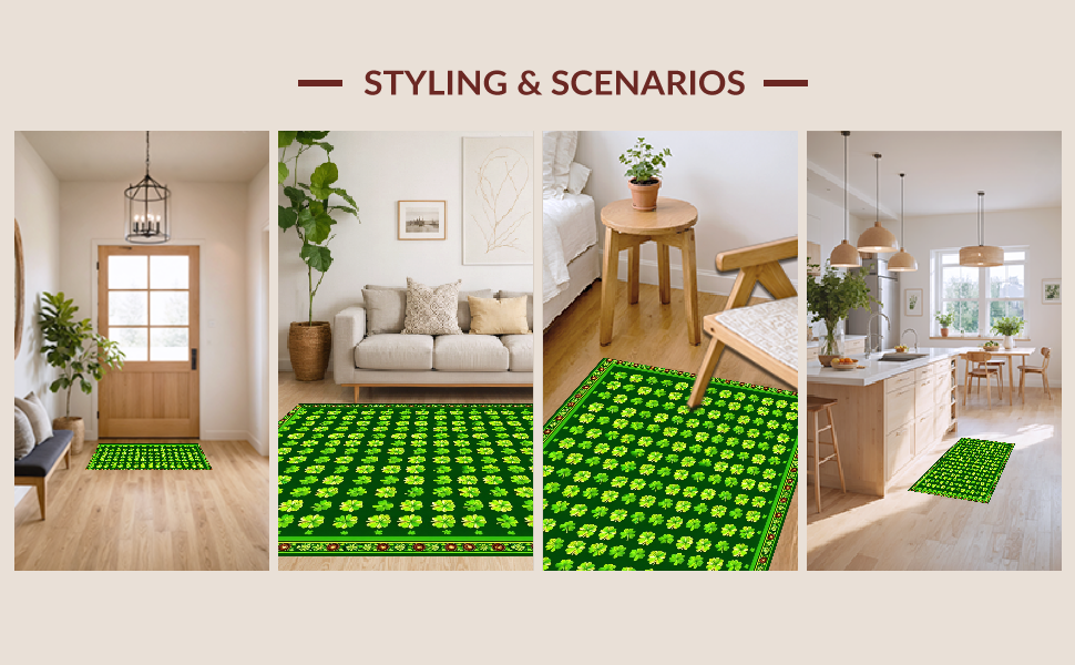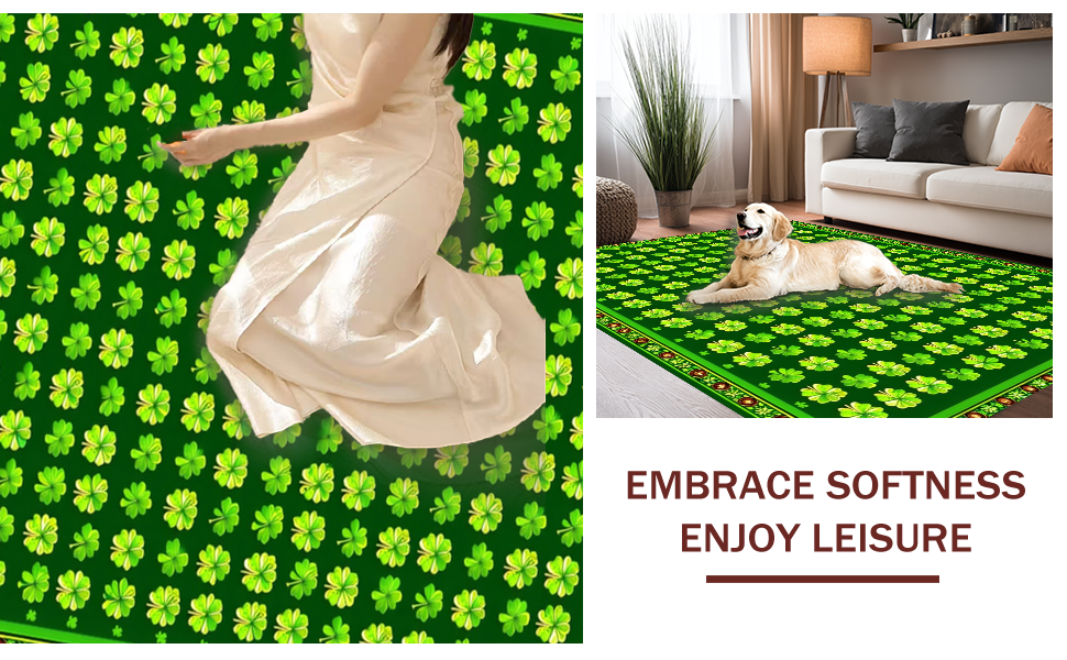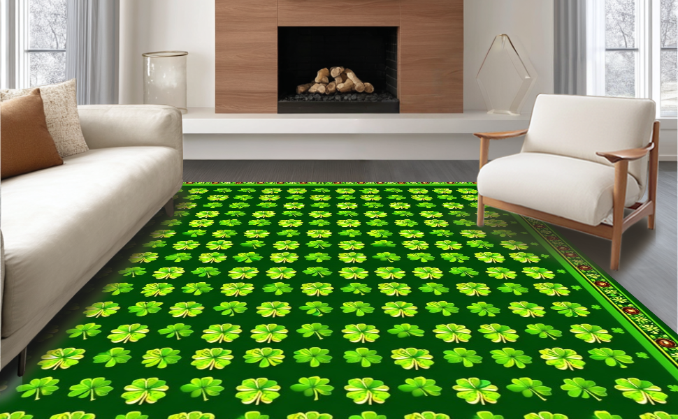 Ultra Soft Area Rug, Non Slip, Stain Resistant, Washable Area Rugs for Living Room, Bedroom, Cozy Earthy Shamrock Pattern(Green) Overview:
