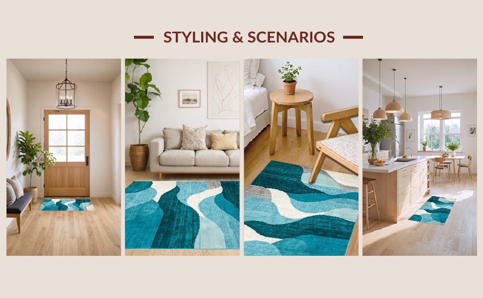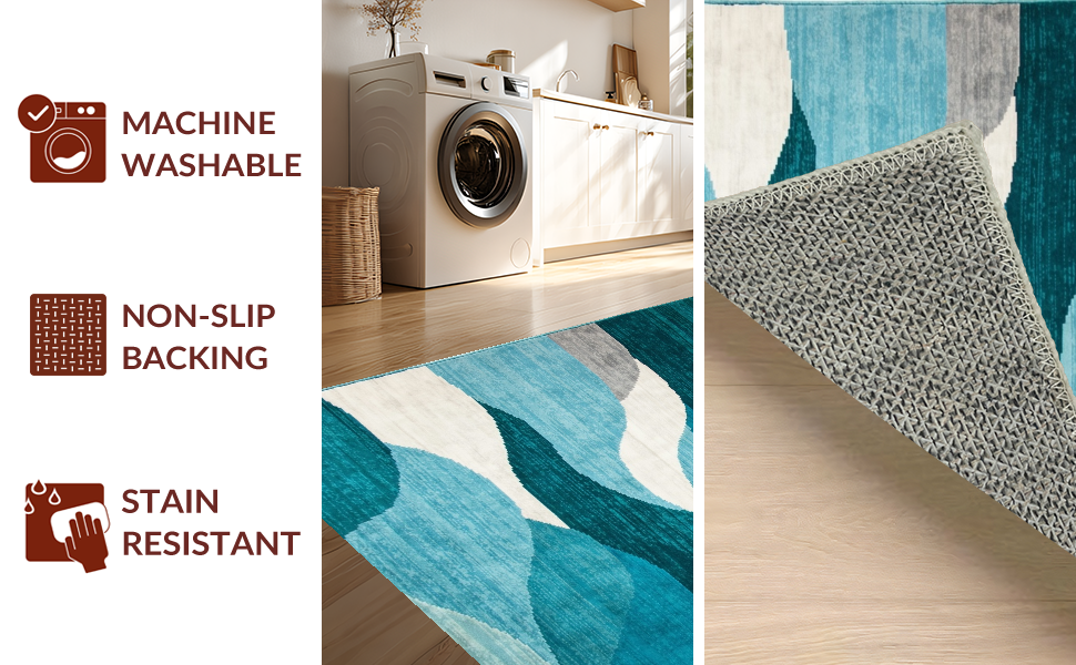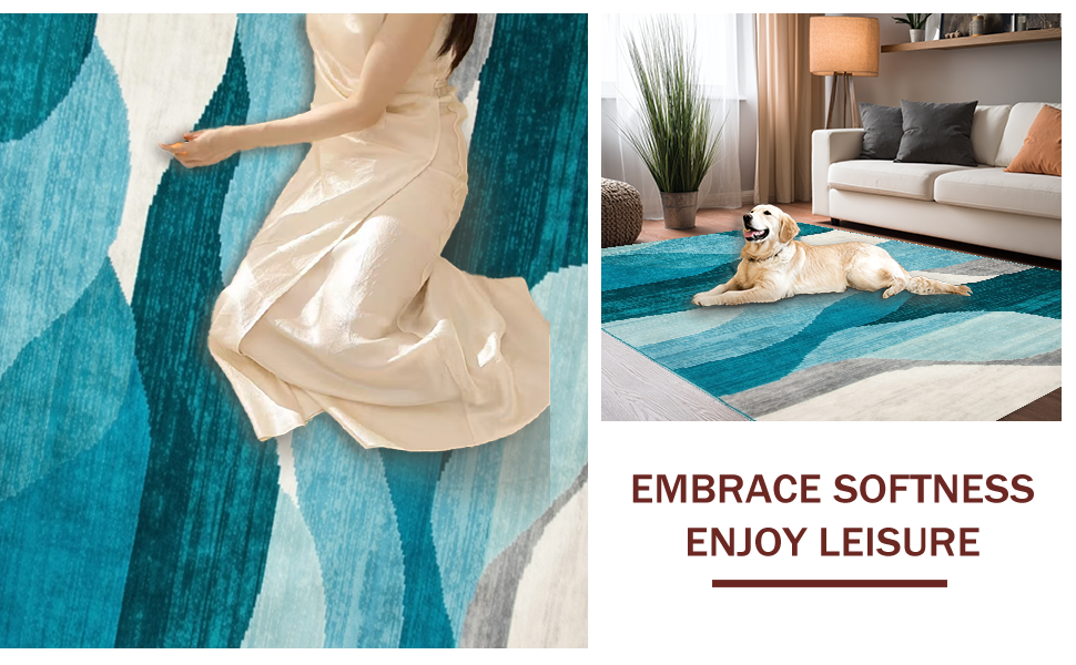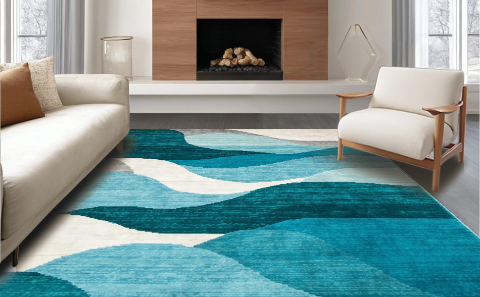 Ultra Soft Area Rug, Non Slip, Stain Resistant, Washable Area Rugs for Living Room, Bedroom, Cozy Earthy Textured Elements(Blue) Overview:
