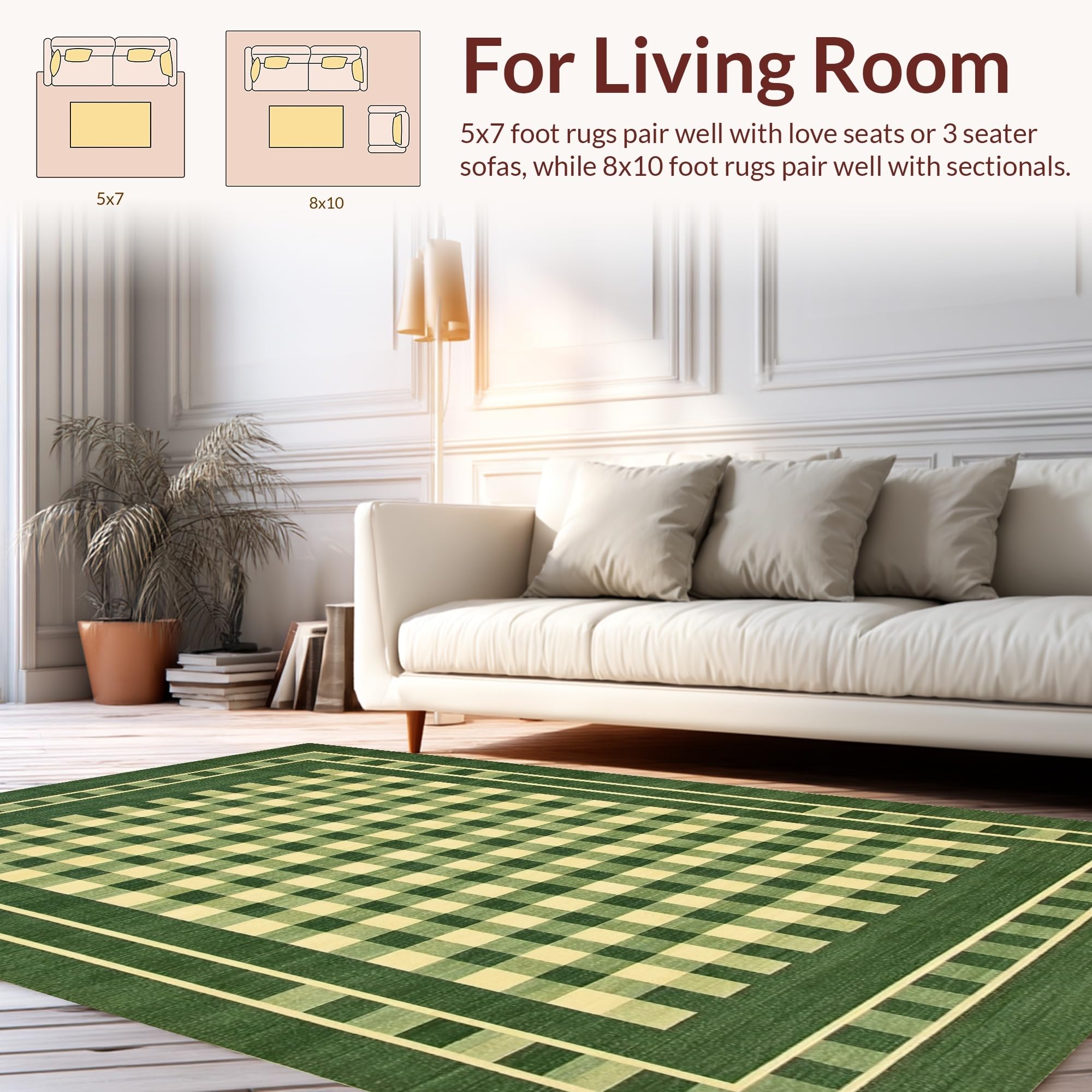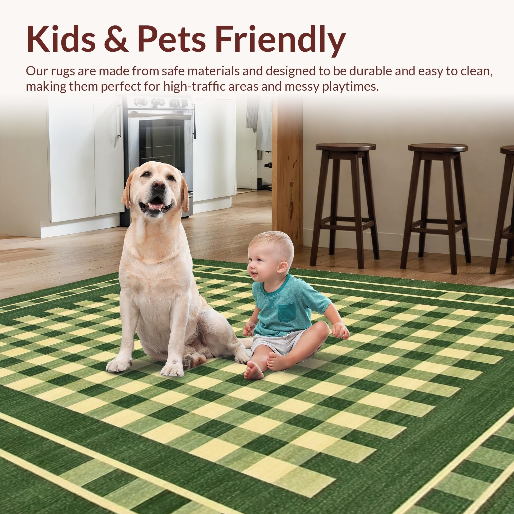 Ultra Soft Area Rug, Non Slip, Stain Resistant, Washable Area Rugs for Living Room, Bedroom, Cozy Earthy Toned Shaggy Design(Green) Overview: