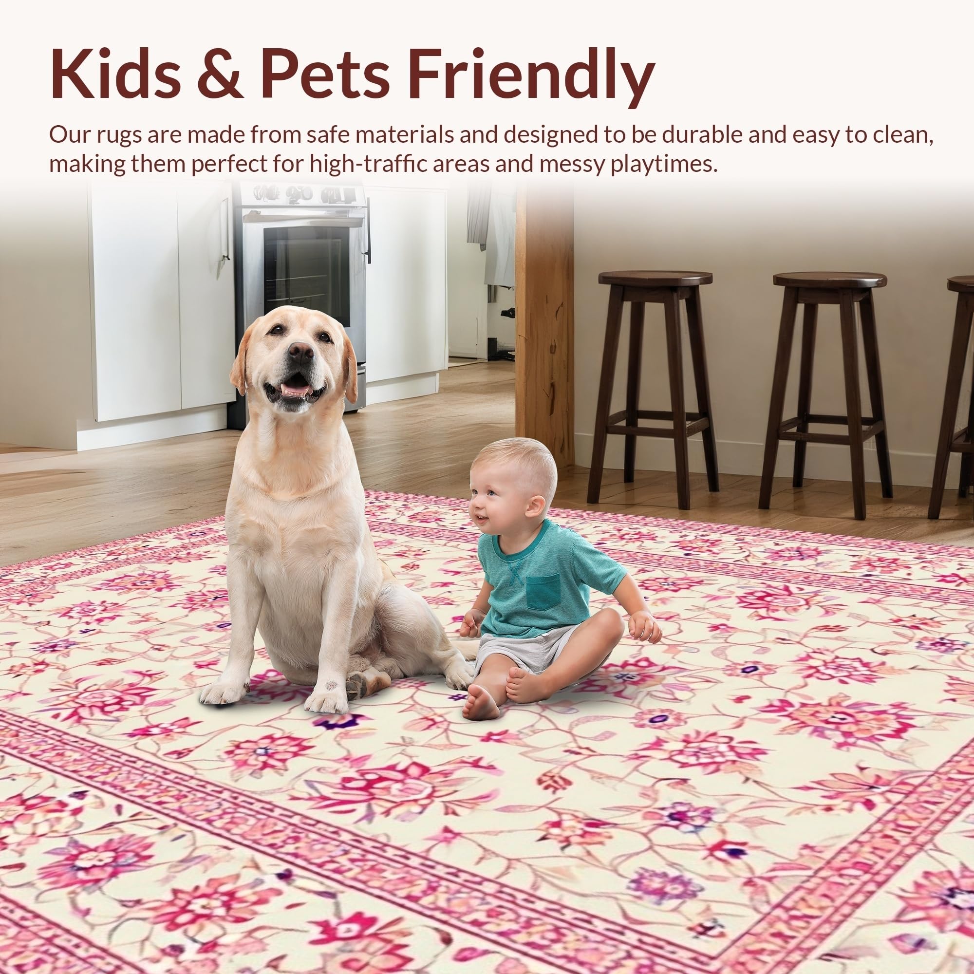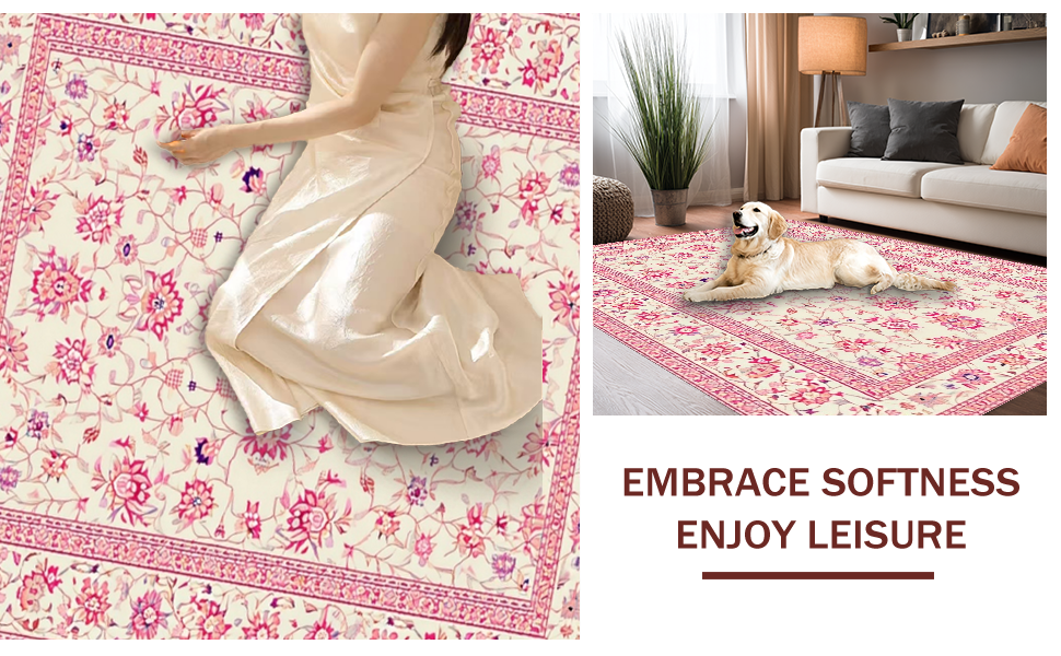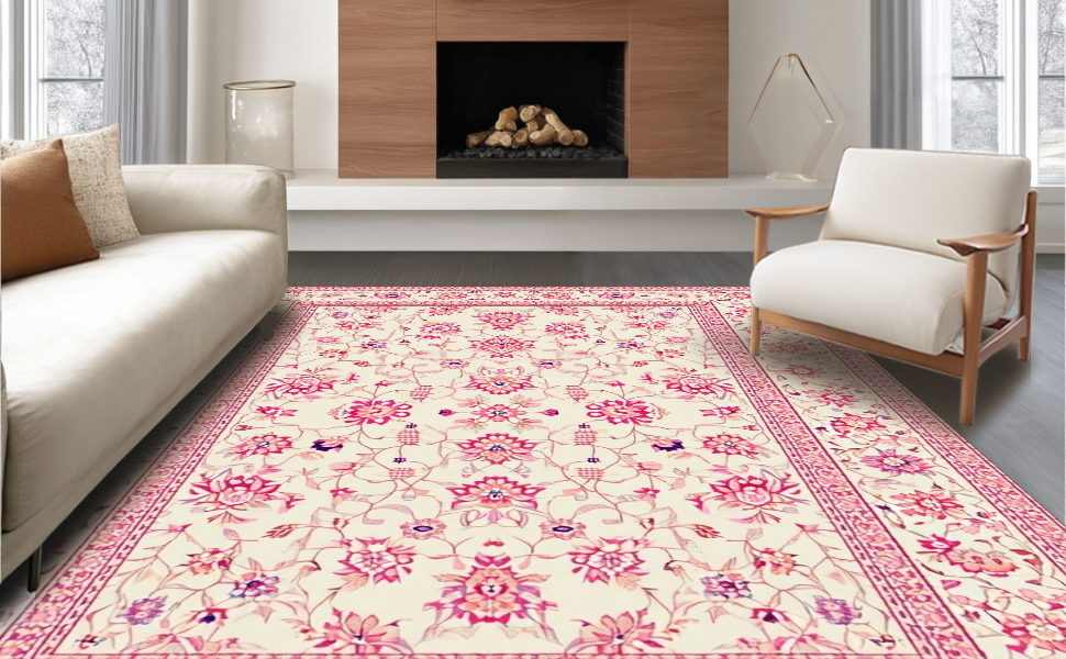 Ultra Soft Area Rug, Non Slip, Stain Resistant, Washable Area Rugs for Living Room, Bedroom, Cozy Earthy Tones Design Element(Ivory) Overview: