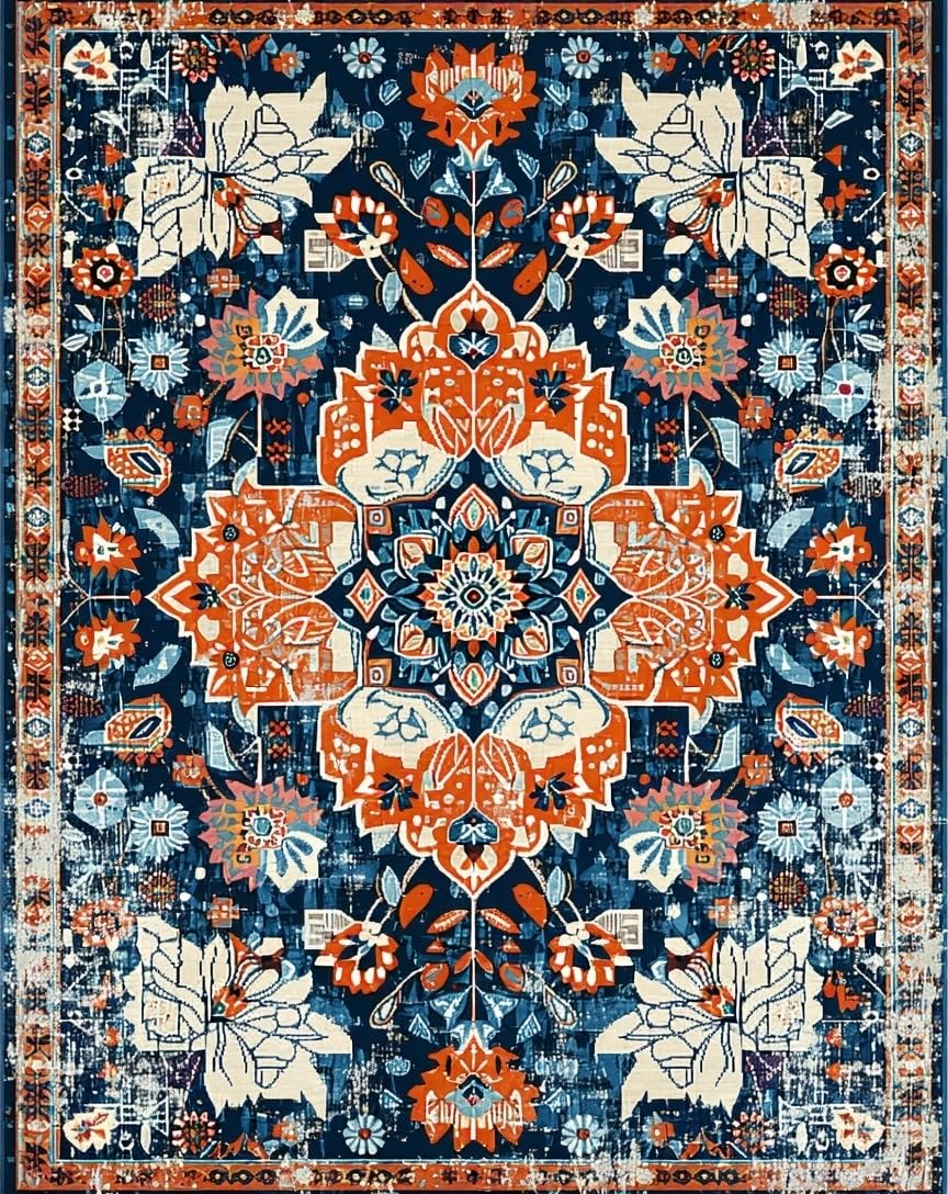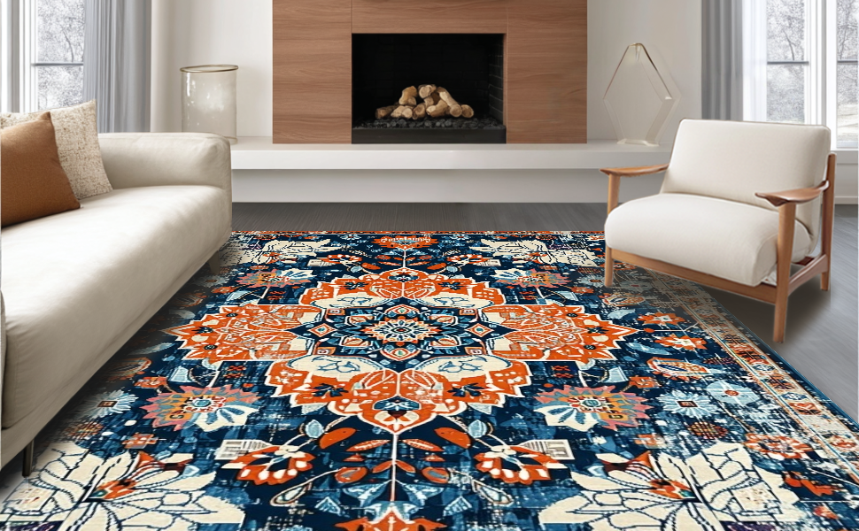 Ultra Soft Area Rug, Non Slip, Stain Resistant, Washable Area Rugs for Living Room, Bedroom, Cozy Earthy Tones Diamond Layout(Blue) Overview: