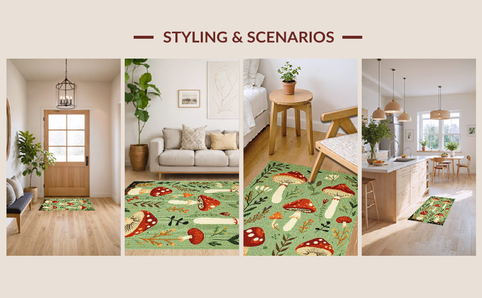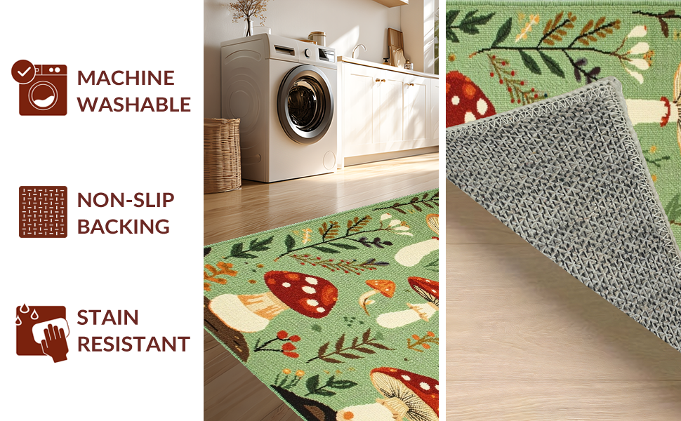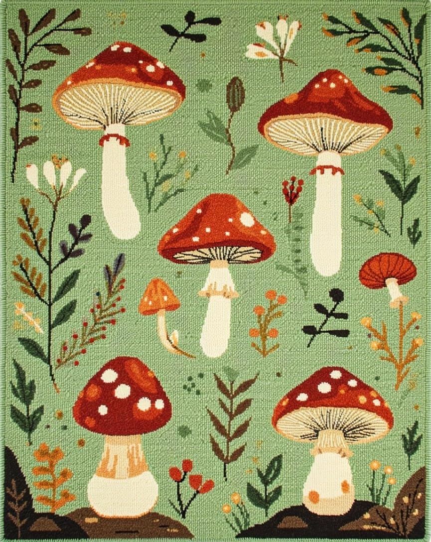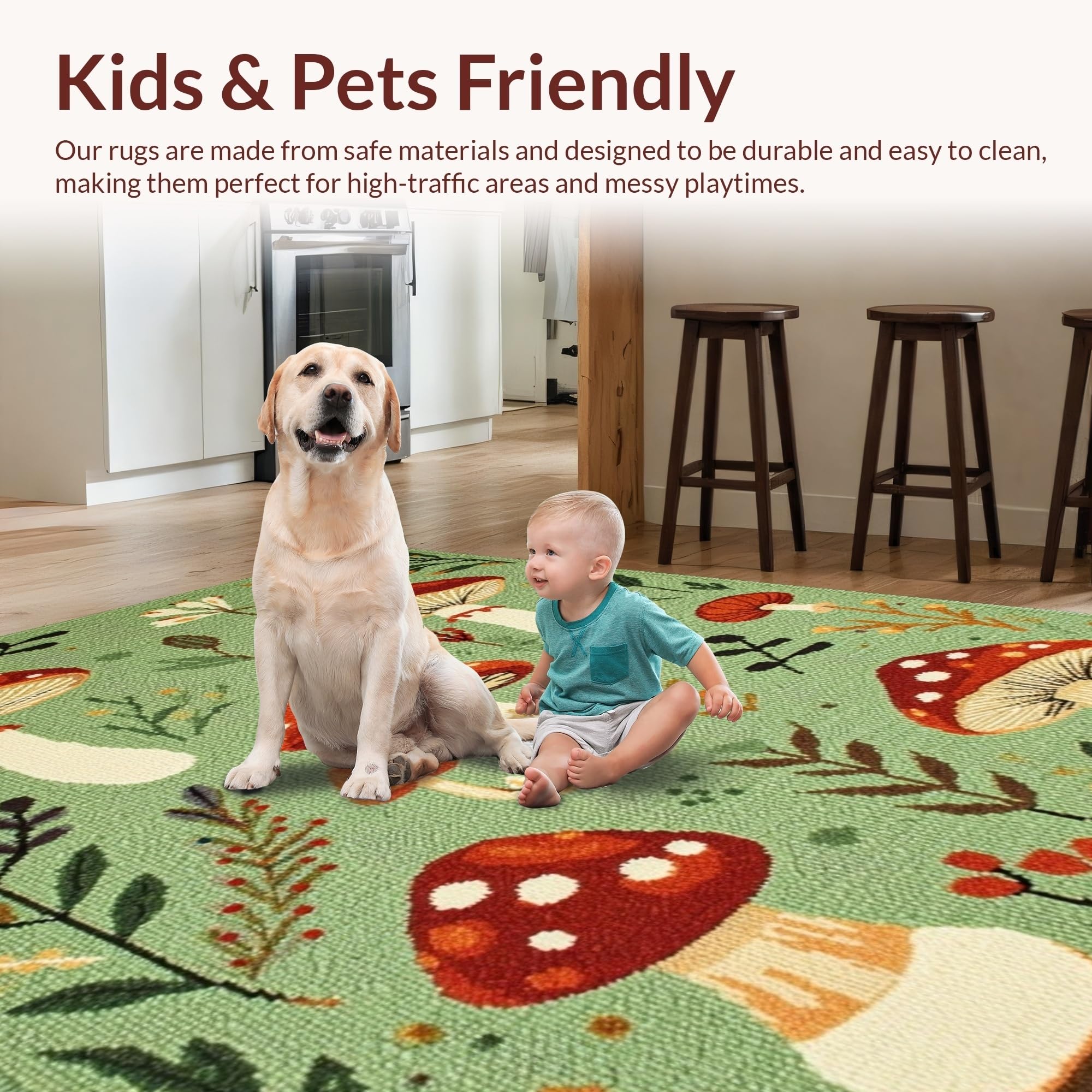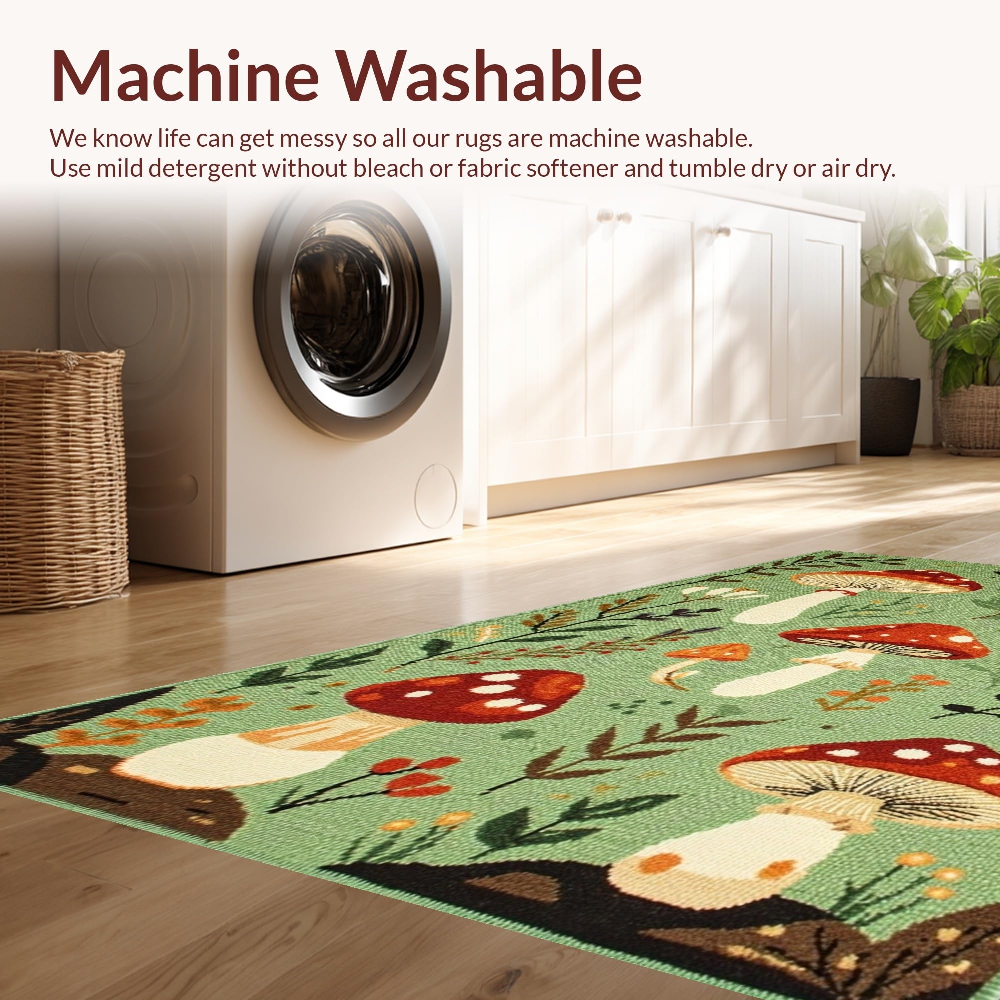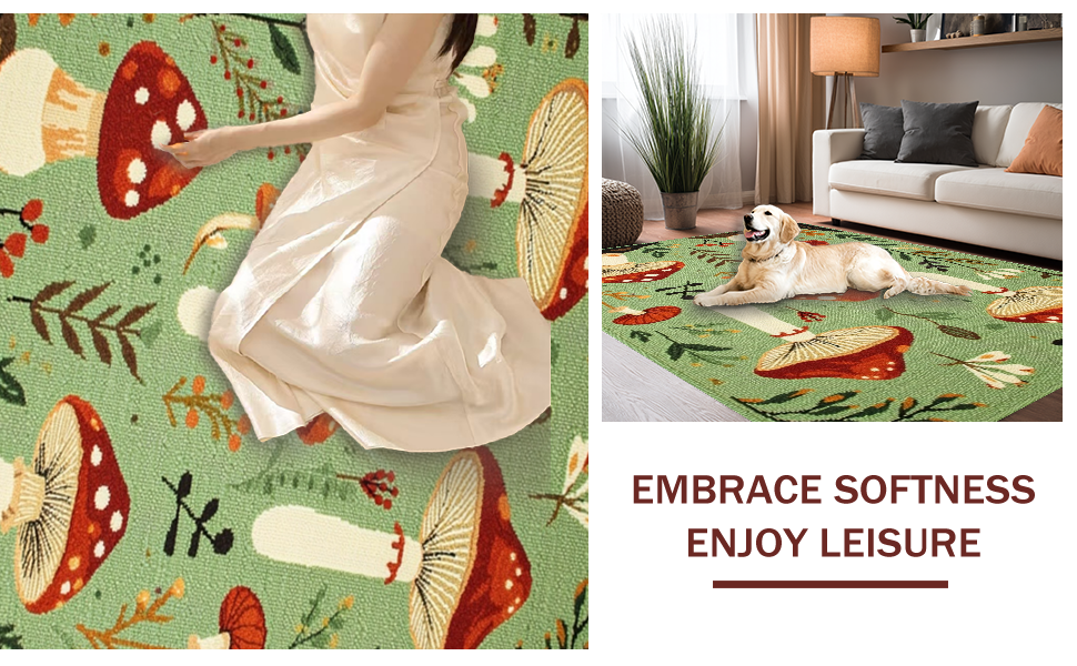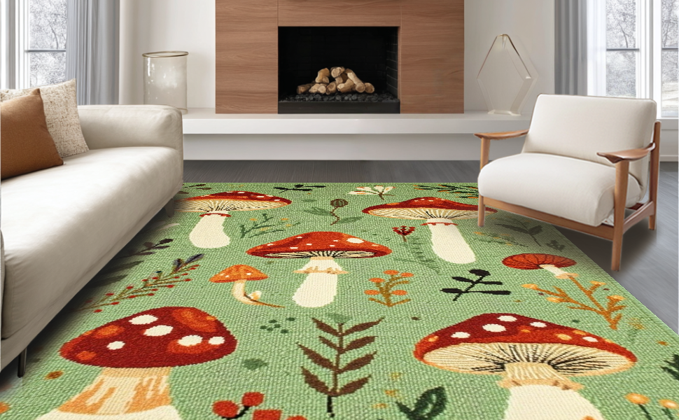 Ultra Soft Area Rug, Non Slip, Stain Resistant, Washable Area Rugs for Living Room, Bedroom, Cozy Earthy Tones Mushroom Design(Green) Overview: