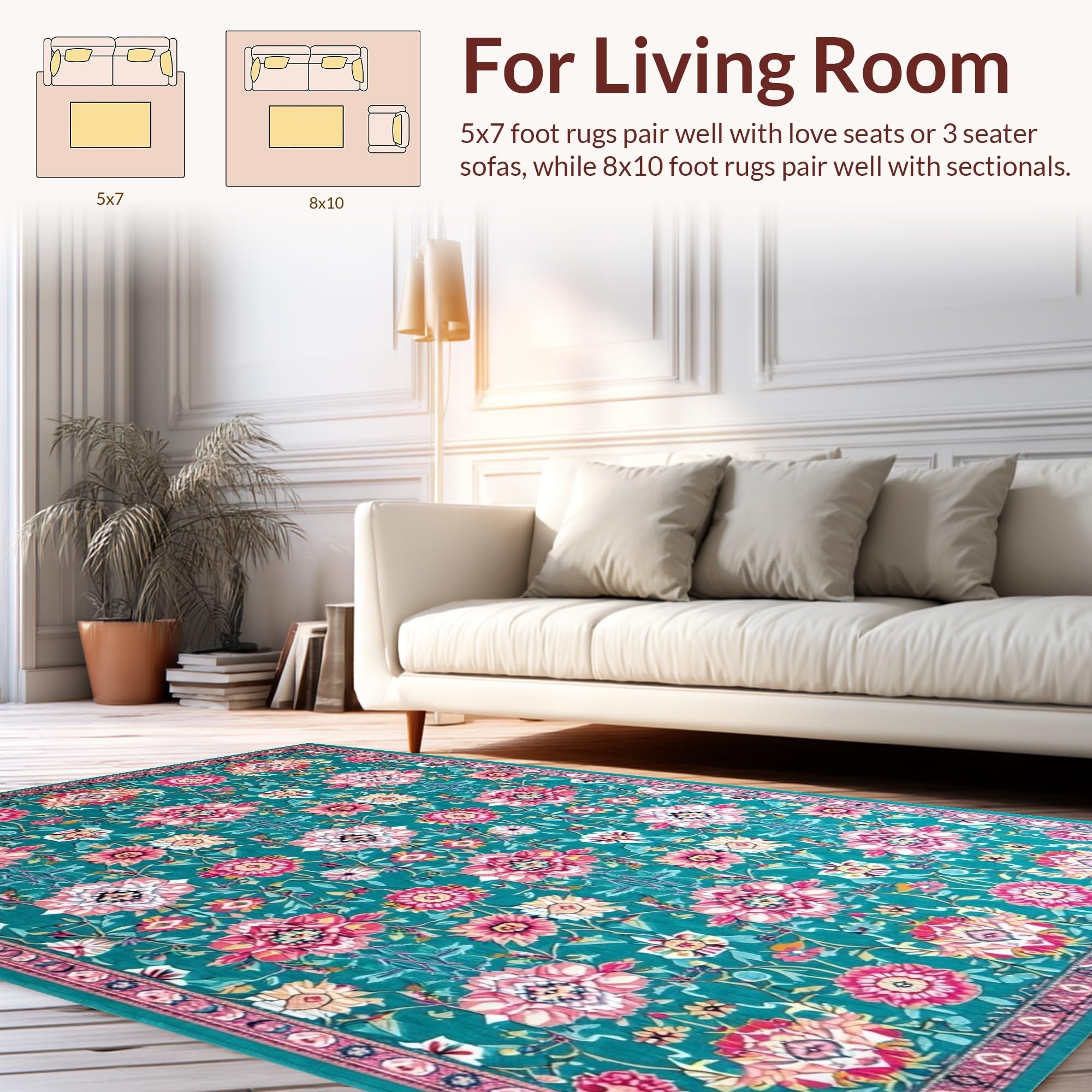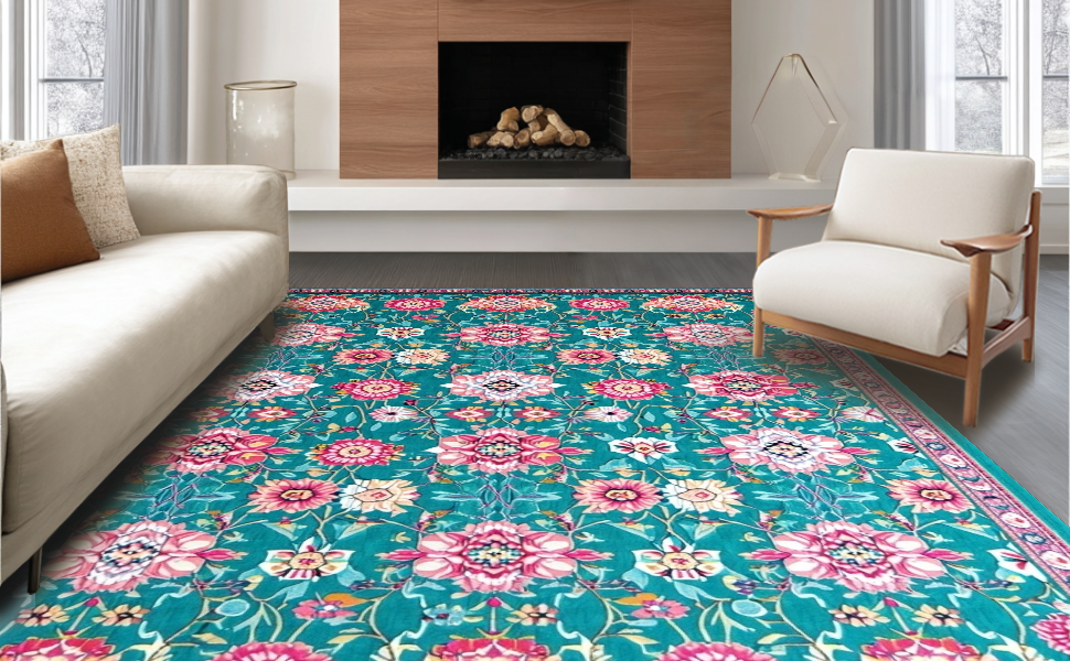 Ultra Soft Area Rug, Non Slip, Stain Resistant, Washable Area Rugs for Living Room, Bedroom, Cozy Earthy Trellis Aesthetic(Blue) Overview: