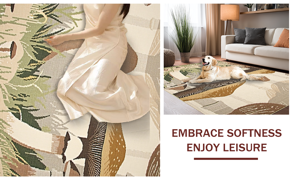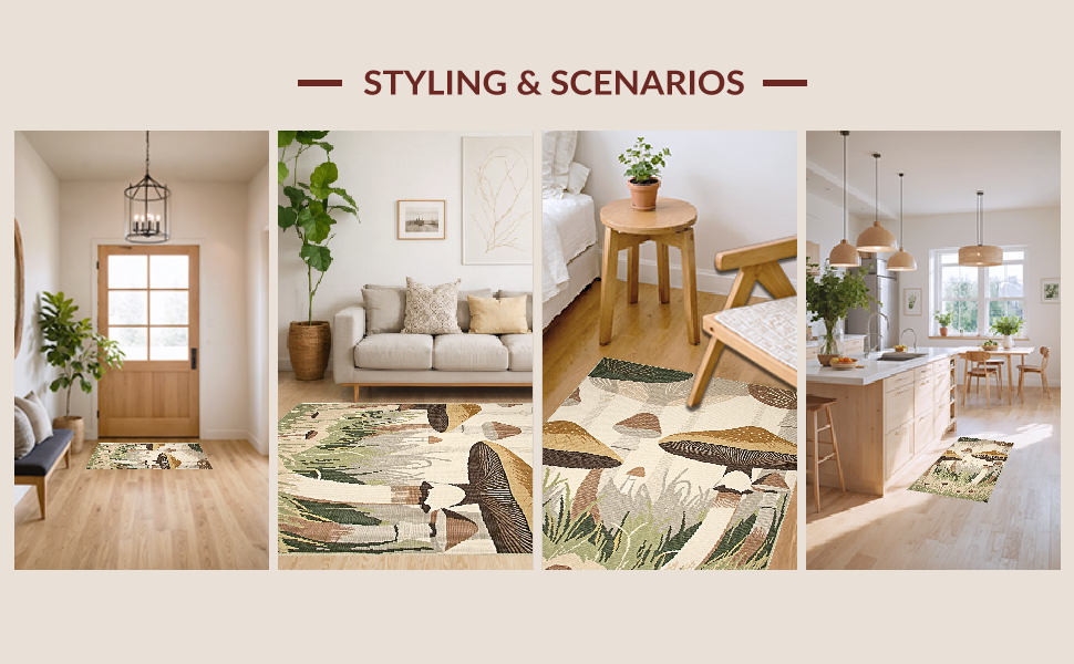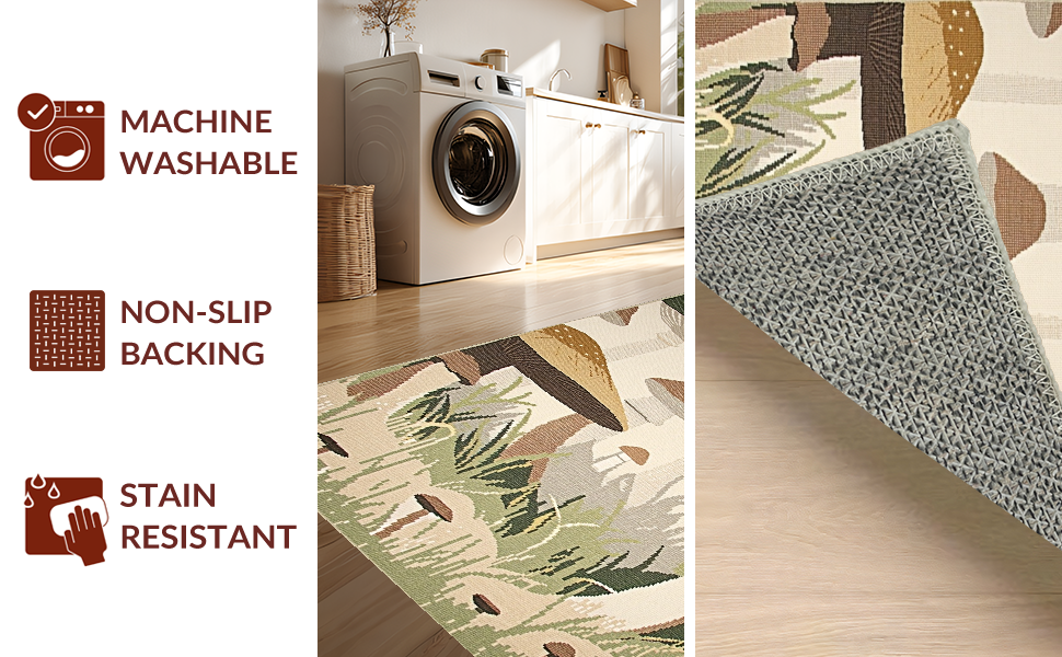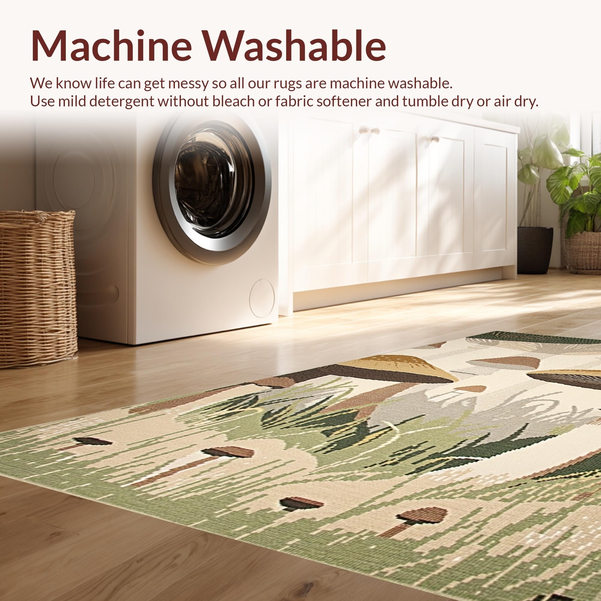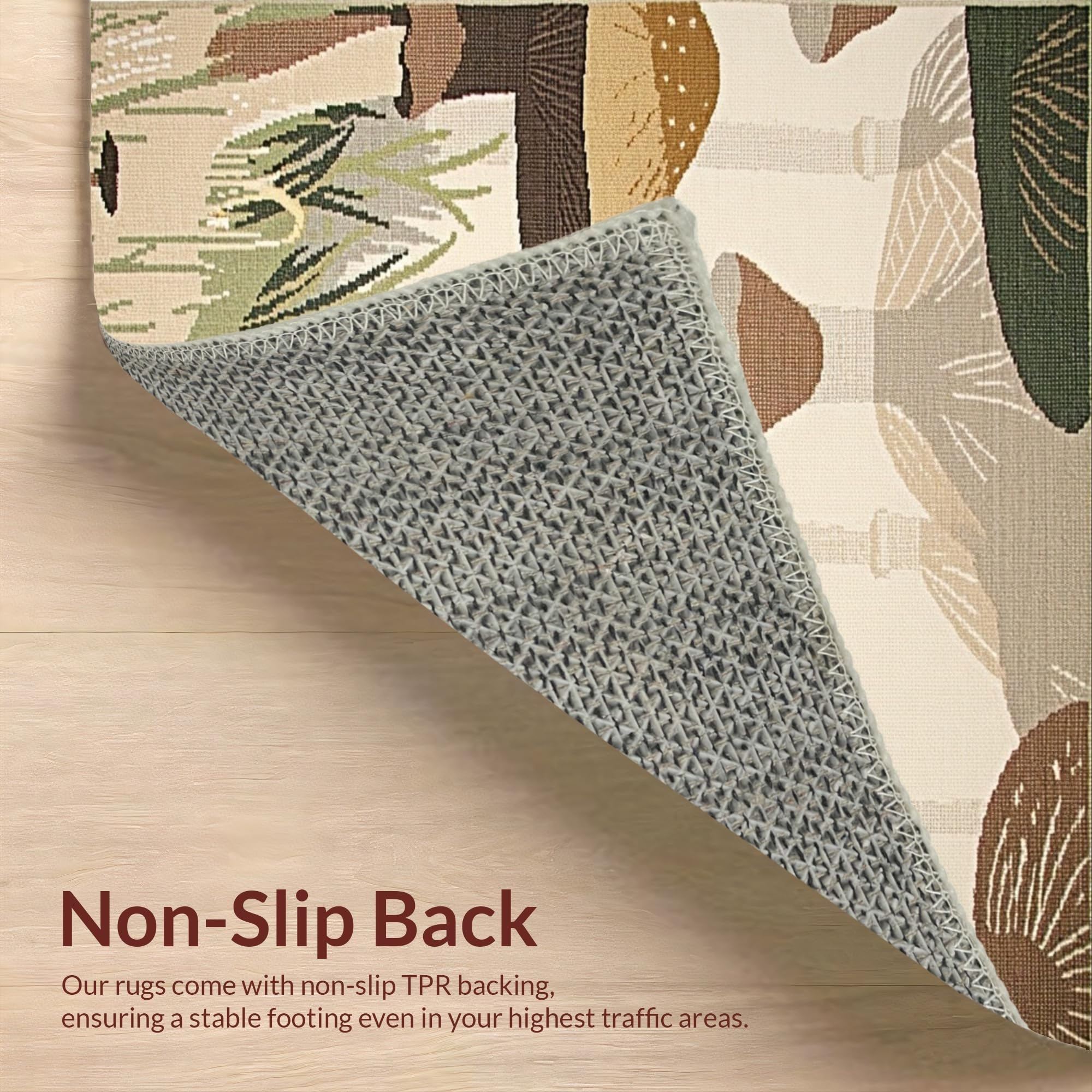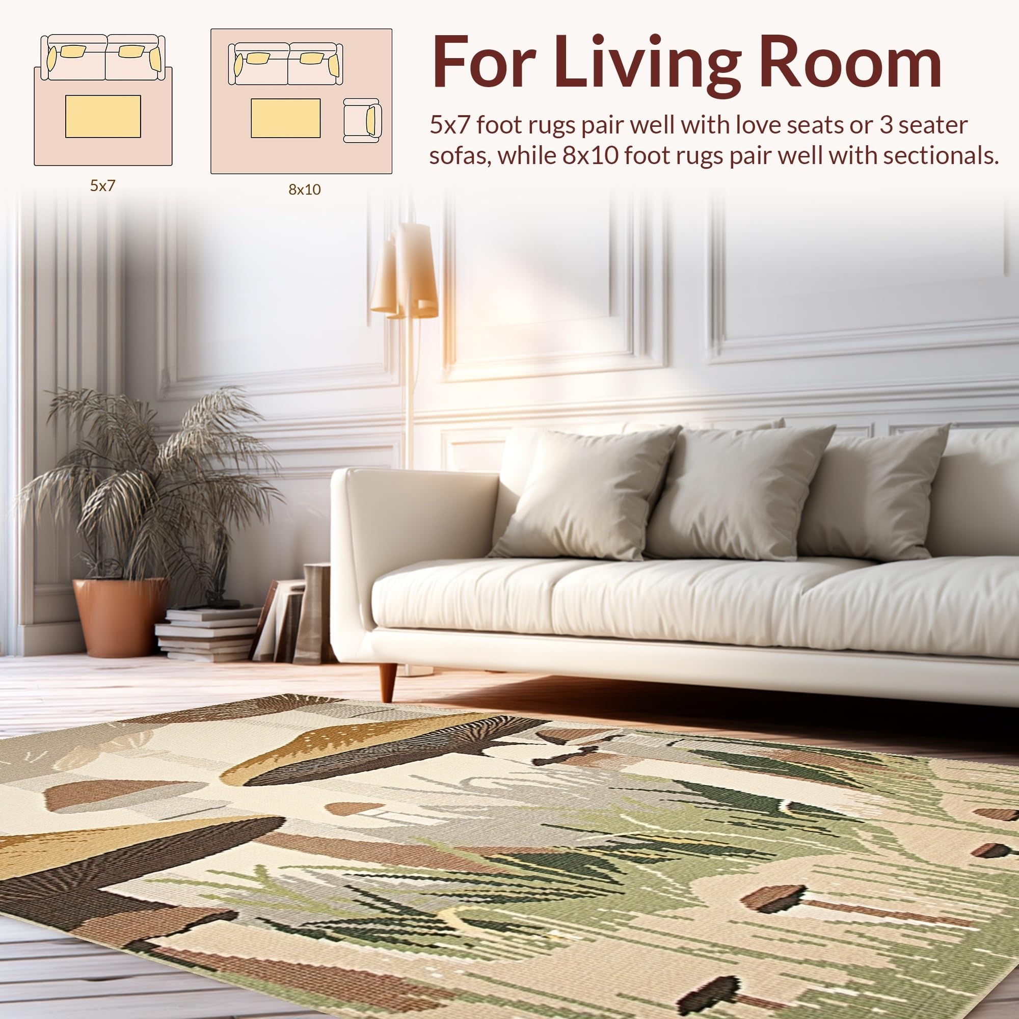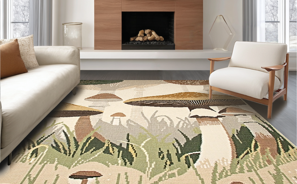 Ultra Soft Area Rug, Non Slip, Stain Resistant, Washable Area Rugs for Living Room, Bedroom, Cozy Farmhouse-Inspired Mushroom Motif(Beige) Overview: