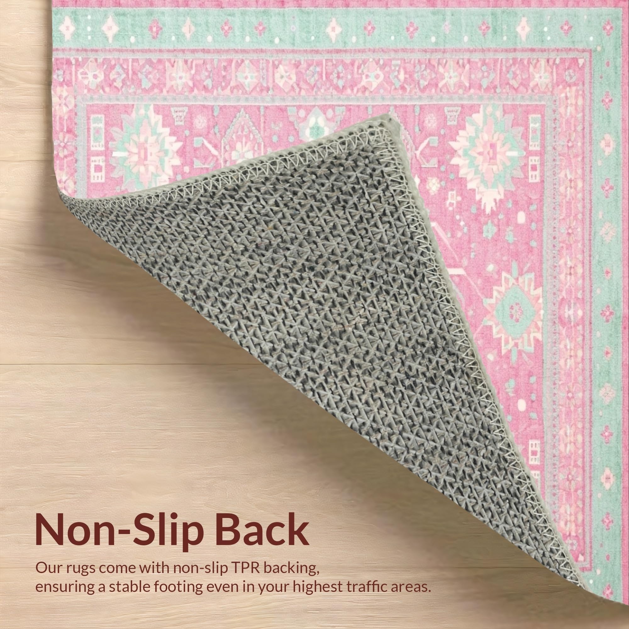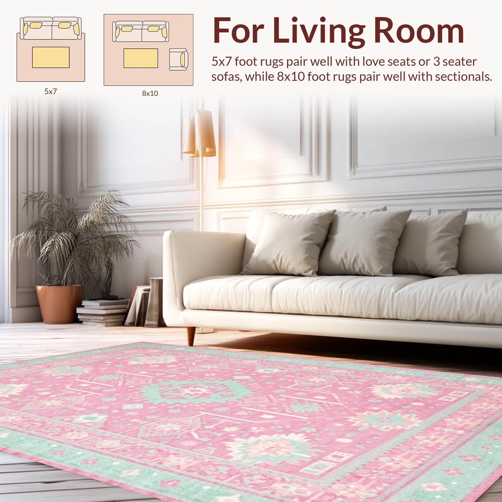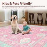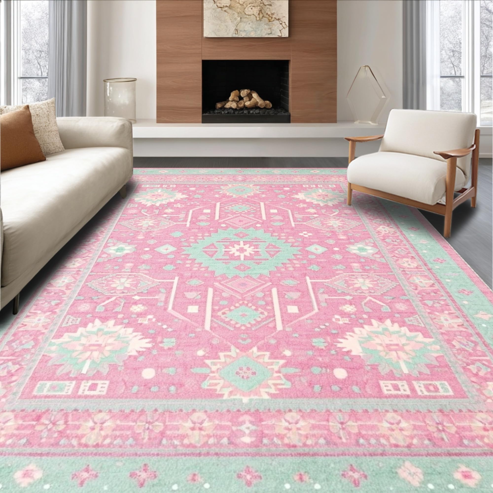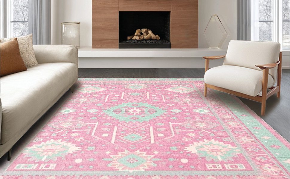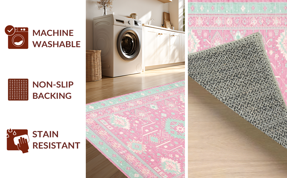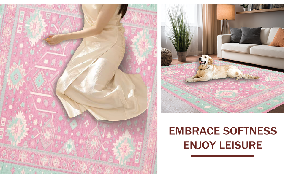 Ultra Soft Area Rug, Non Slip, Stain Resistant, Washable Area Rugs for Living Room, Bedroom, Cozy Farmhouse Inspired Print(Pink) Overview: