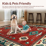 Ultra Soft Area Rug, Non Slip, Stain Resistant, Washable Area Rugs for Living Room, Bedroom, Cozy Farmhouse Patterned Design(Red) Overview: