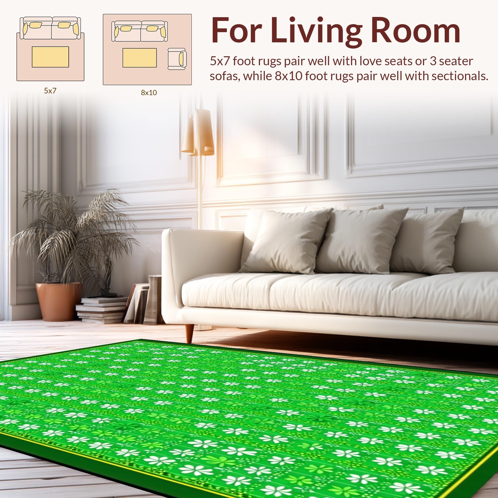 Ultra Soft Area Rug, Non Slip, Stain Resistant, Washable Area Rugs for Living Room, Bedroom, Cozy Festive Floral Arrangement(Green) Overview: