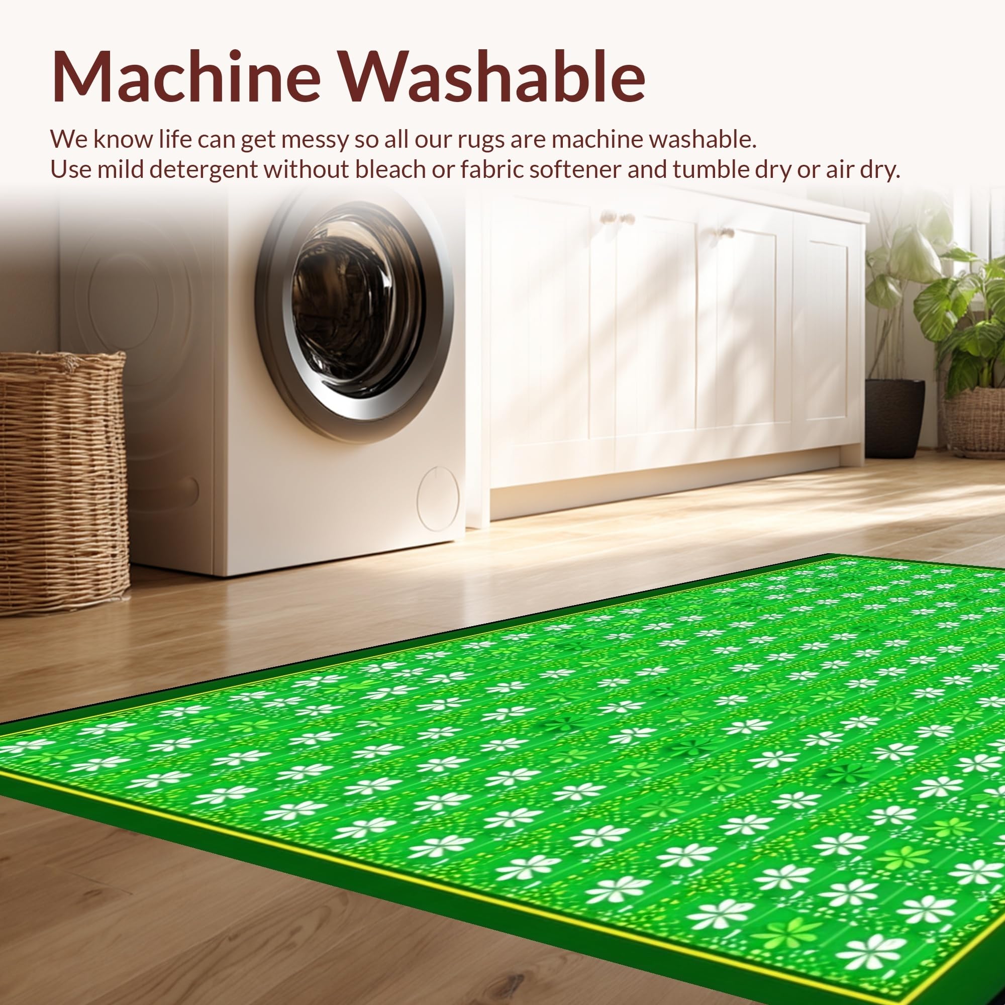 - Machine Washable: Our rugs can be easily thrown in the wash machine.